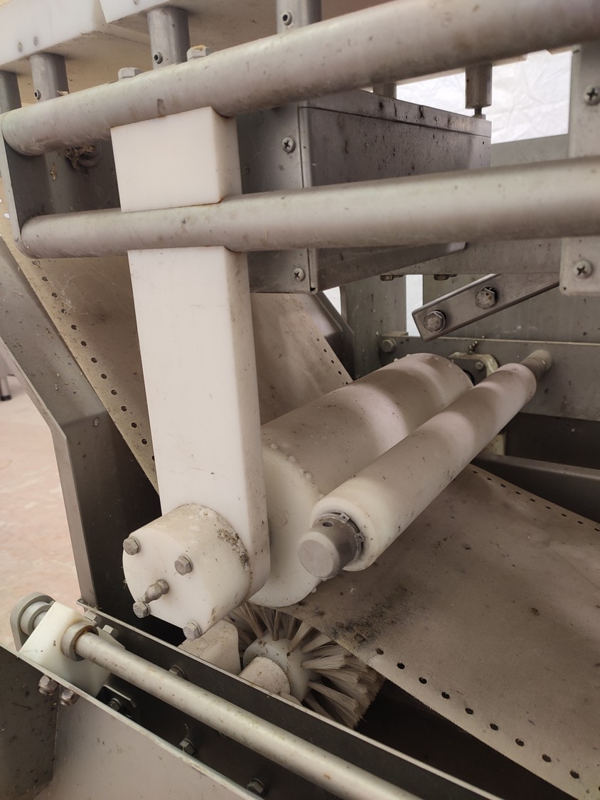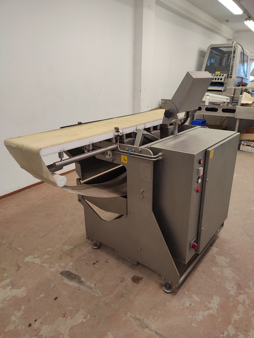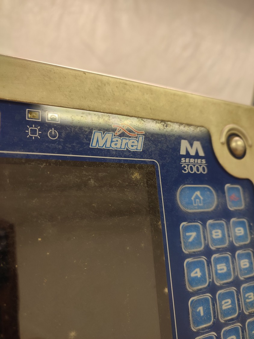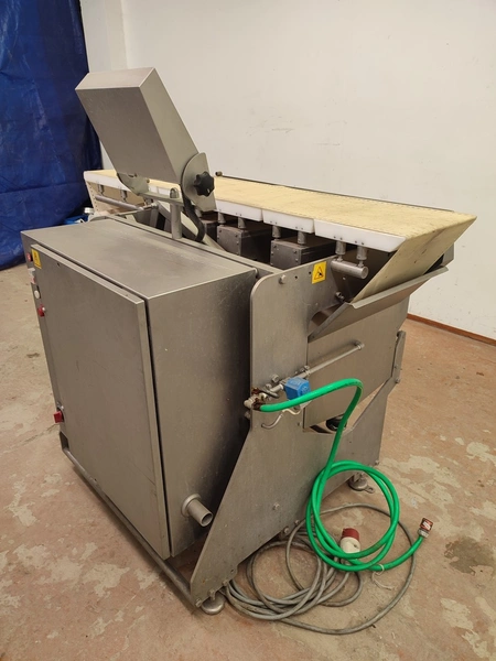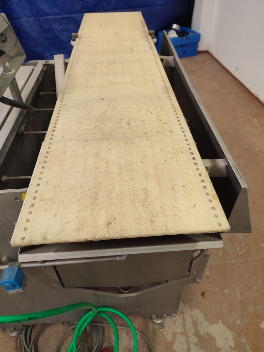 Marel checkweigher, type: INW-300, serial number: 1003, year of construction: 2000, 400 V, 3 Ph, 1.0 kW, plastic belt, belt width: 340 mm, total dimensions: 1650 mm x 1000 mm x 1450 mm.
