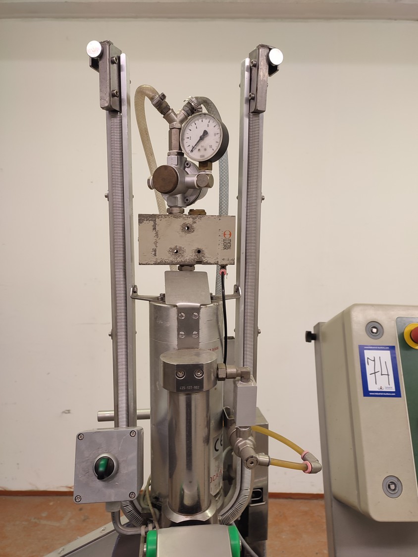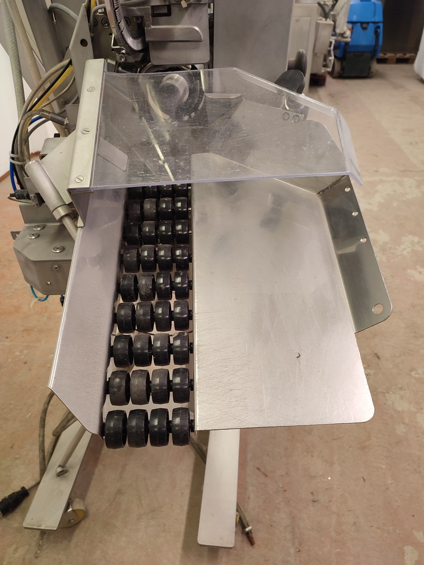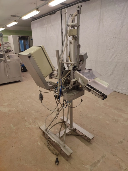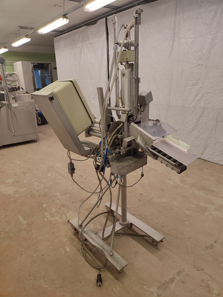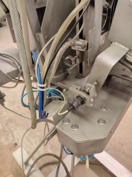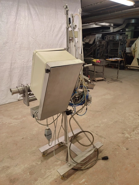 Tipper Tie technopack GmbH mobile automatic double clipper, model: KDC-A 90, number: 4251.143.221, year of construction: 2001, minimum 5 bar, maximum 6 bar, dimensions: 1300 mm x 900 mm x 1860 mm.