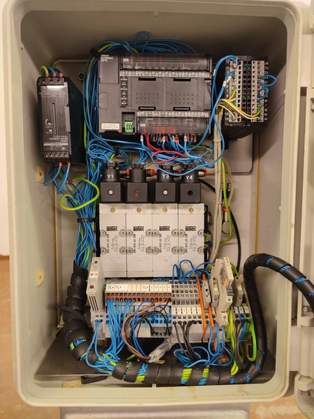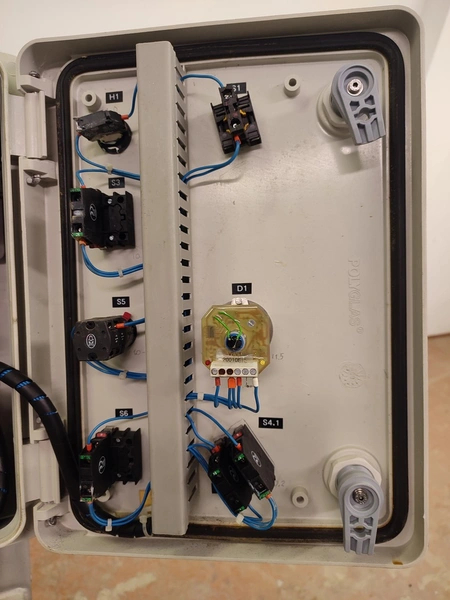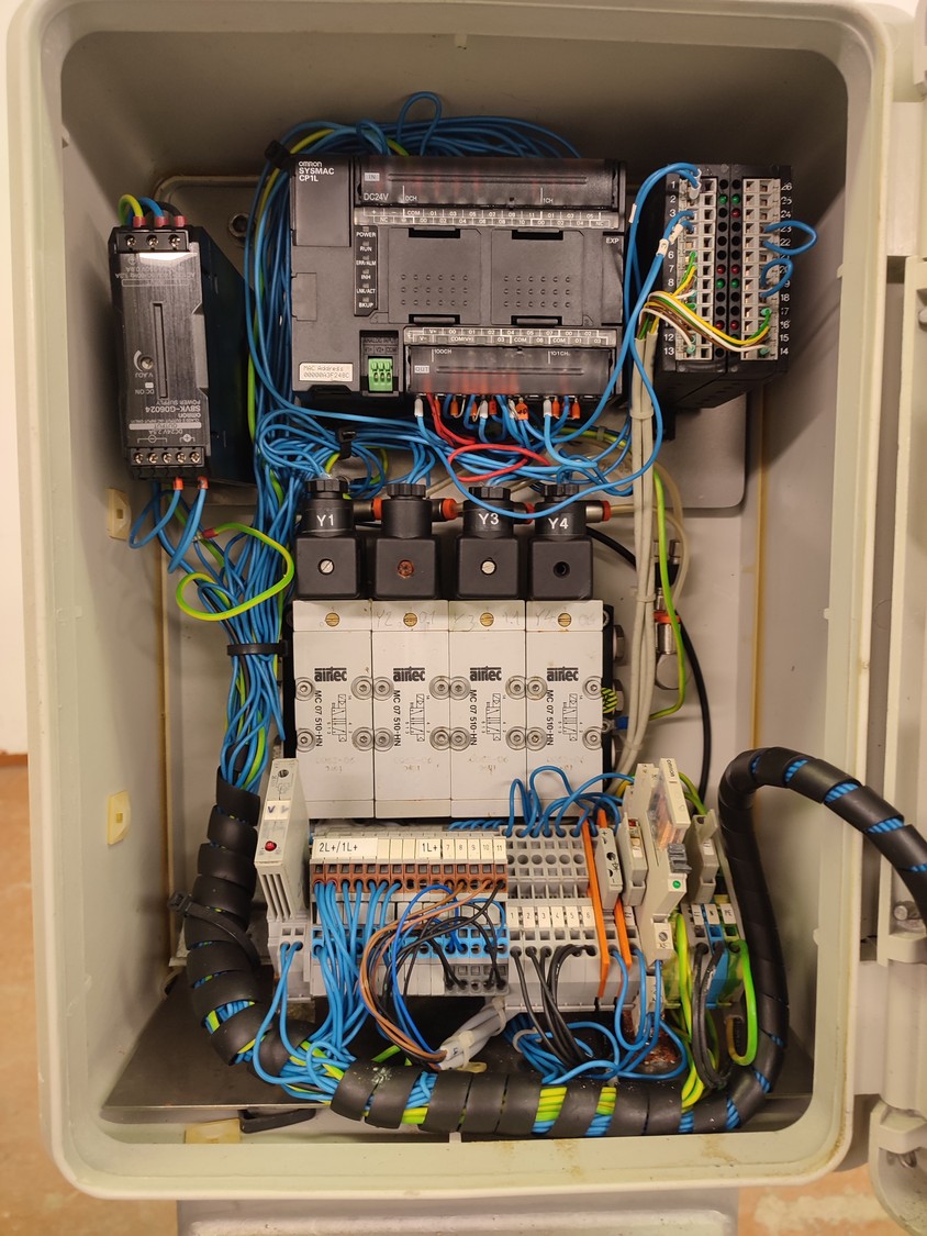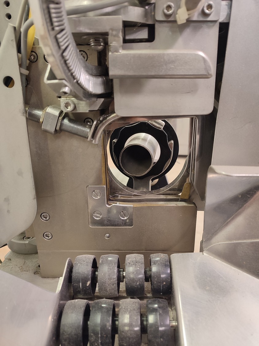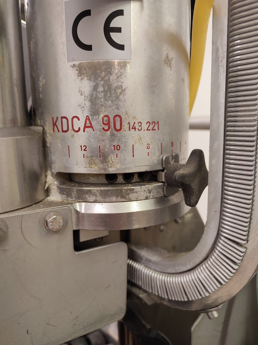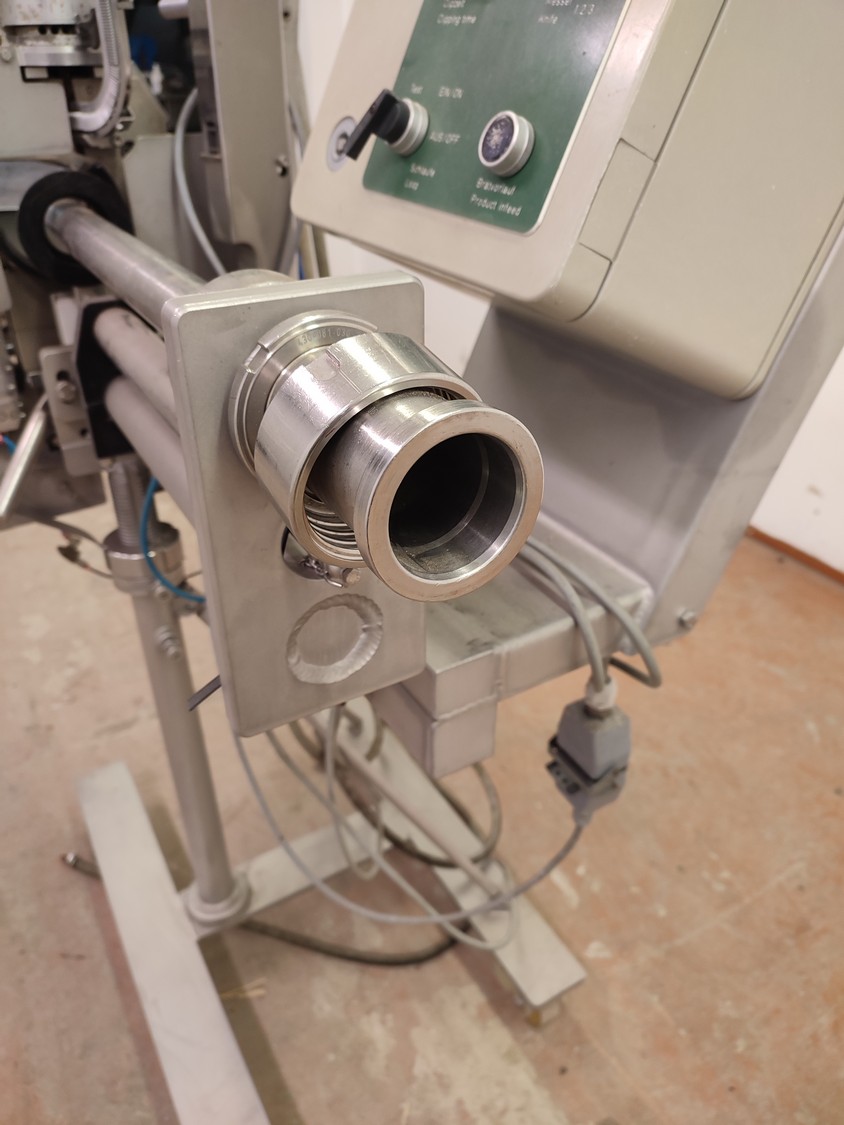 Tipper Tie technopack GmbH mobile automatic double clipper, model: KDC-A 90, number: 4251.143.221, year of construction: 2001, minimum 5 bar, maximum 6 bar, dimensions: 1300 mm x 900 mm x 1860 mm.