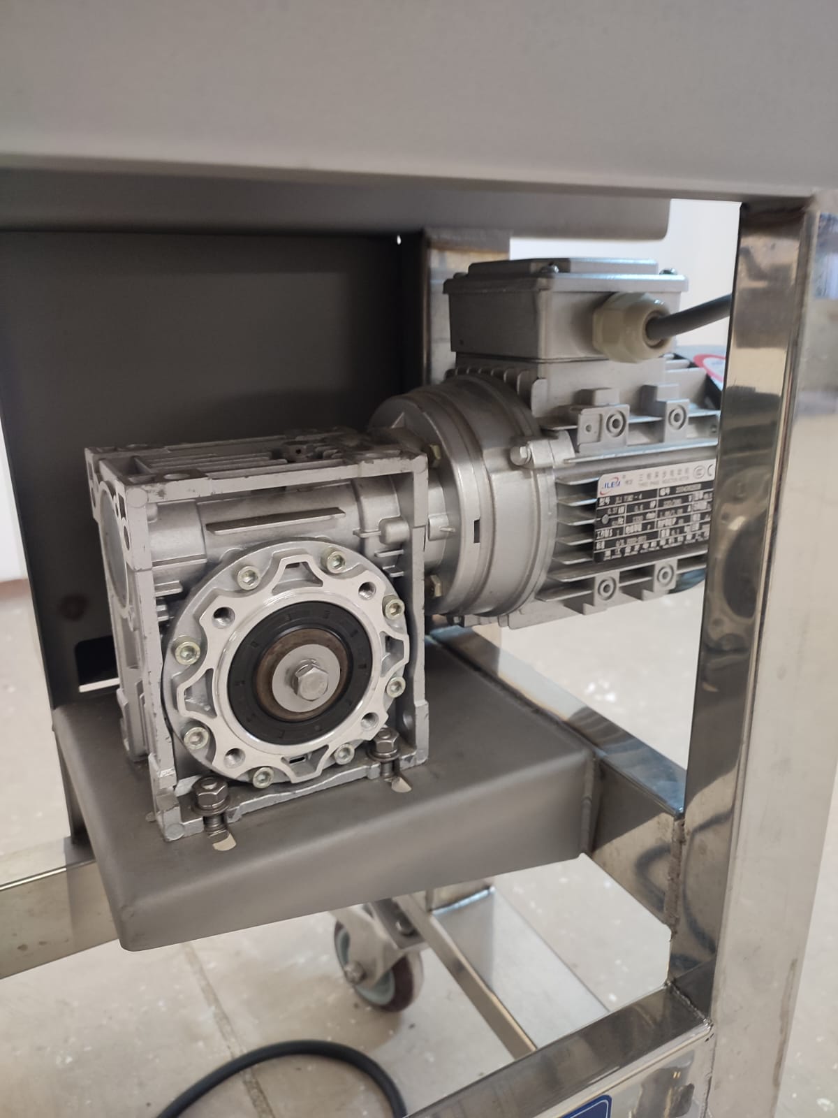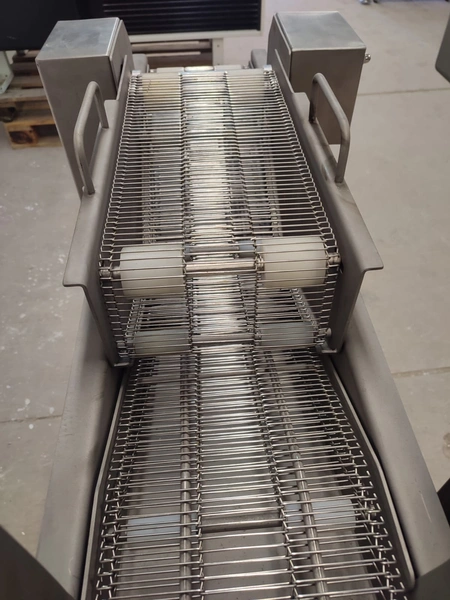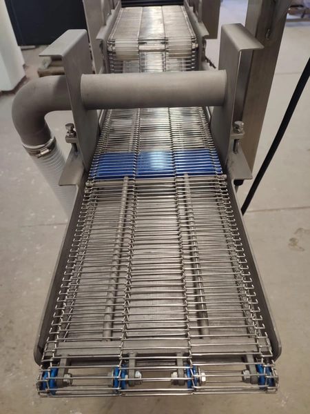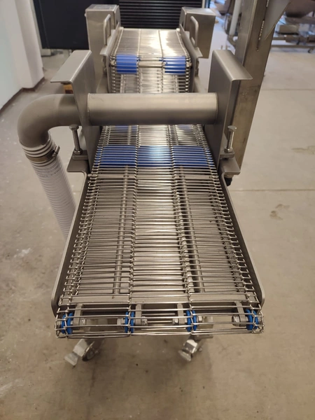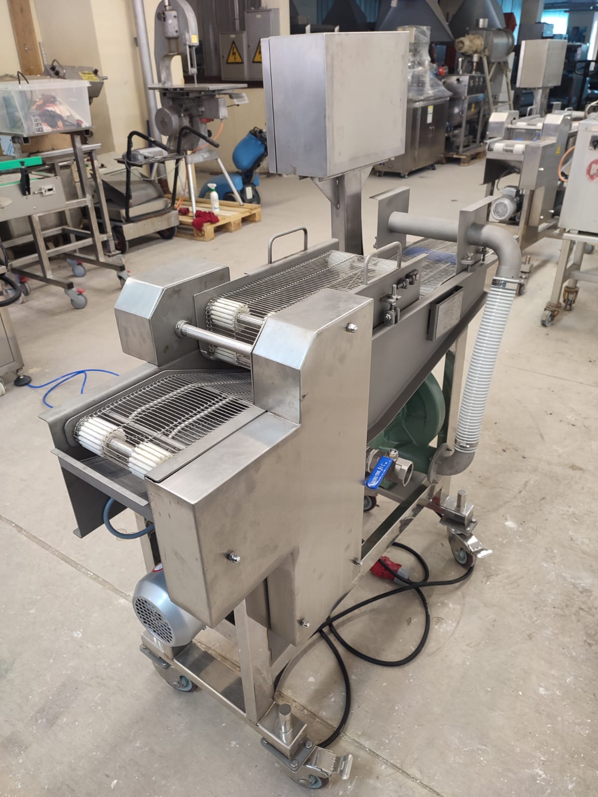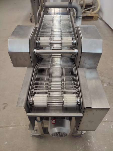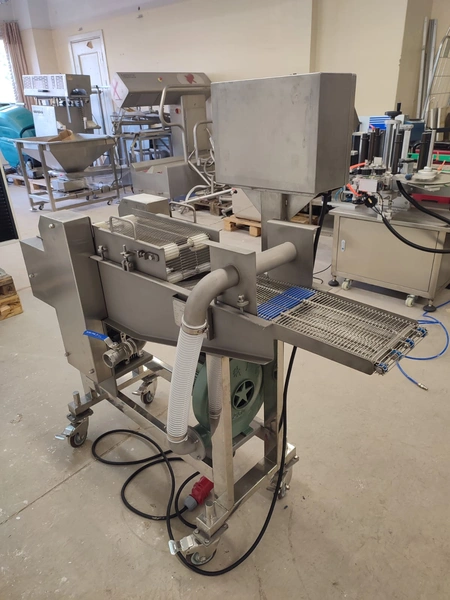 Jinan Hiwell Machinery Co., Ltd mobile battering machine, model: NJJ200-II, serial number: 0422043, year of construction: 09-2020, 380 V, 3 Ph, 50 Hz, 0.62 kW, s/s mesh belt, belt width: 200 mm, total dimensions: 1400 mm x 550 mm x1250 mm.