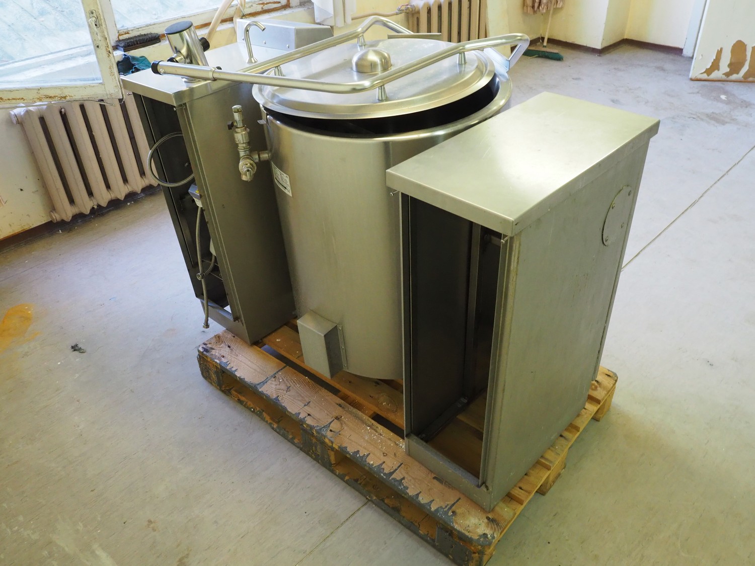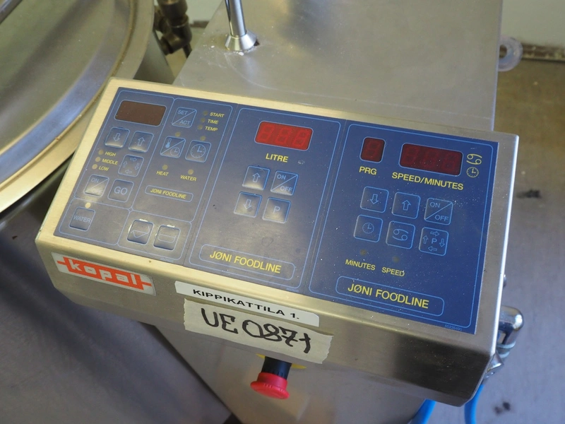 Joni Foodline AS cooking vessel with agitator, type: Multi-Mix Kettle, number: 011456-623, year of construction: 2001, 400/230 V, 3 Ph, 50/60 Hz, 29 A, 20 kW, electric heated, -5 till 125°C, volume: 120 liter, dimensions 1330 mm x 850 mm x 1030 mm. Defect.