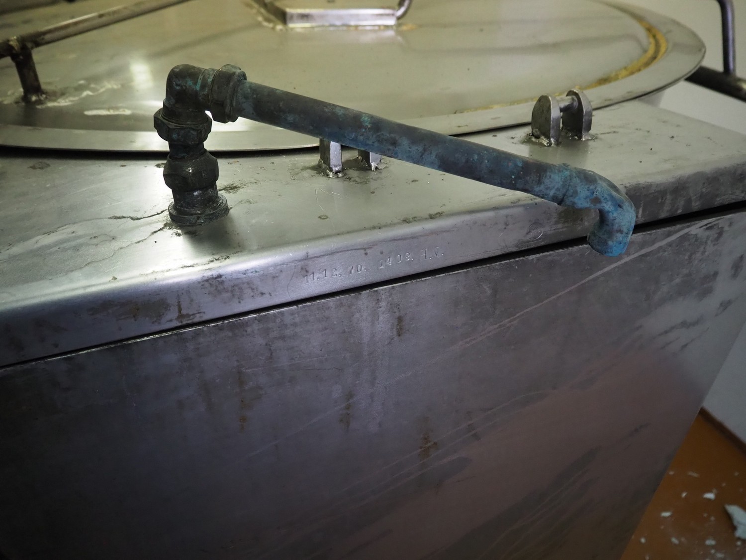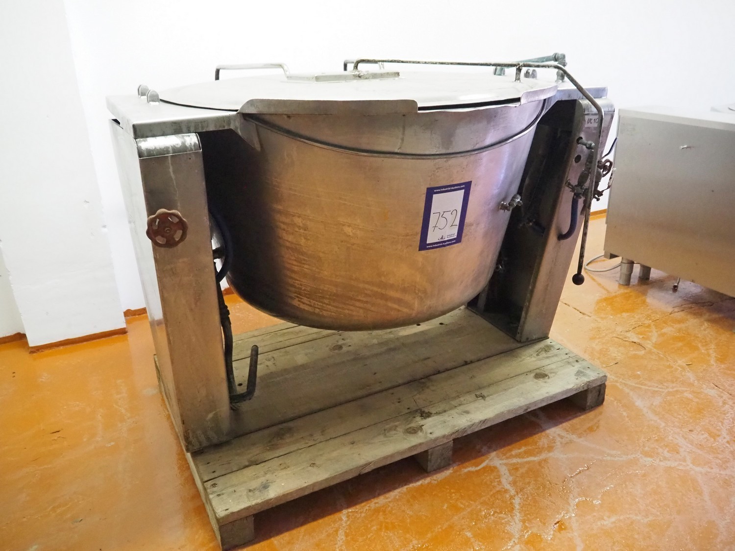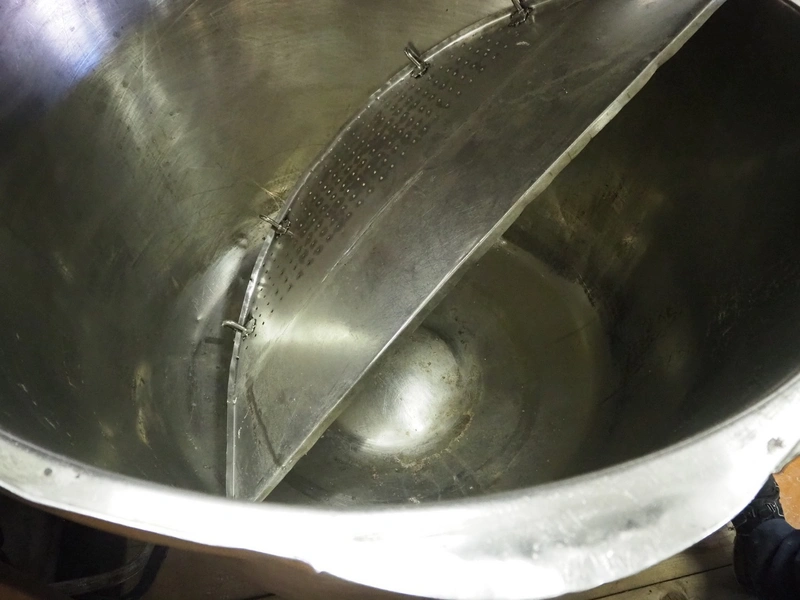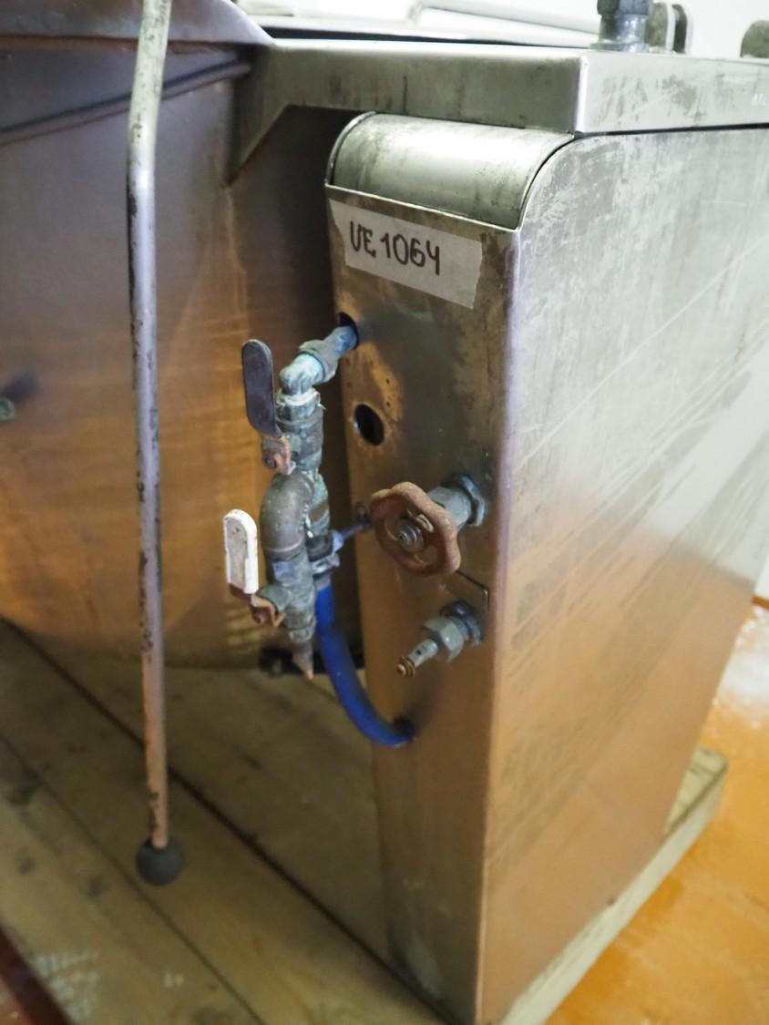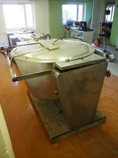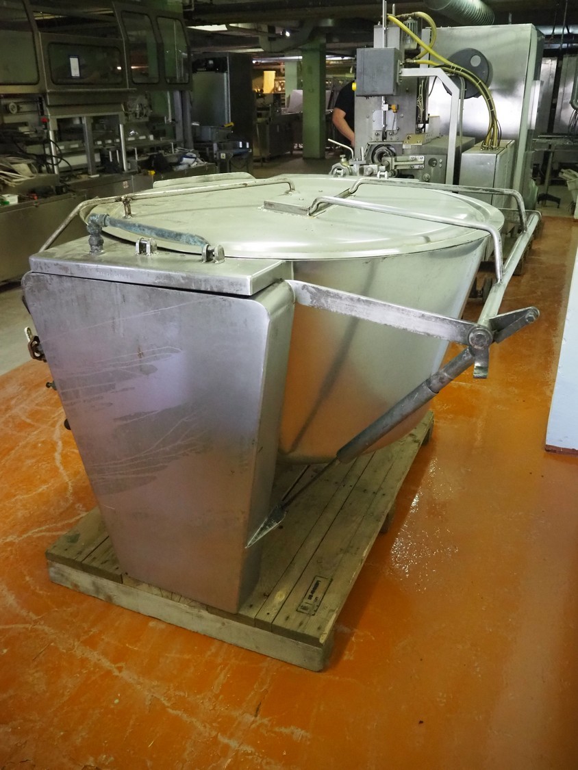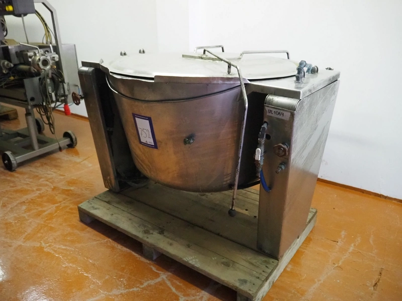 Tiltable cooking vessel, inside dimensions: ø 1170 mm x 650 mm, total dimensions: 1550 mm x 1450 mm x 1100 mm.