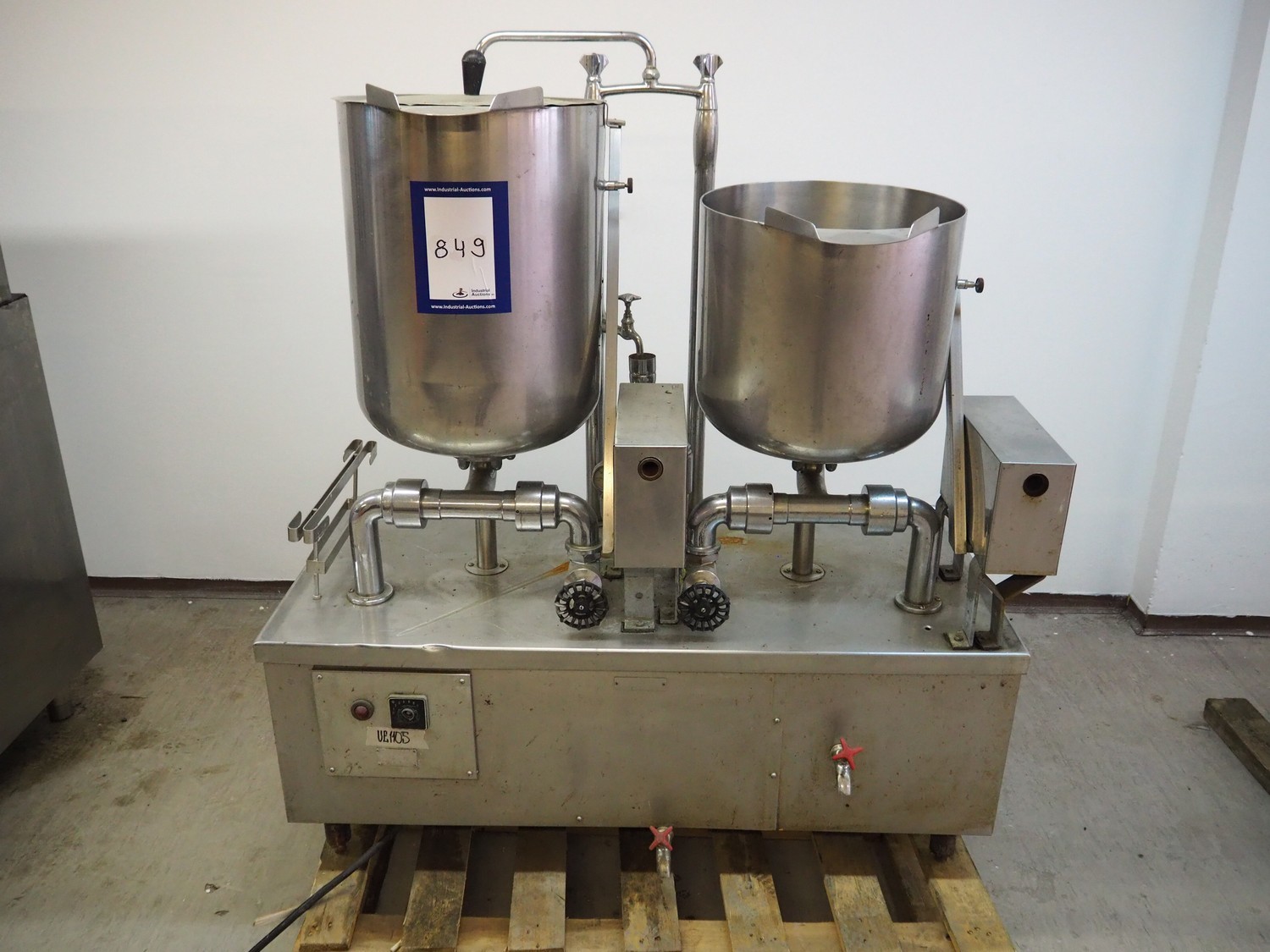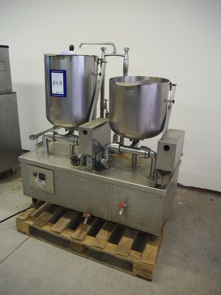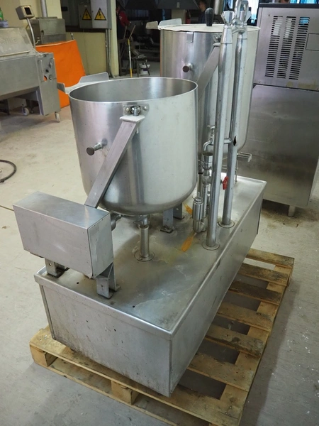 Metos double cooking vessel, type: STAND.5423/1, number: 1468/133/55, 380/22 V, 3 Ph, 18.1 A, 12 kW, inside dimensions: Ø 410 mm x 500 mm and Ø 410 mm x 360 mm, total dimensions: 1260 mm x 560 mm x 1400 mm.