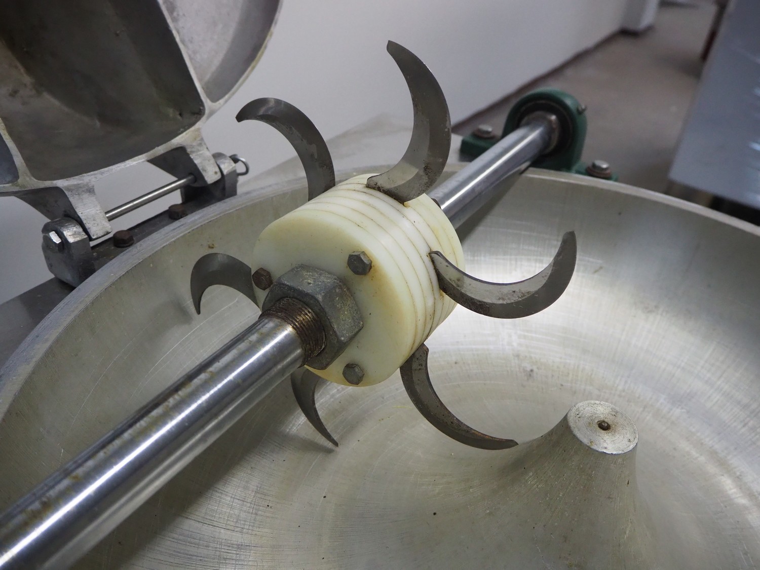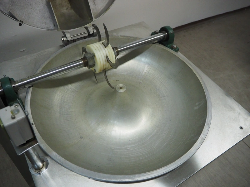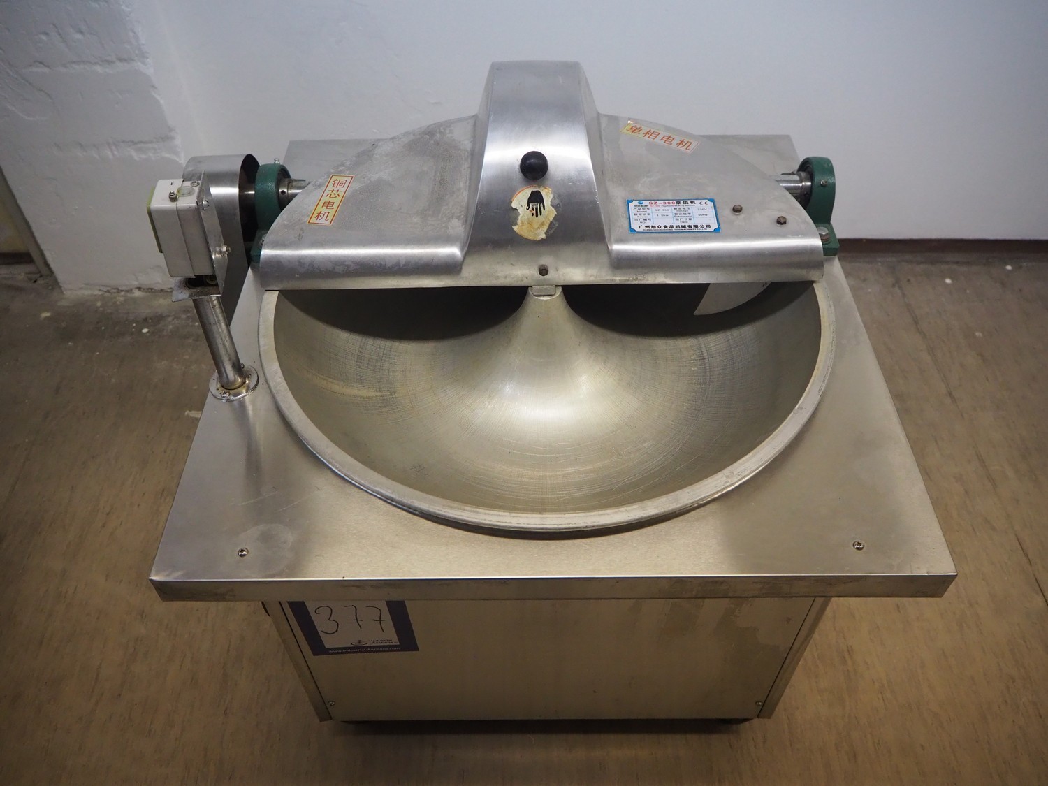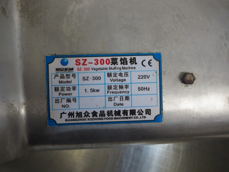 Guangzhou Xuzhong Food Machinery cutter, model: SZ-300, 220 V, 50 Hz, 1.5 kW, s/s bowl, inside dimensions: Ø 600 mm x 120 mm, total dimensions: 800 mm x 700 mm x 1200 mm.