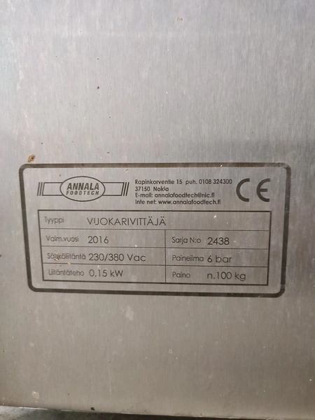 Annala Foodtech mobile tray denester, type: VUOKARITITTÄJÄ, serial number: 2438, year of construction: 2016, 230/380 V, 0,15 kW, 6 bar, weight: 100 kg, dimensions: 1310 mm x 700 mm x 1410 mm.