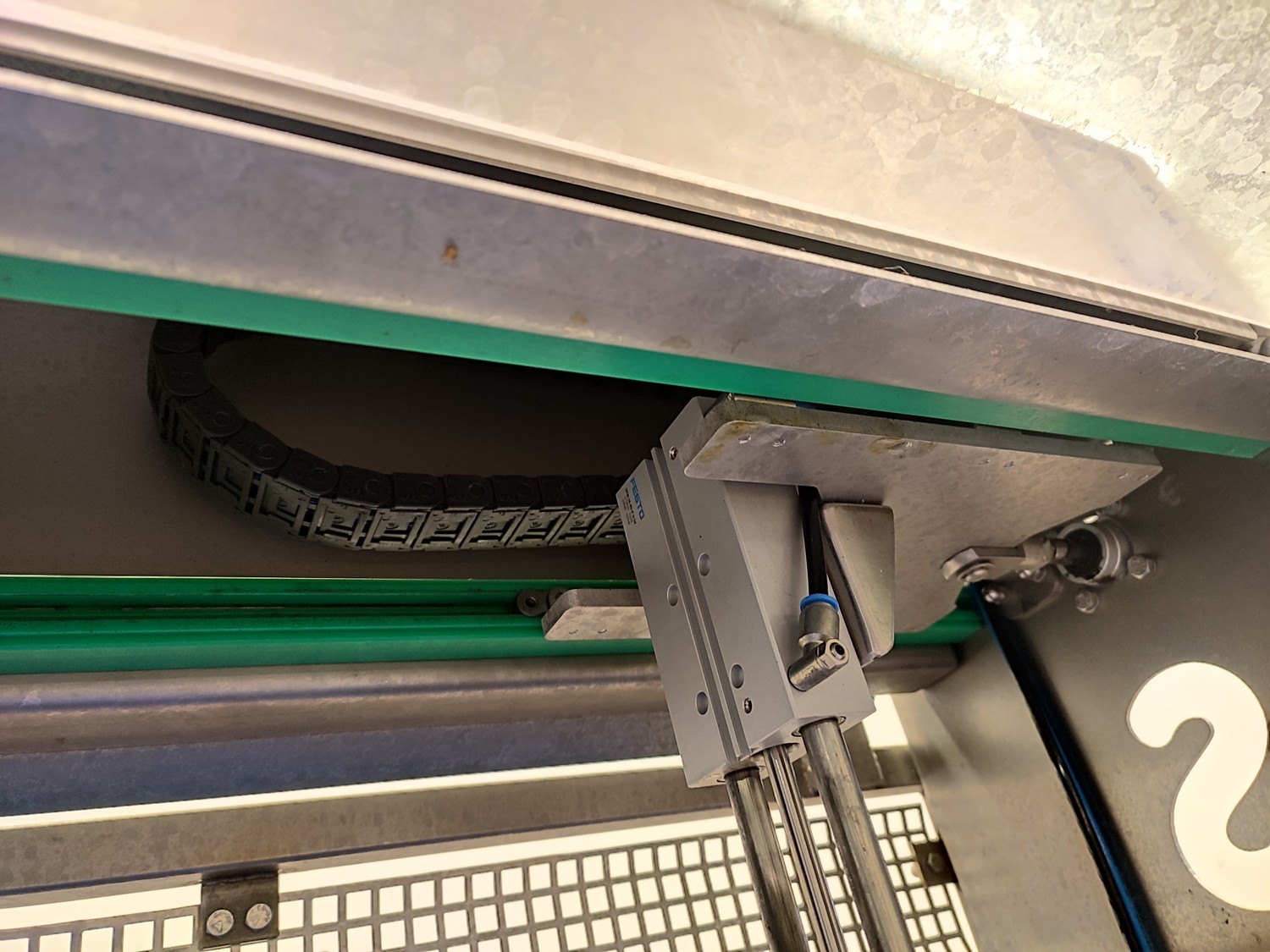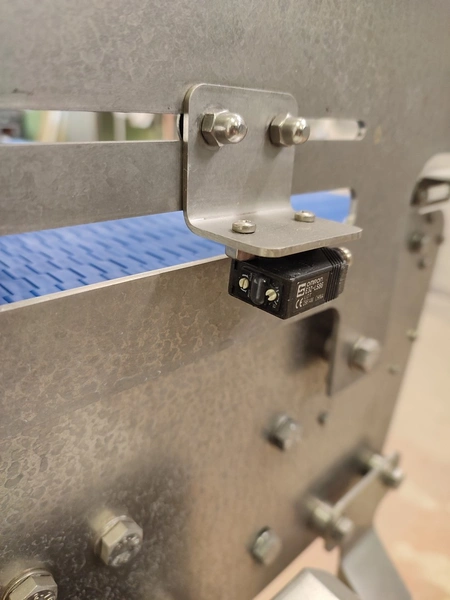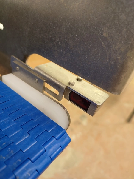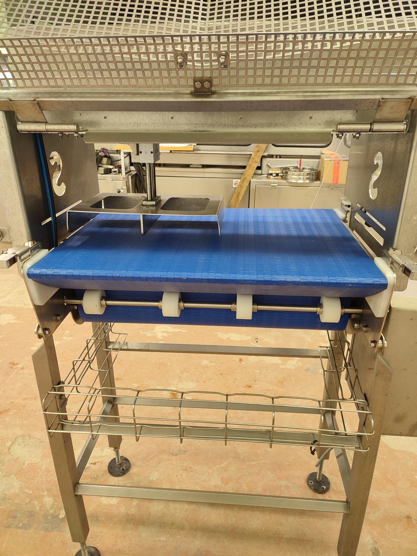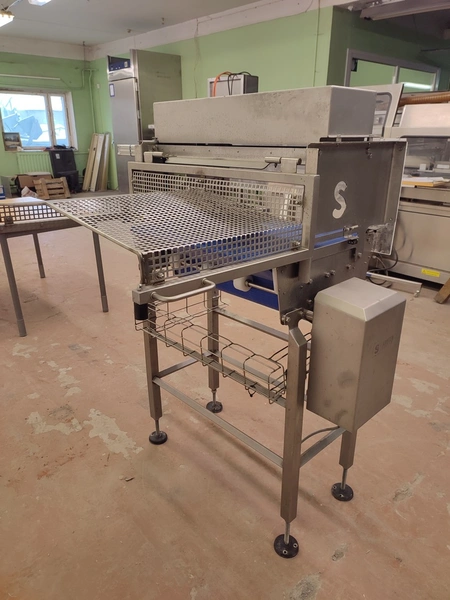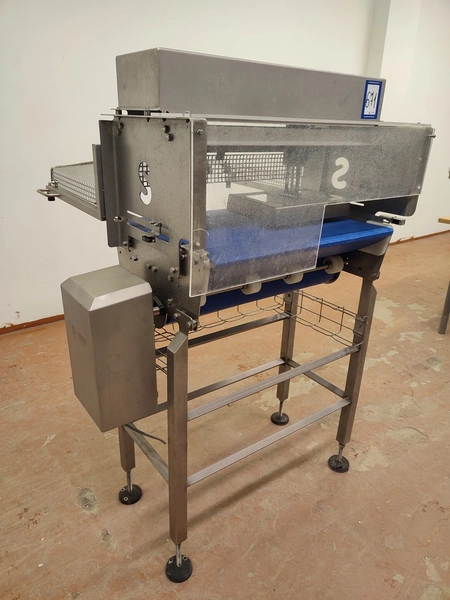Schutten tray separator, plastic mesh belt, belt width: 655 mm, total dimensions: 1400 mm x 970 mm x 1400 mm.