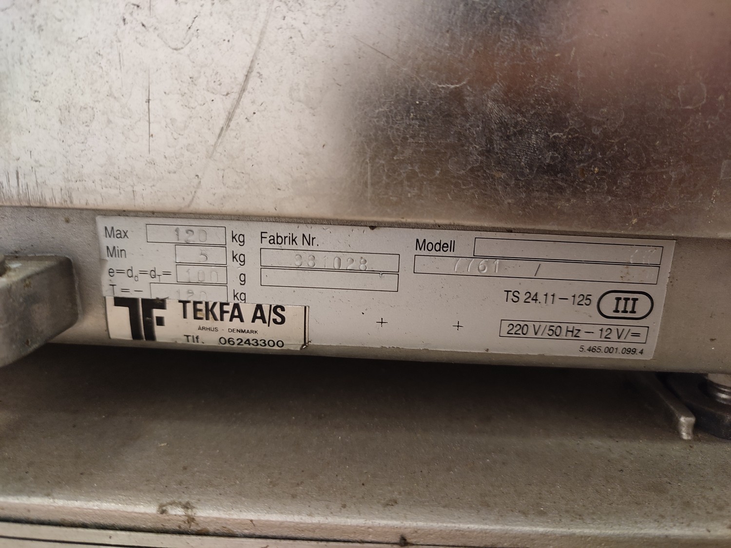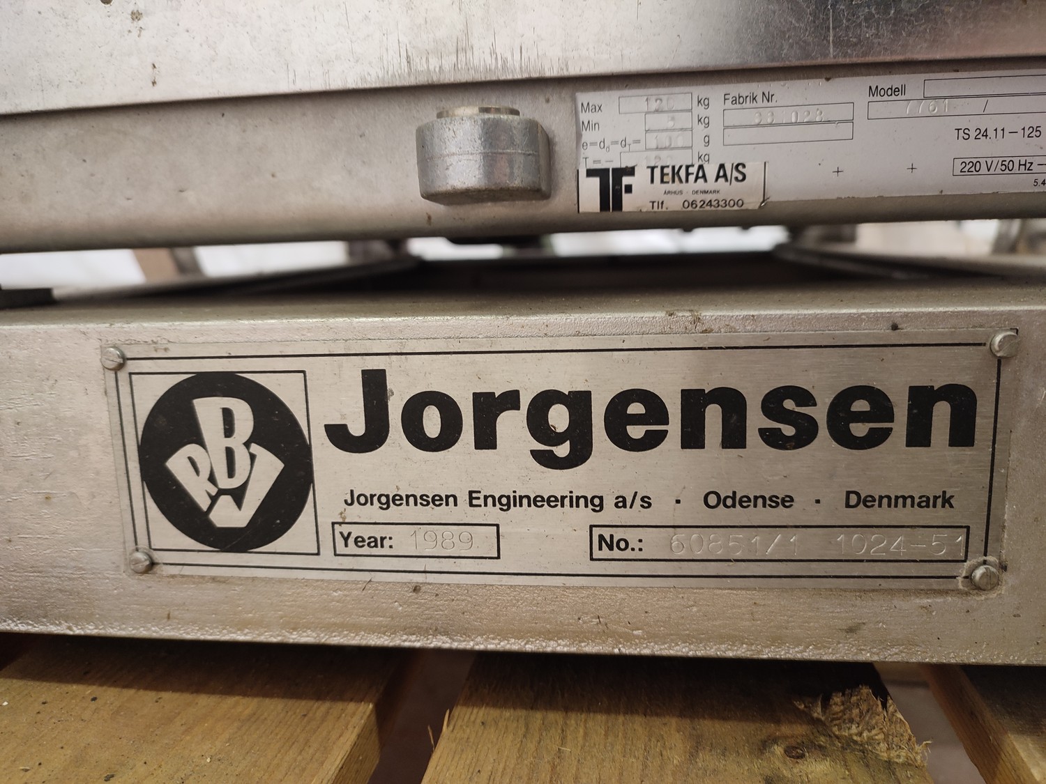 Jorgensen depositor, number: 60851/1 1024-51, year of construction: 1989, with Tekfa A/S scale, model: 7761, number: 881028, 220 V, 50 Hz, 12 V, total dimensions: 750 mm x 900 mm x 1840 mm.