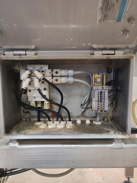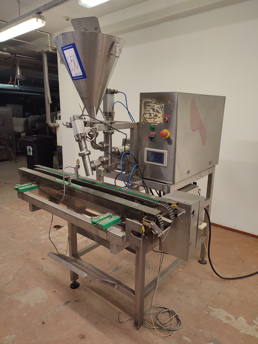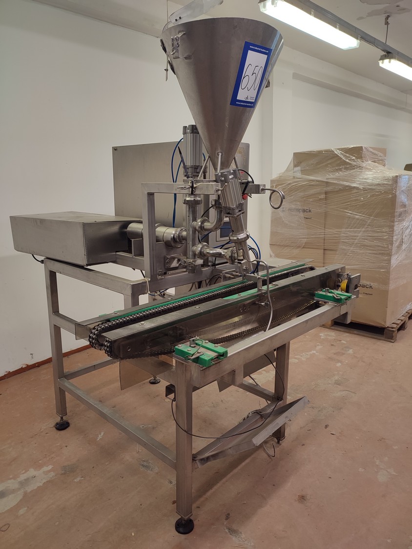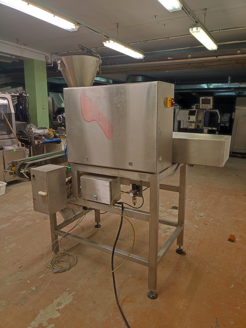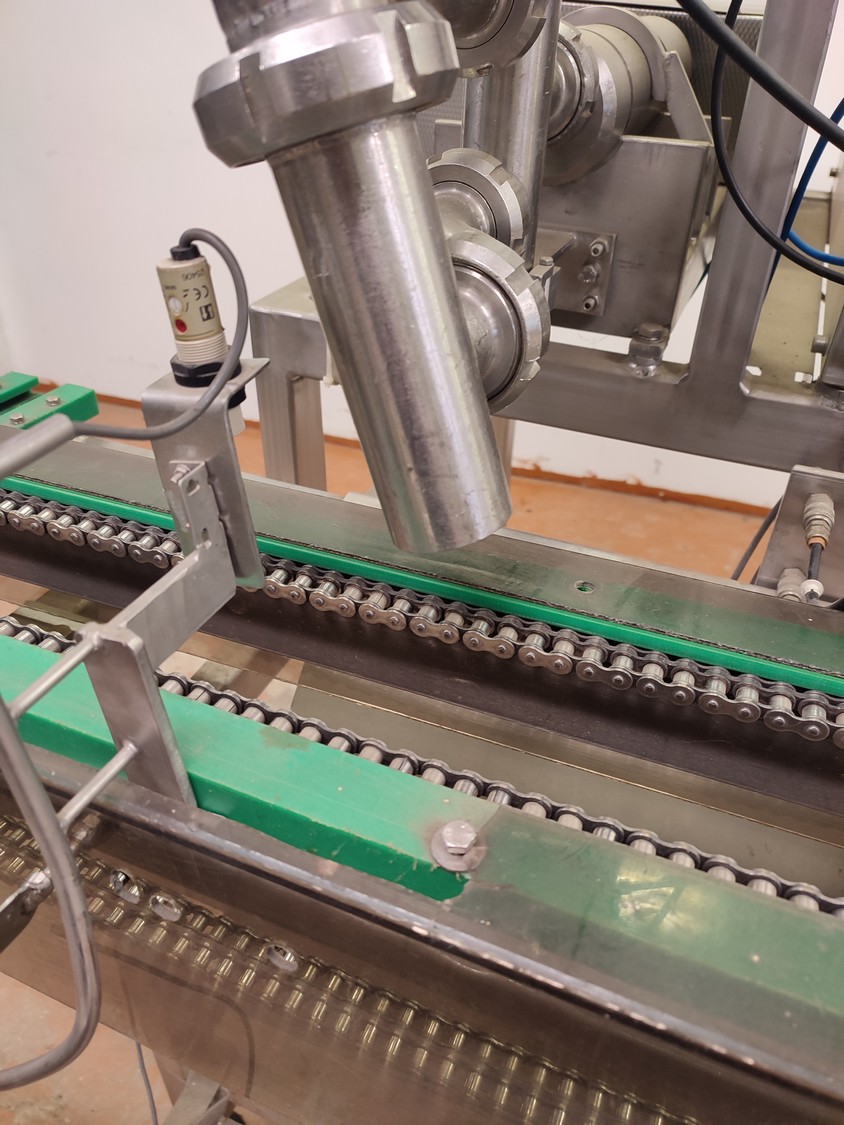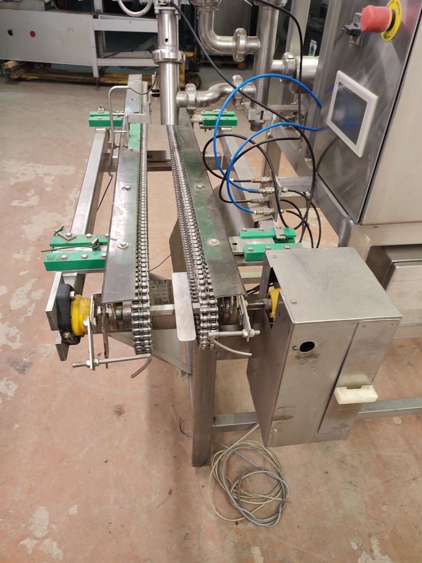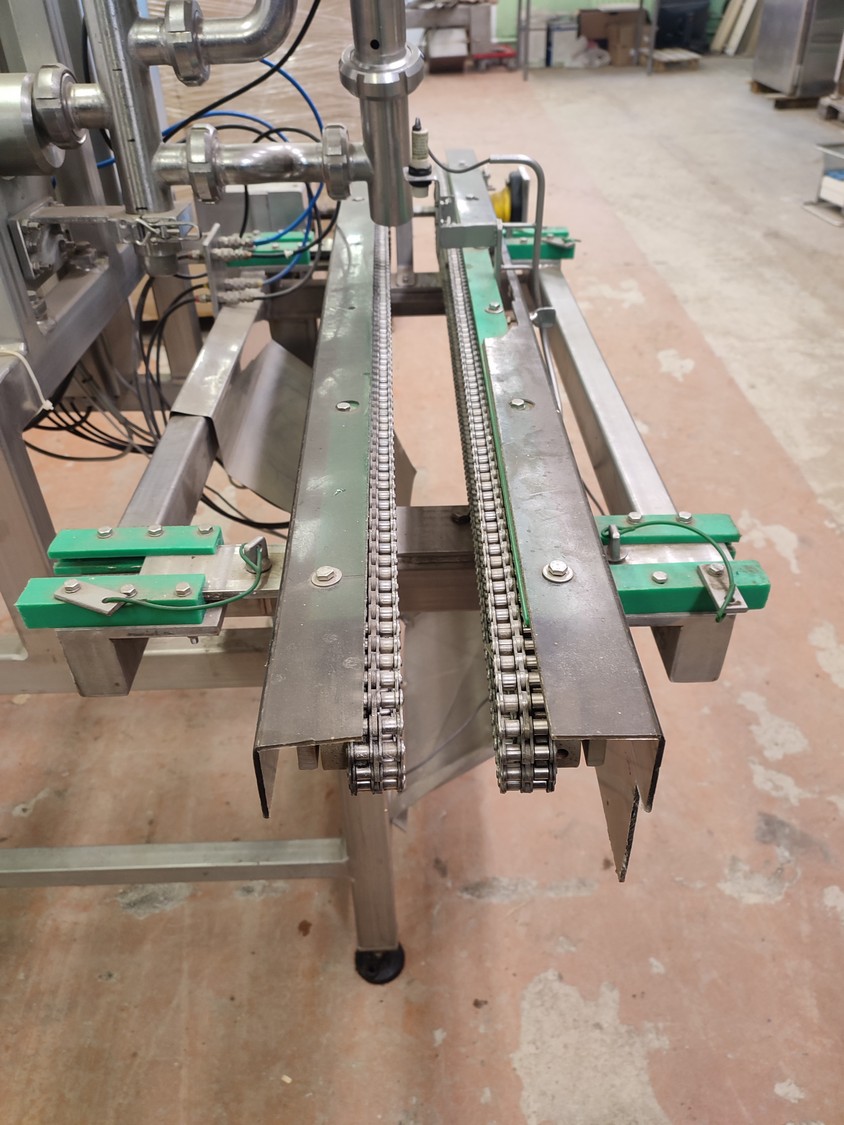 Depositor with chain conveyor, distance between chains: max. 170 mm, dimensions: 1450 mm x 1780 mm x 2060 mm.