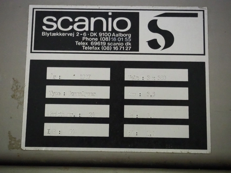 Scanio fat analyser, type: Scanalyser, machine number: 24, year of construction: 1987, 3x380 V, 50 Hz, 3.5 A, 1.6 kW, dimensions: 720 mm x 800 mm x 1850 mm.