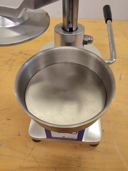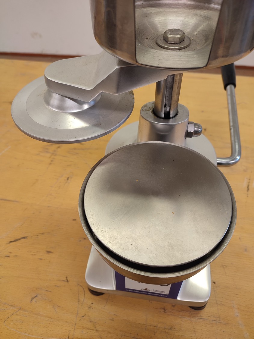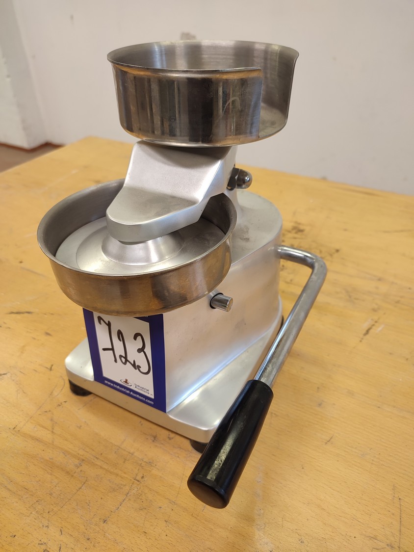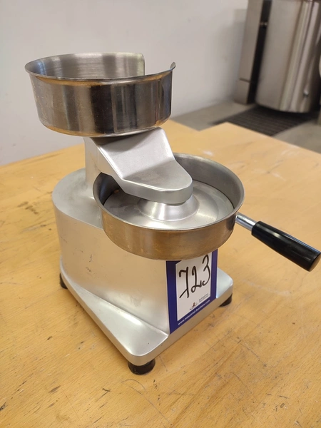 Manual burger press, dimensions: 210 mm x 300 mm x 280 mm.