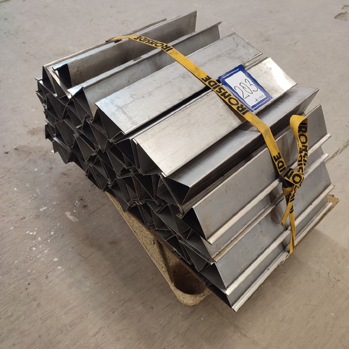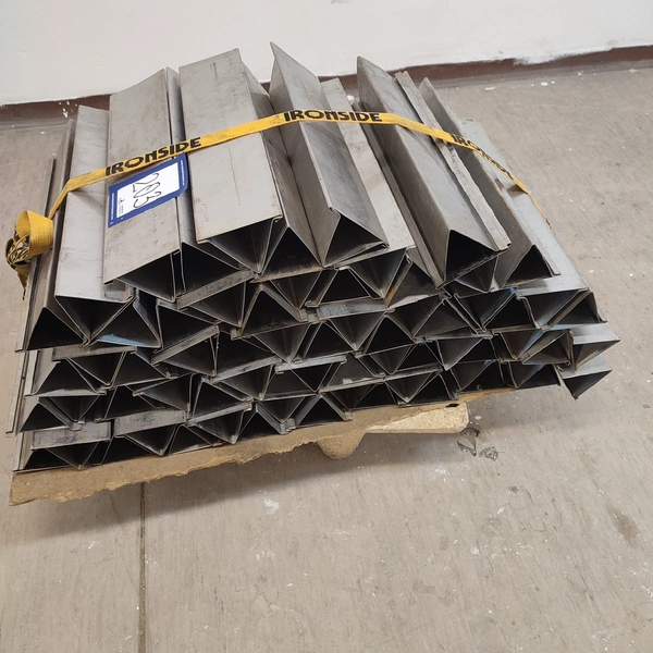 Pallet with 66 s/s ham moulds, inside dimensions 70 mm x 70 mm x 390 mm, total dimensions: 800 mm x 550 mm x 500 mm.