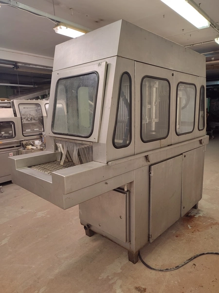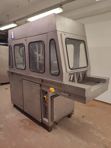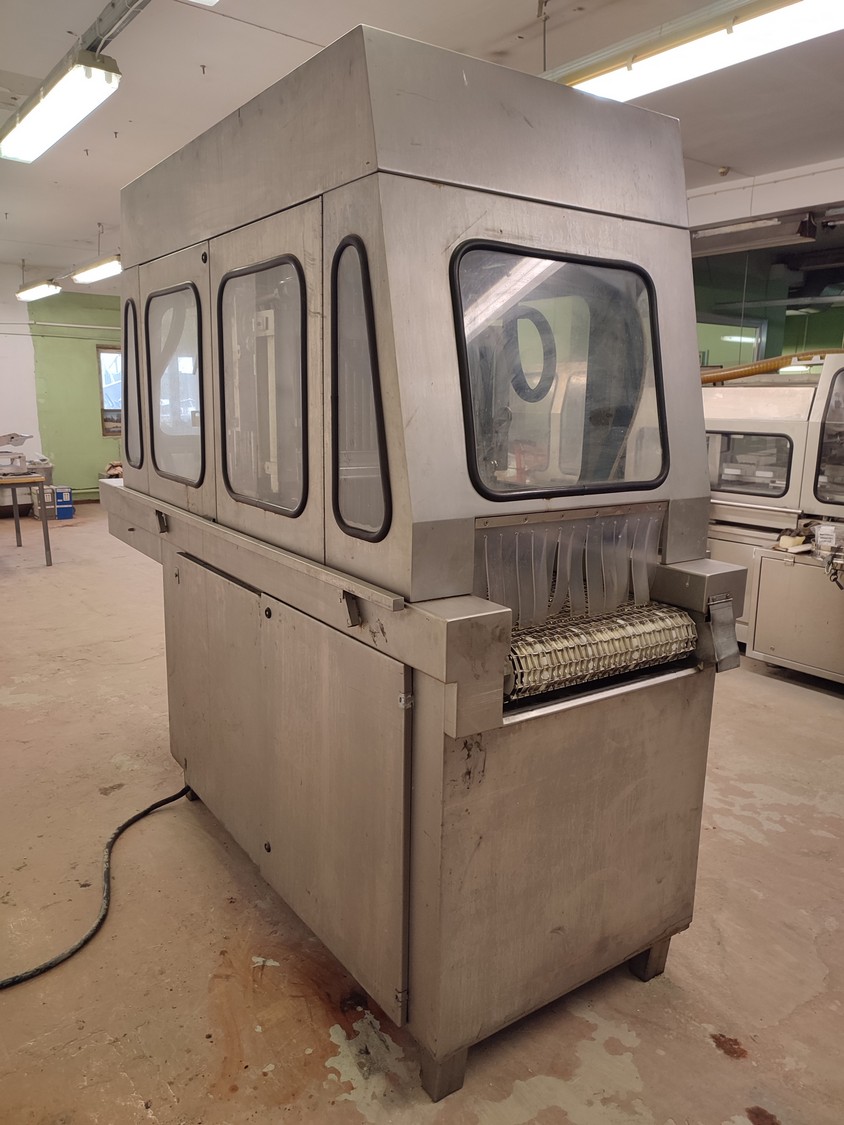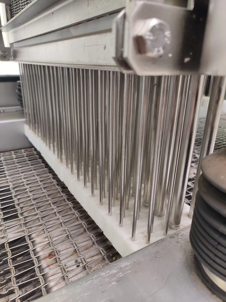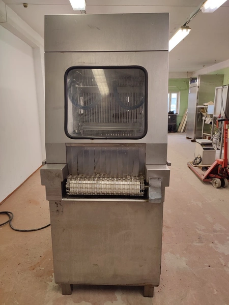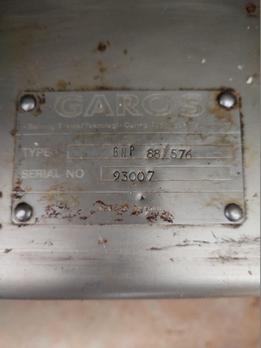 Garos injector and tenderizer, type: GNP 88/576, serial number: 93007, s/s mesh belt, belt width: 520 mm, 88 needles, dimensions: 2500 mm x 950 mm x 2100 mm. Technical condition unknown.