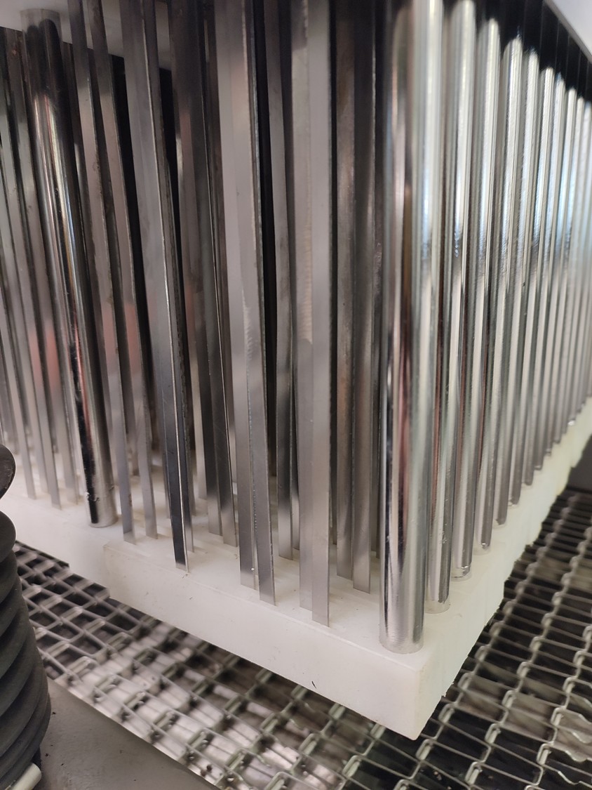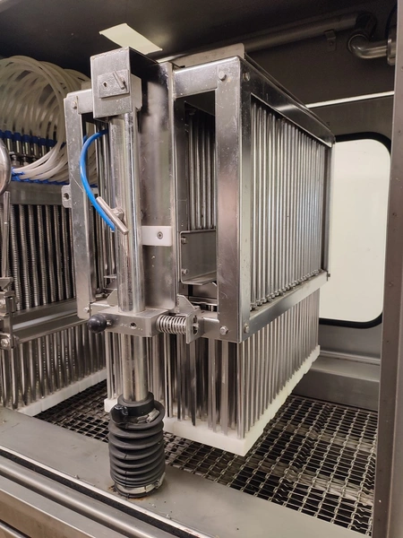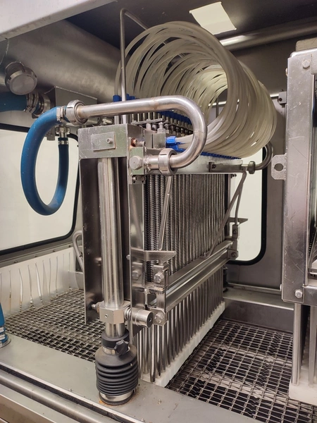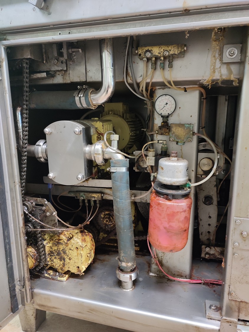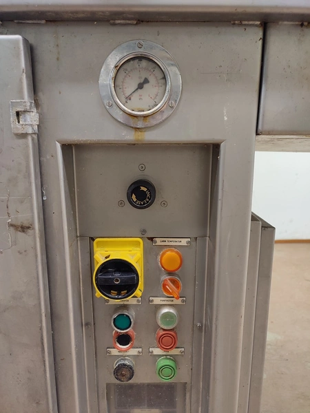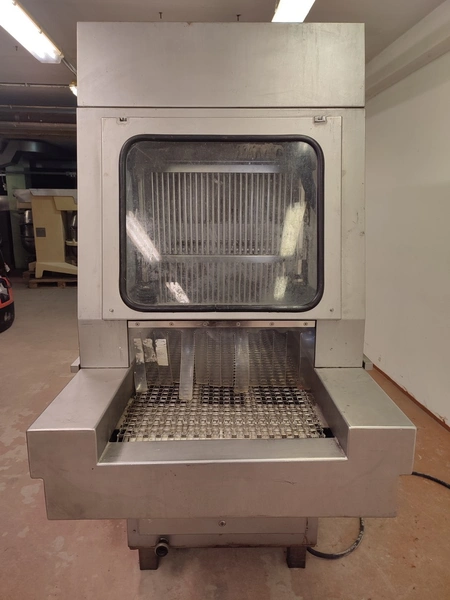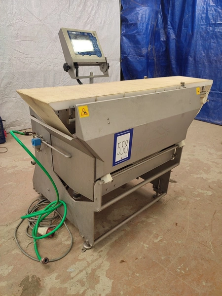 Garos injector and tenderizer, type: GNP 88/576, serial number: 93007, s/s mesh belt, belt width: 520 mm, 88 needles, dimensions: 2500 mm x 950 mm x 2100 mm. Technical condition unknown.