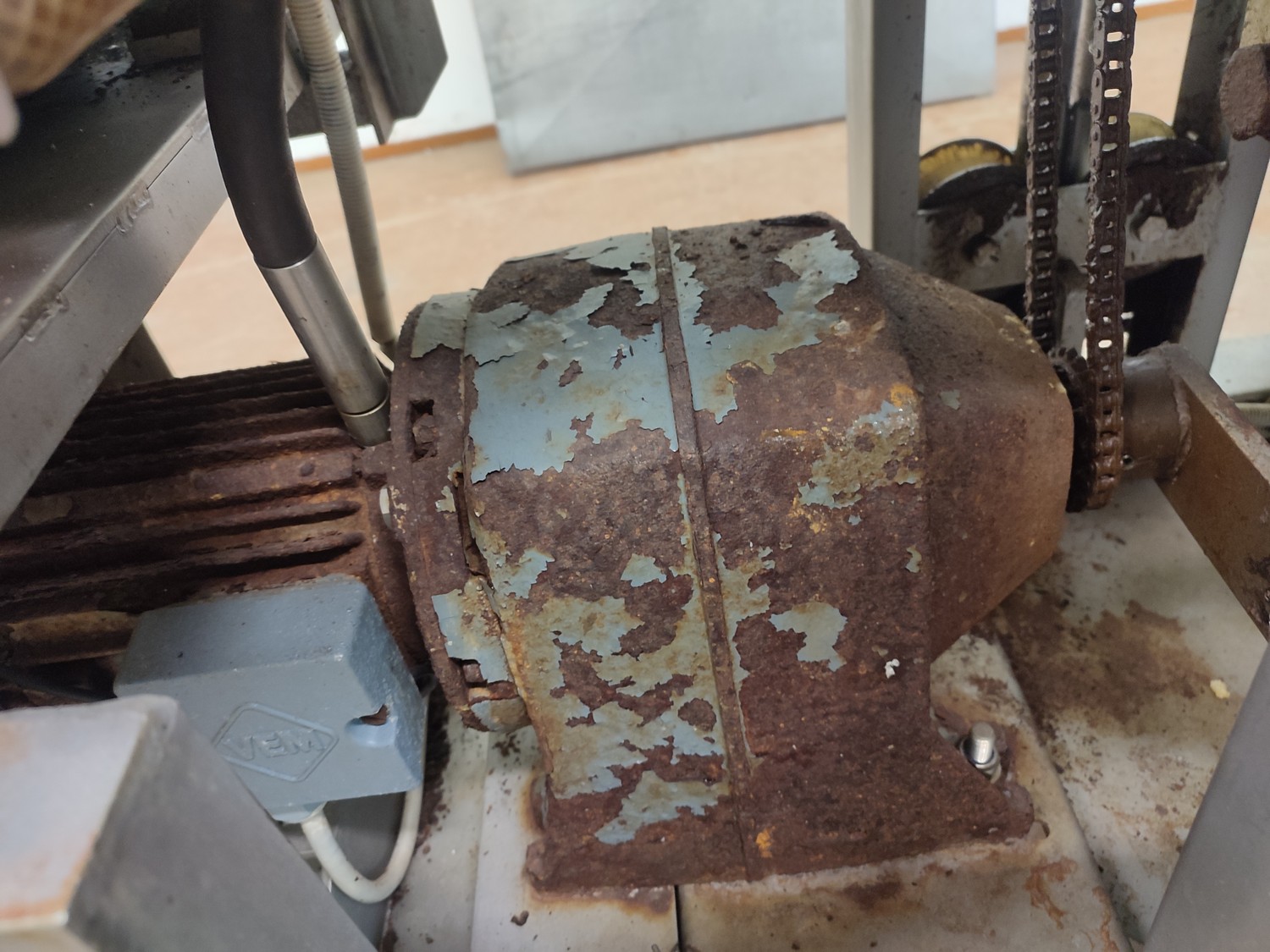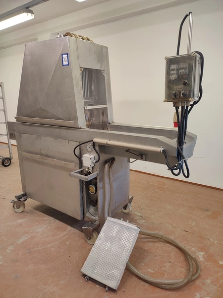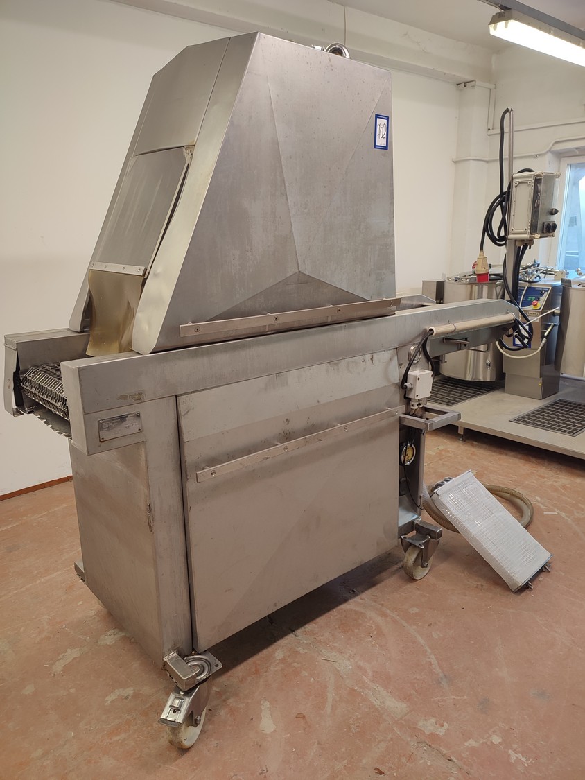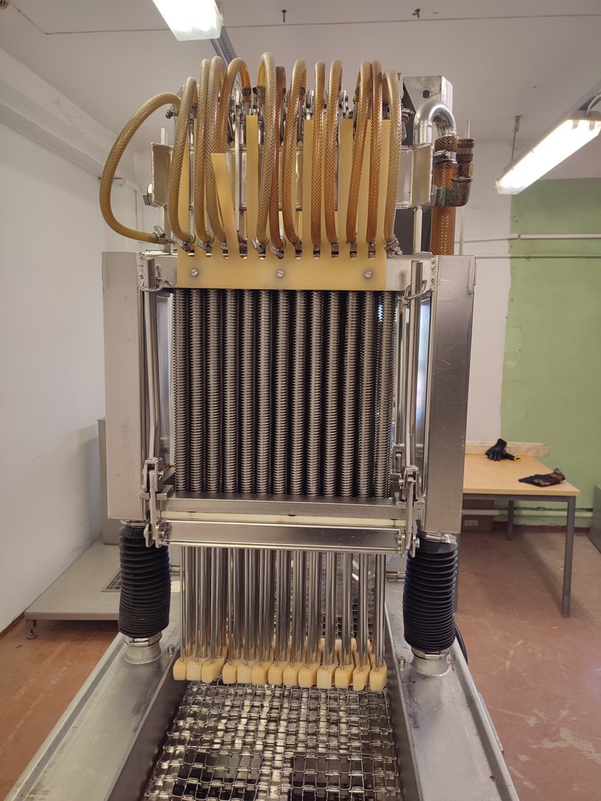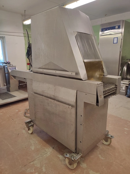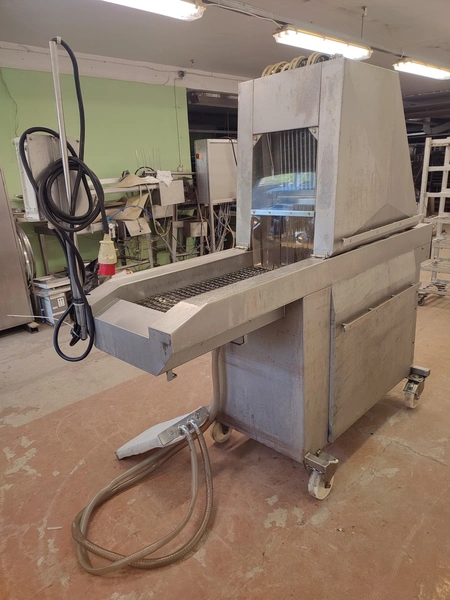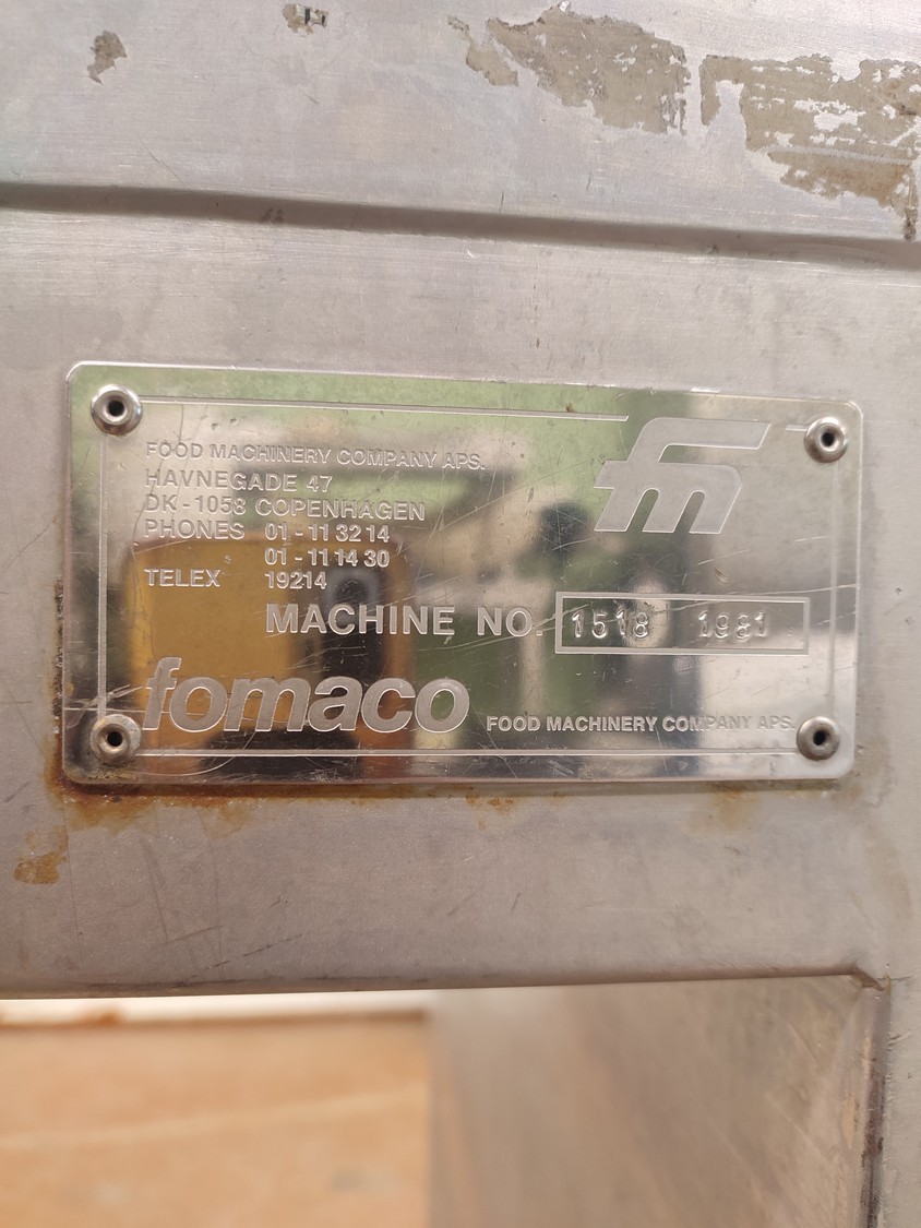 Fomaco mobile injector, machine number: 1518, year of construction: 1981, 26 needles, s/s belt, belt width: 340 mm, total dimensions: 2200 mm x 900 mm x 2000 mm.