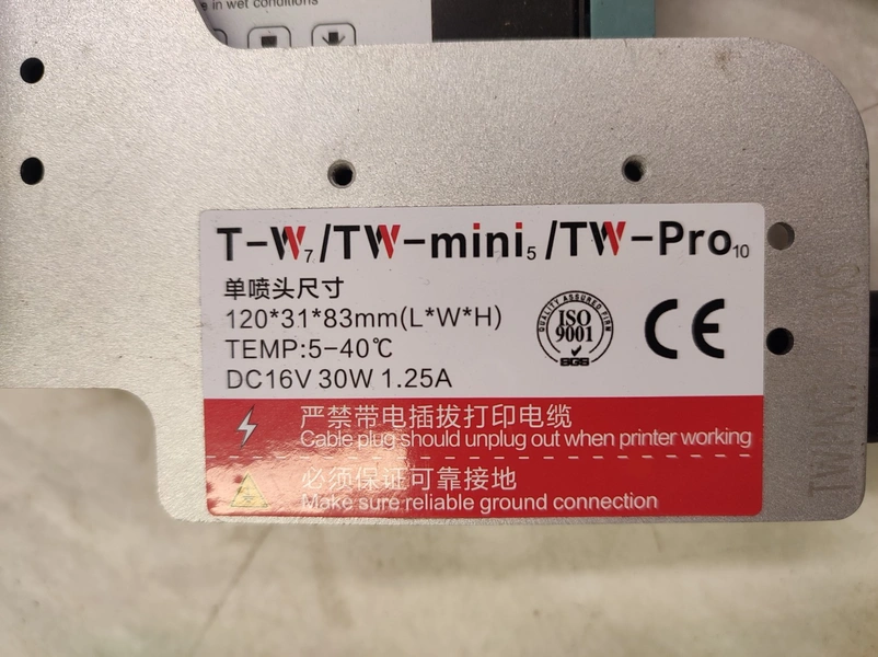 2 inkjet printers, model: T-W, serial number: 6593F-K/6600F-K, dimensions: 350 mm x 470 mm x 145 mm.