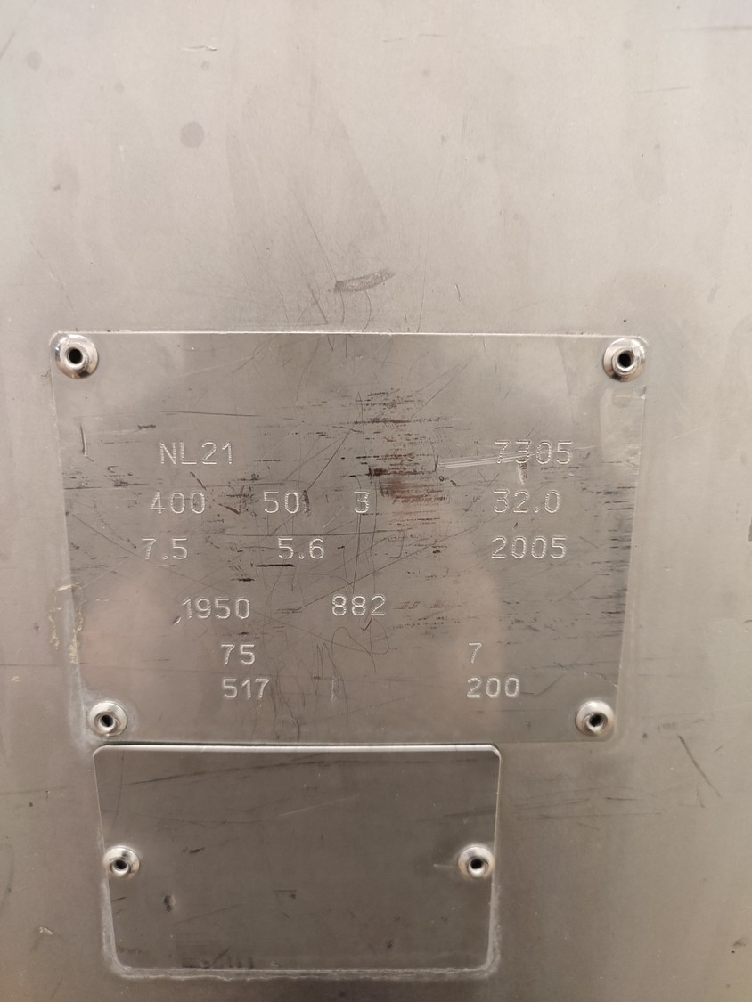 Townsend sausage linking machine, model: NL 21, serial number: 7305, year of construction: 2005, 400 V, 50 Hz, 3 Ph, 7,5/5,6 kW, 32 A, dimensions: 3500 mm x 850 mm x 1850 mm.