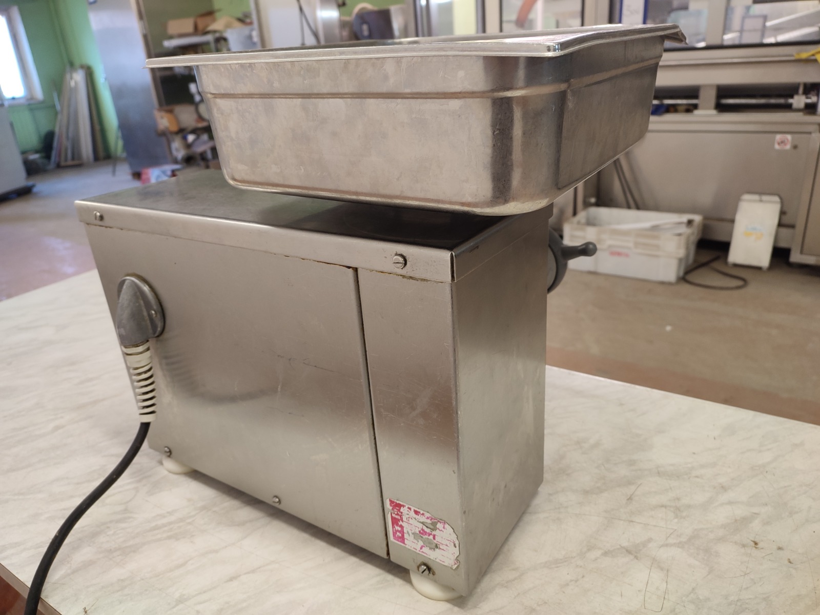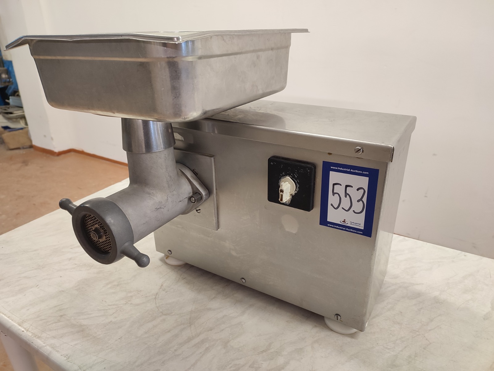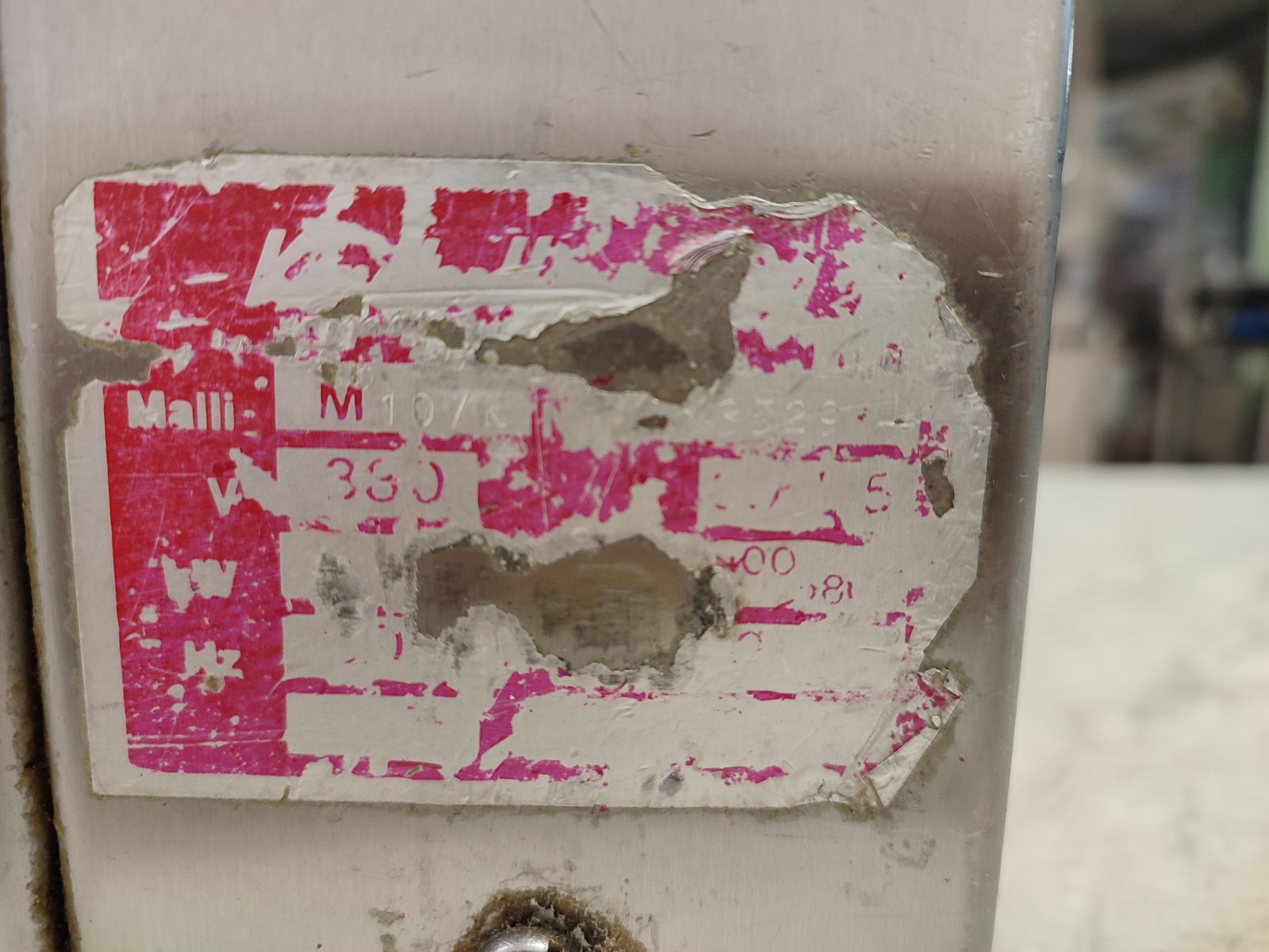 Koneteollisuus OY grinder, model: LM-10/K, number: 3529, 380 V, 3 Ph, 50 Hz, plate diameter: 70 mm, total dimensions: 550 mm x 420 mm x 470 mm.
