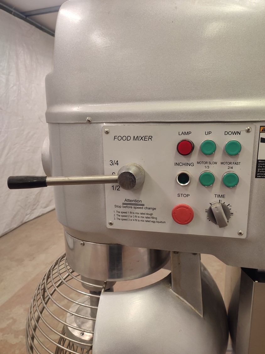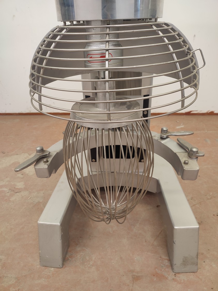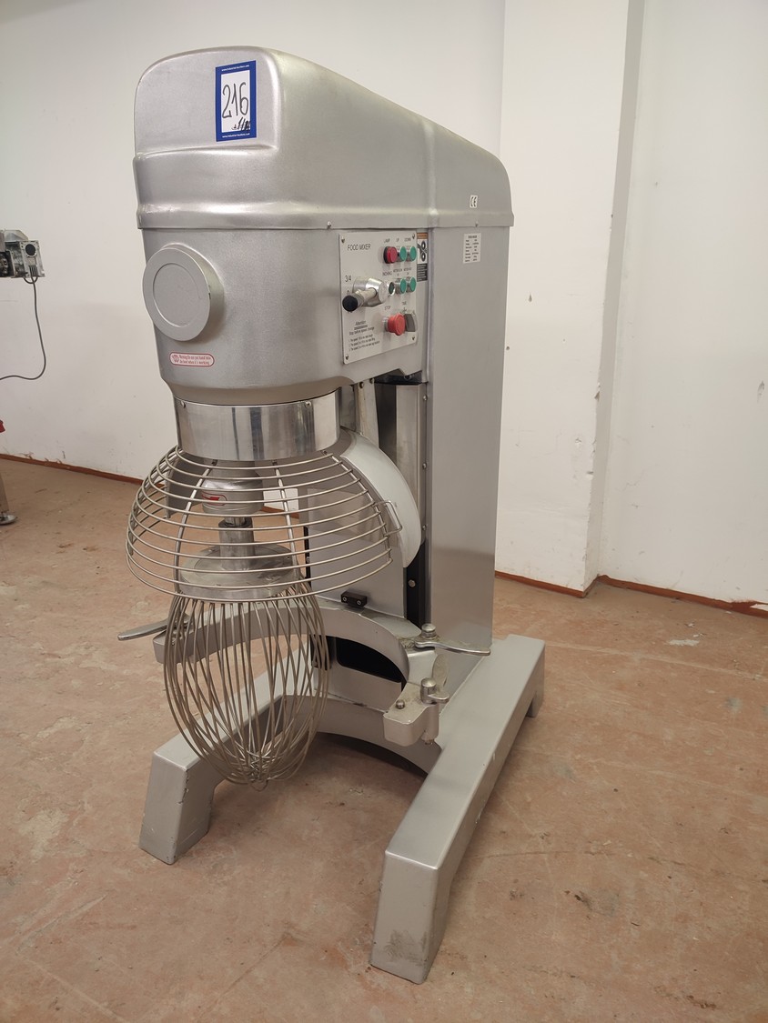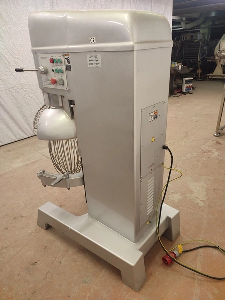 Food Mixer bowl mixer, model: B100, serial number: 2007001, 380 V, 3 Ph, 50 Hz, 3/4 kW, weight: 551 kg, inside dimensions bowl: Ø 520 mm x 480 mm, total dimensions mixer: 740 mm x 1205 mm x 1620 mm. Including 3 extra s/s bowls, dimensions: (3x) 630 mm x 700 mm x 930 mm.