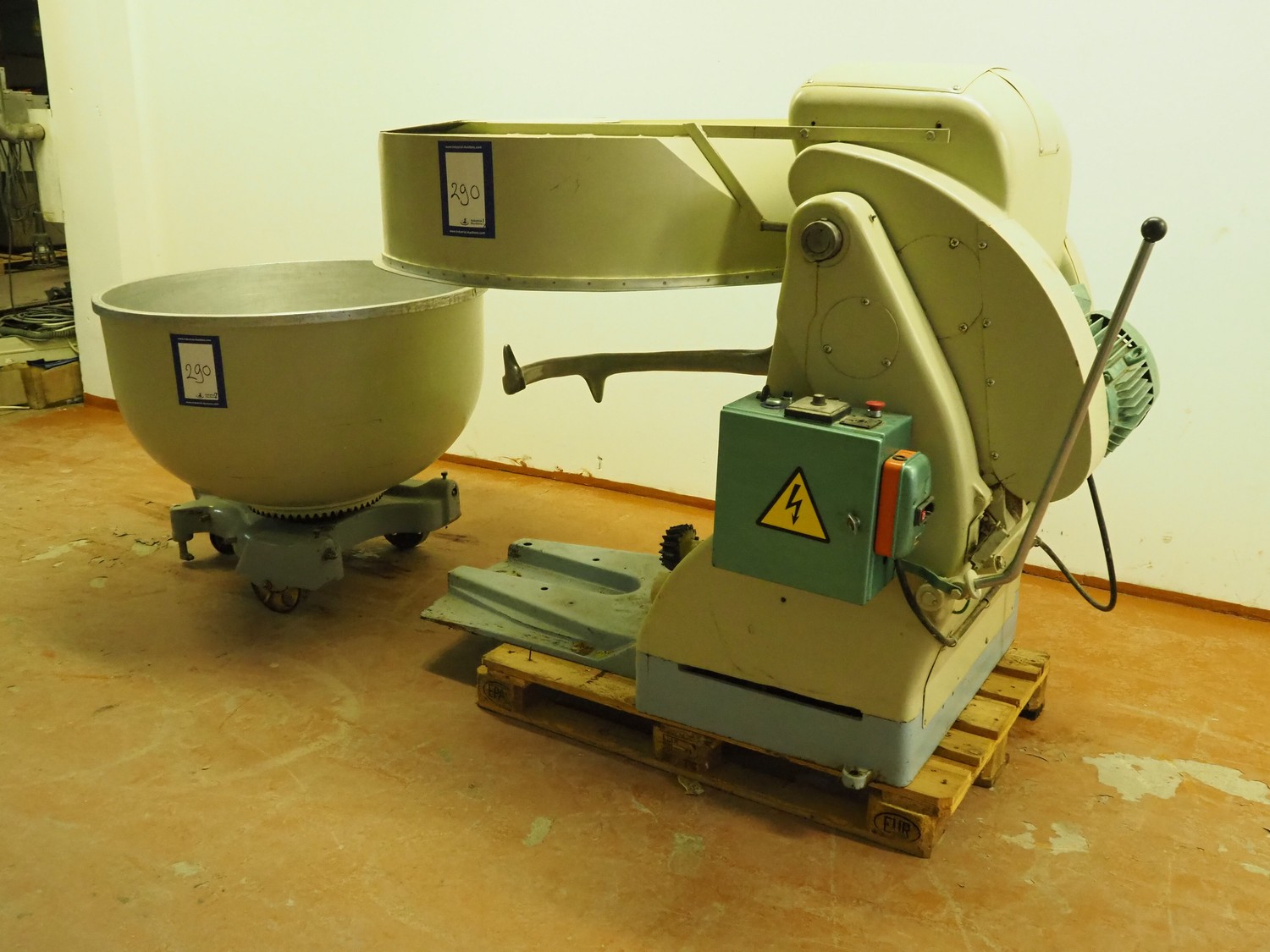 Daub & Verhoeven mixer with 1 s/s bowl, machine number: 5758, dimensions mixer: 1930 mm x 1130 mm x 1420 mm, inside dimensions bowl: Ø 1100 mm x 620 mm, total dimensions bowl: 1260 mm x 1150 mm x 930 mm.