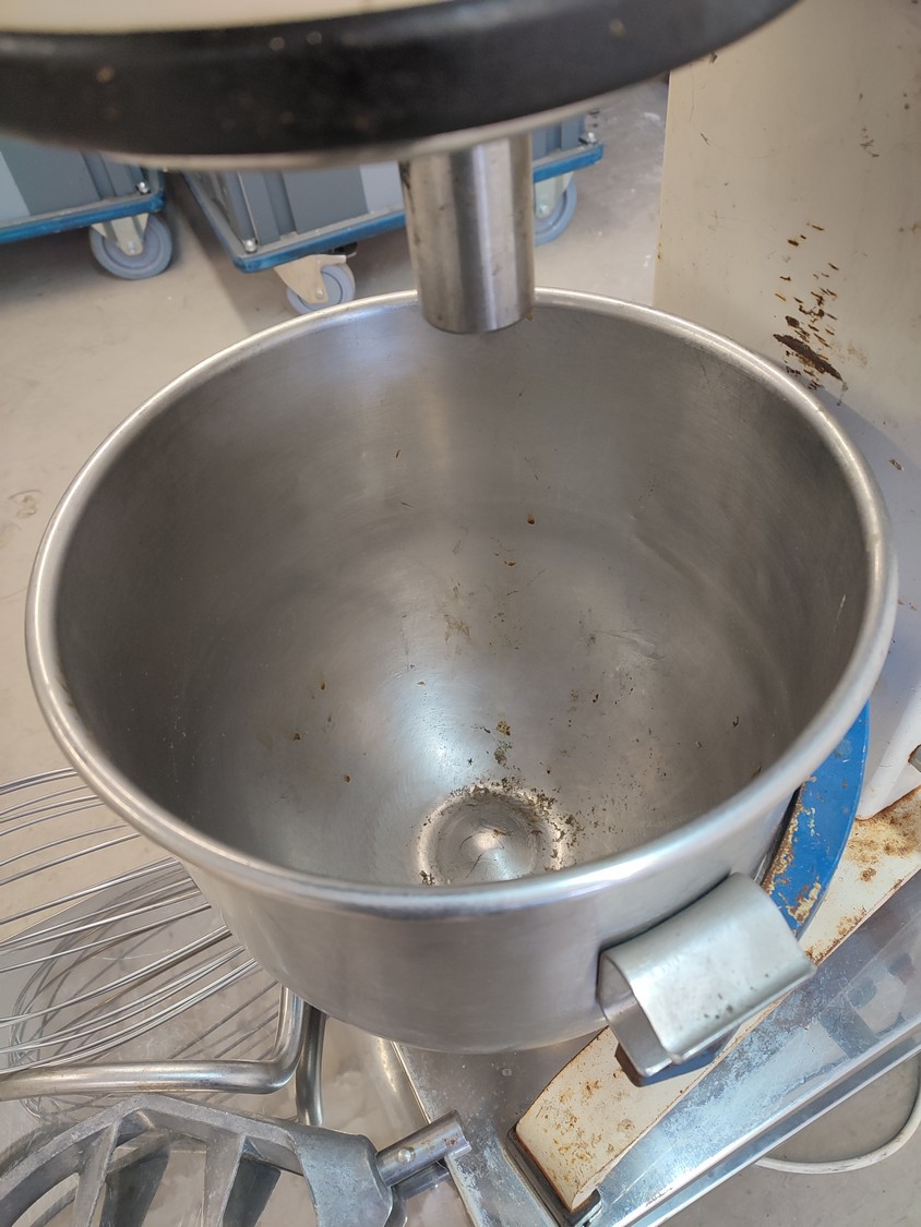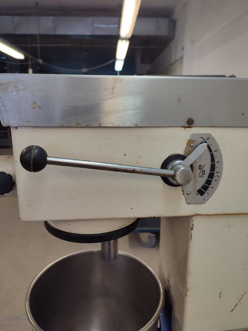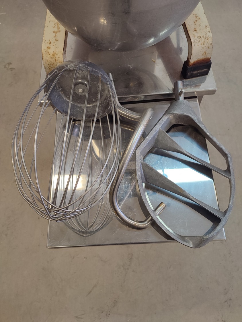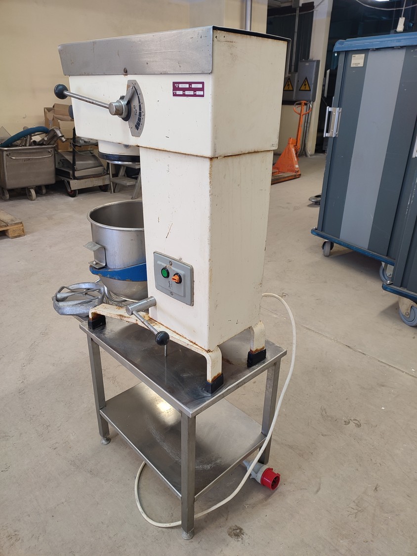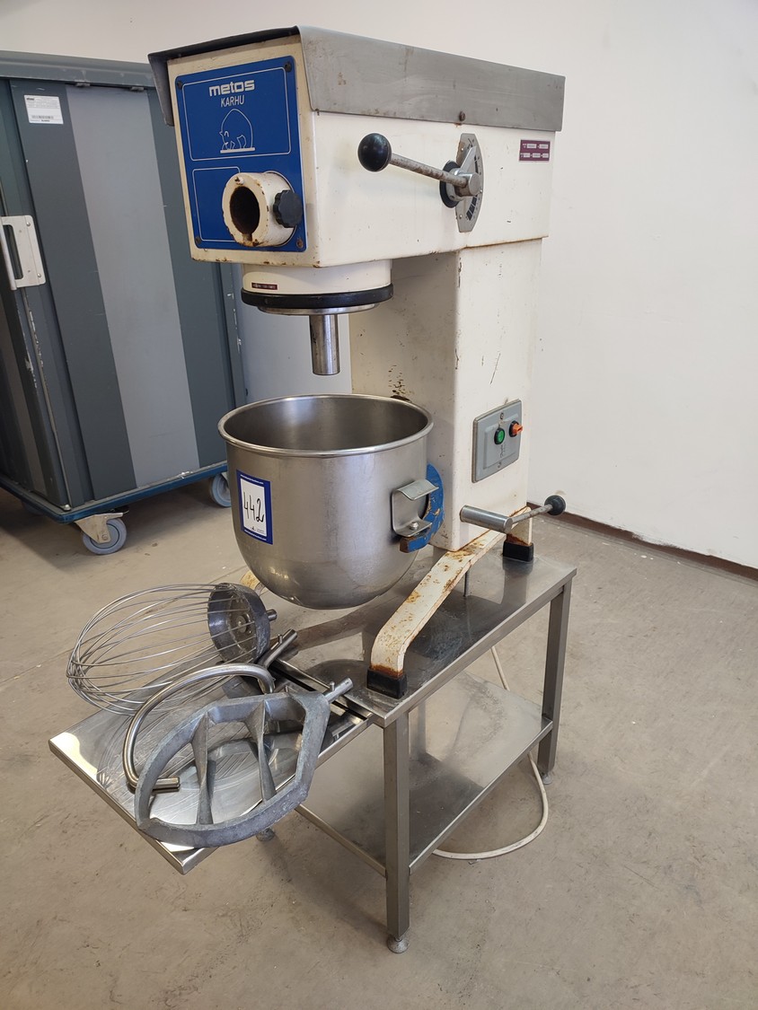 Metos mixer, type: R.20, number: 22029, year of construction: 1989, 380 V, 3 Ph, 50 Hz, 2.1 A, total dimensions: 430 mm x 610 mm x 1430 mm.