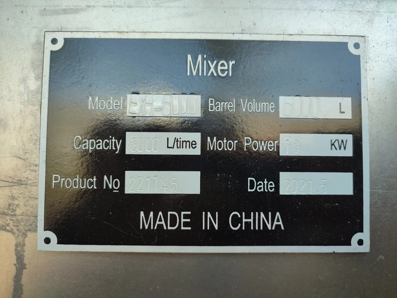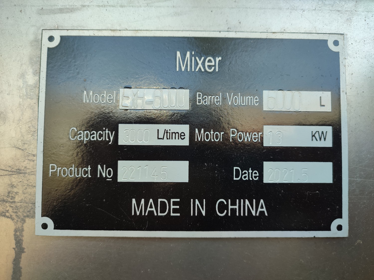 Mixer/tumbler, model: EYH-6000, number: 221145, year of construction: 05.2021, 13 kW, capacity: 6000 litres, dimensions frame: 2270 mm x 4160 mm x 1600 mm, dimensions tank: 1800 mm x 4300 mm x 1800 mm.