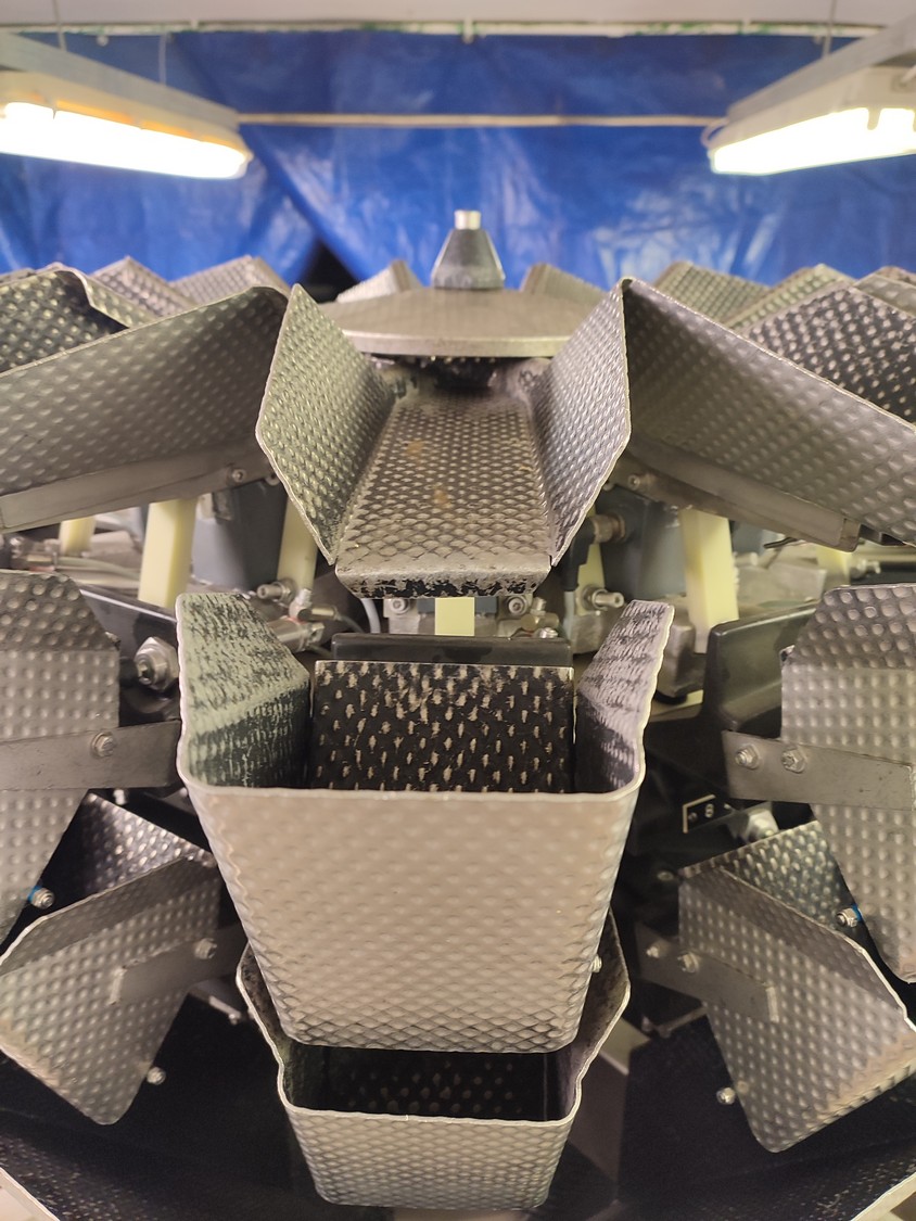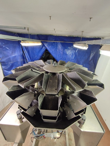 Cabinplant International A/S 12-heads multihead weigher, dimensions: 1000 mm x 1110 mm x 2400 mm.