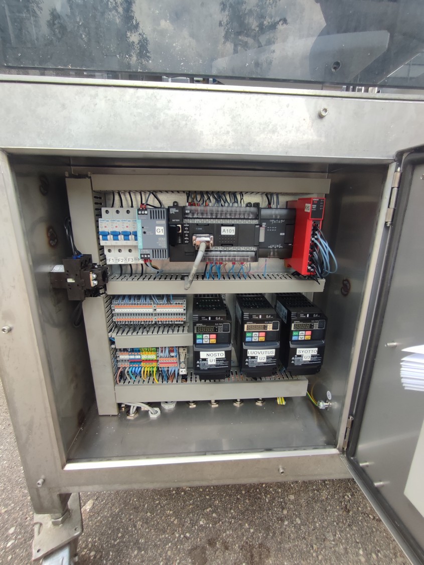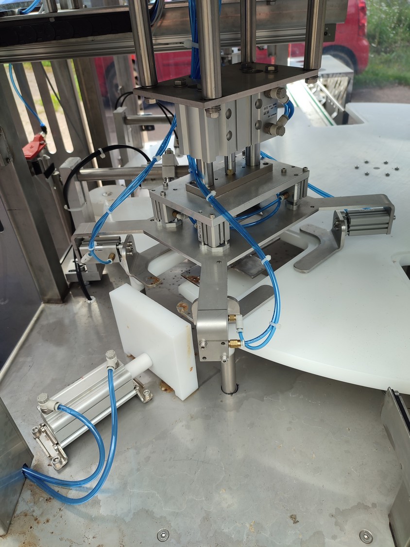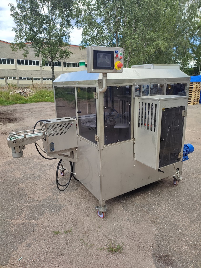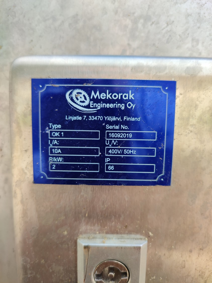 Mekorak Engineering Oy mobile rotary tray closing machine, type: OK 1, serial number: 16092019, year of construction: 2019, 400 V, 50 Hz, 10 A, 2 kW, dimensions: 2860 mm x 1670 mm x 1730 mm.