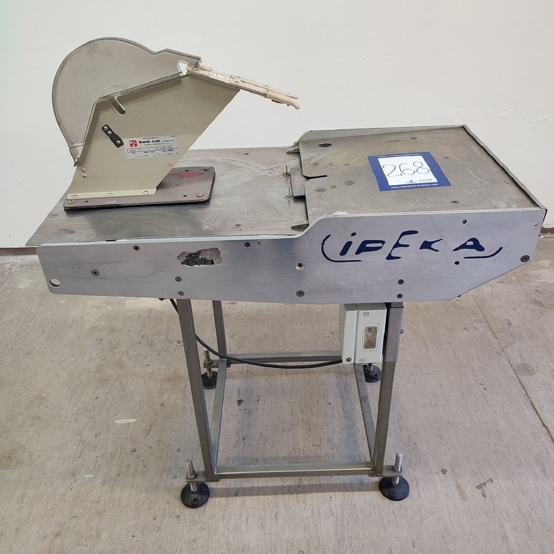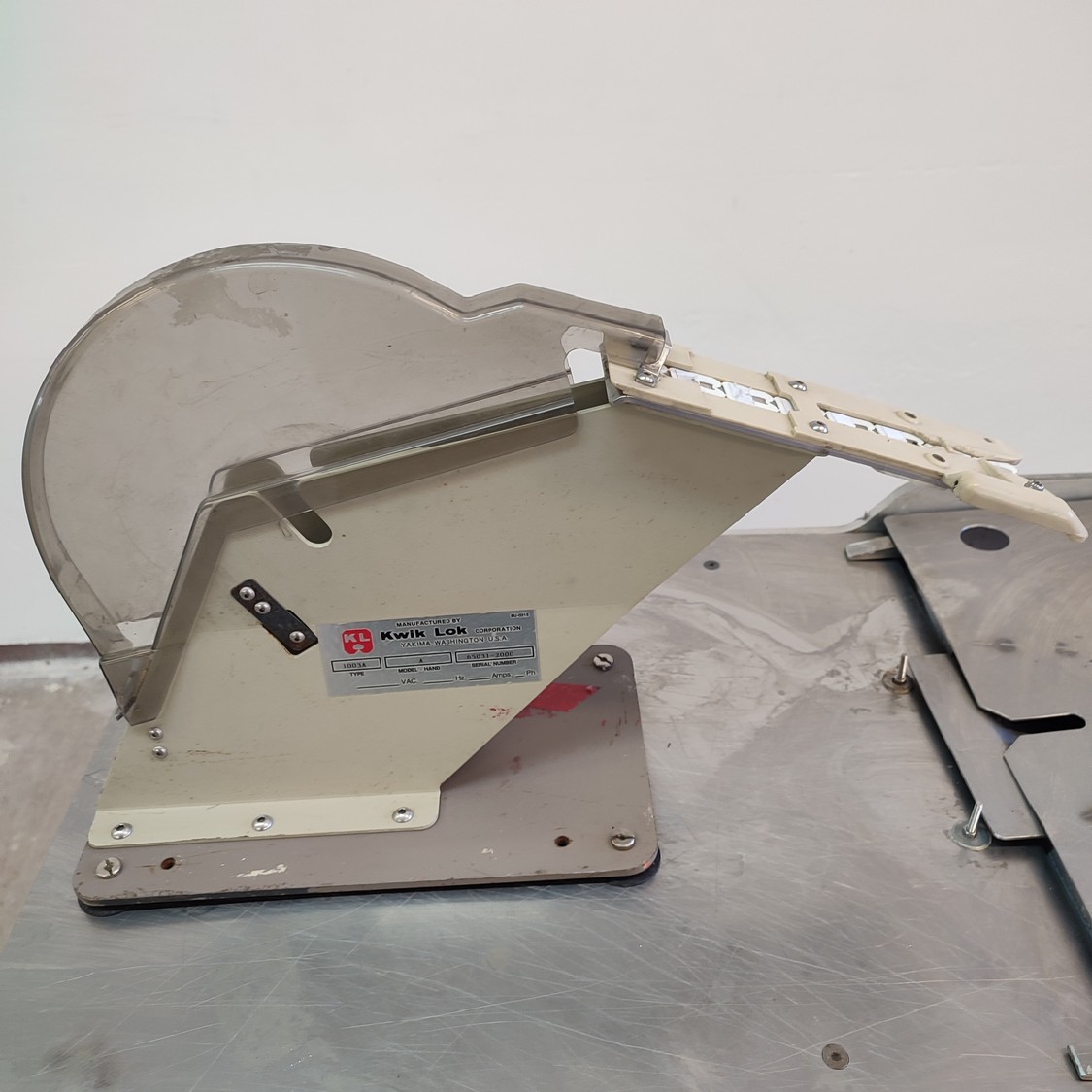 Kwik Lok bag blower and closing machine, type: 1003A, model-hand: A, serial number: 65031-2000, dimensions 980 mm x 490 mm x 1000 mm.