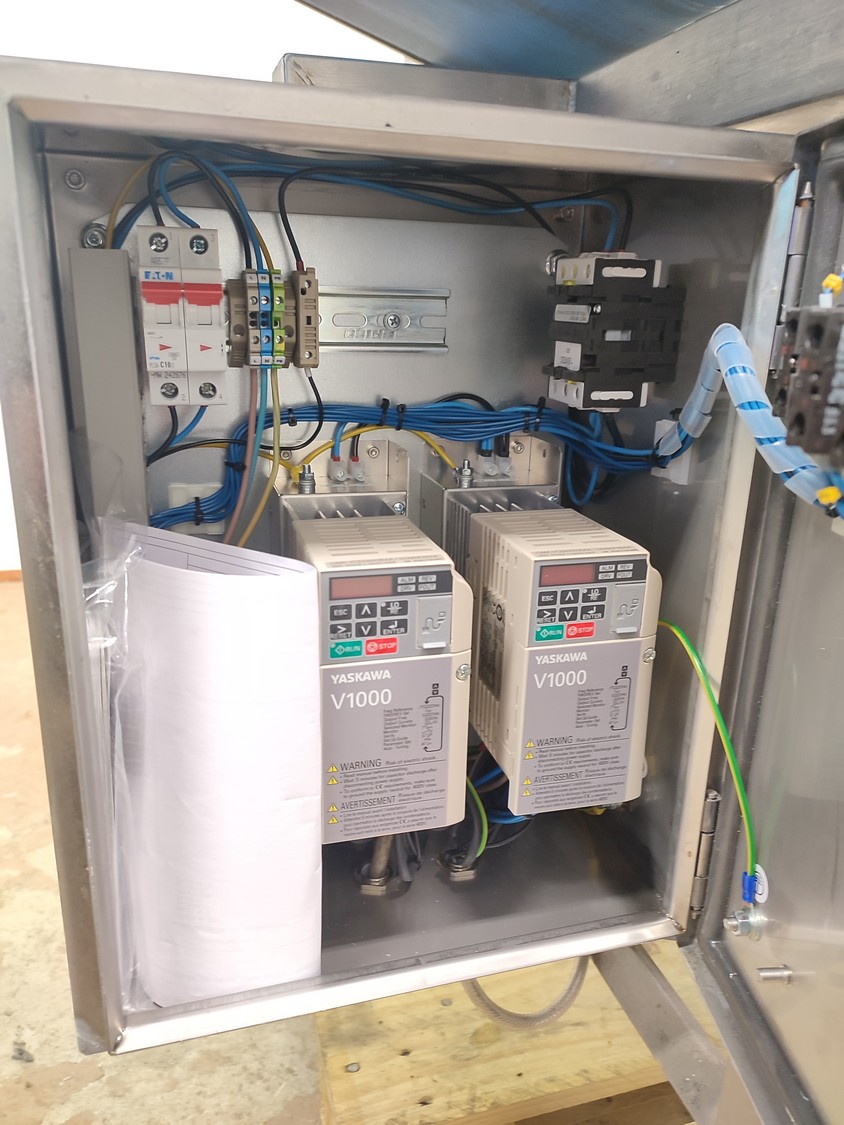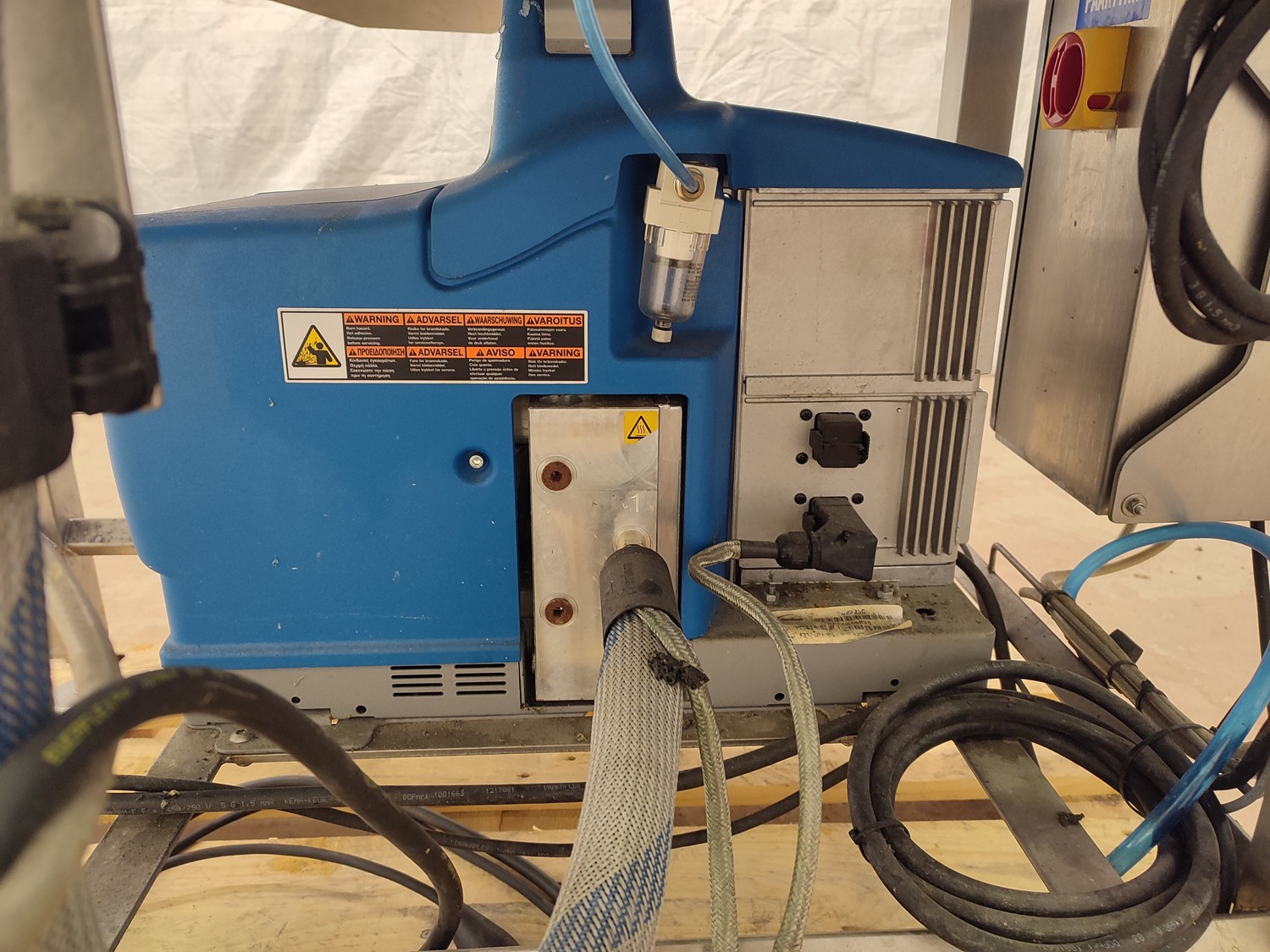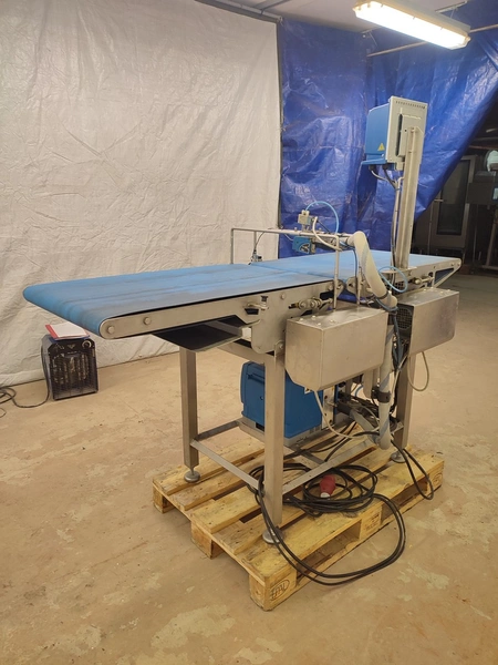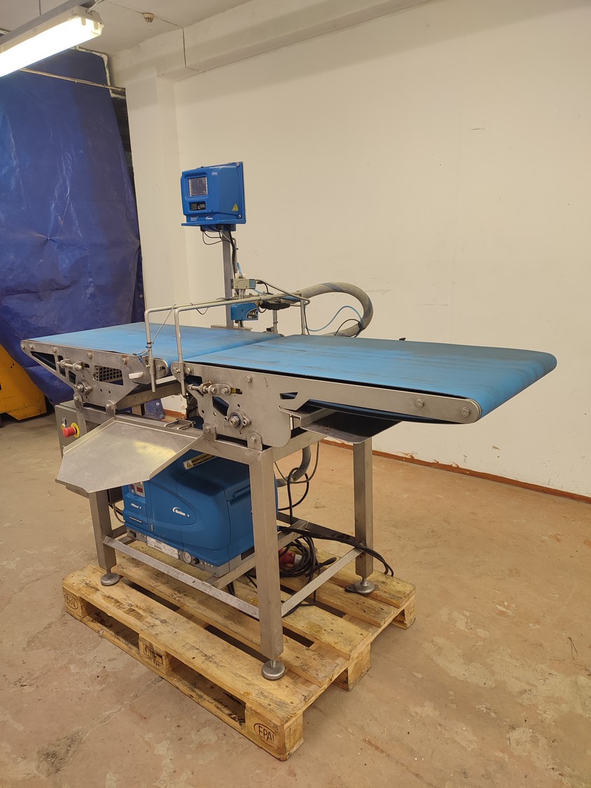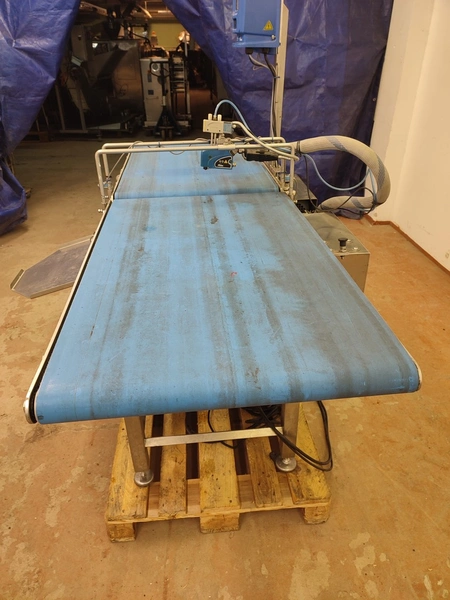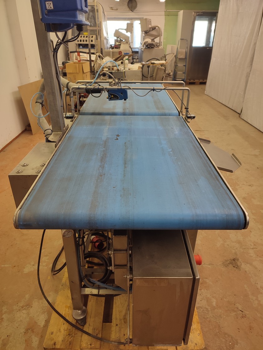 Custom Automation Oy packing belt, model: AKK1, year of construction: 2018, 230 V, 10 A, 0.40 kW, plastic belt, belt width: (2x) 550 mm. Including Nordson glue unit, model: PROBLUE 4, serial number: SA18K49828, 400/230 V, 1/3 Ph, 50/60 Hz, 26 A, total dimensions: 1860 mm x 910 mm x 1620 mm.