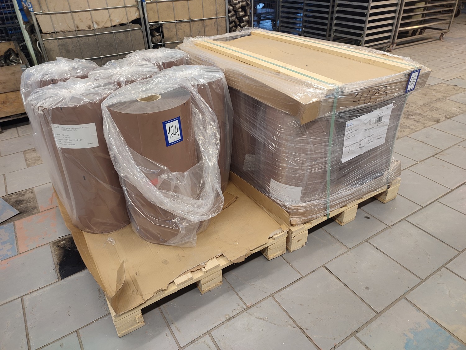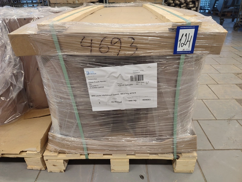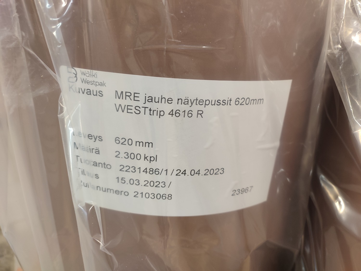 2 pallets with 14 rolls of Walki Westpak plastic film rolls, type: WESTrip 4616 R, date of manufacture: 24.04.2023, film width: 620 mm, weight: 440/330 kg, total dimensions: (2x) 800 mm x 1200 mm x 800 mm.