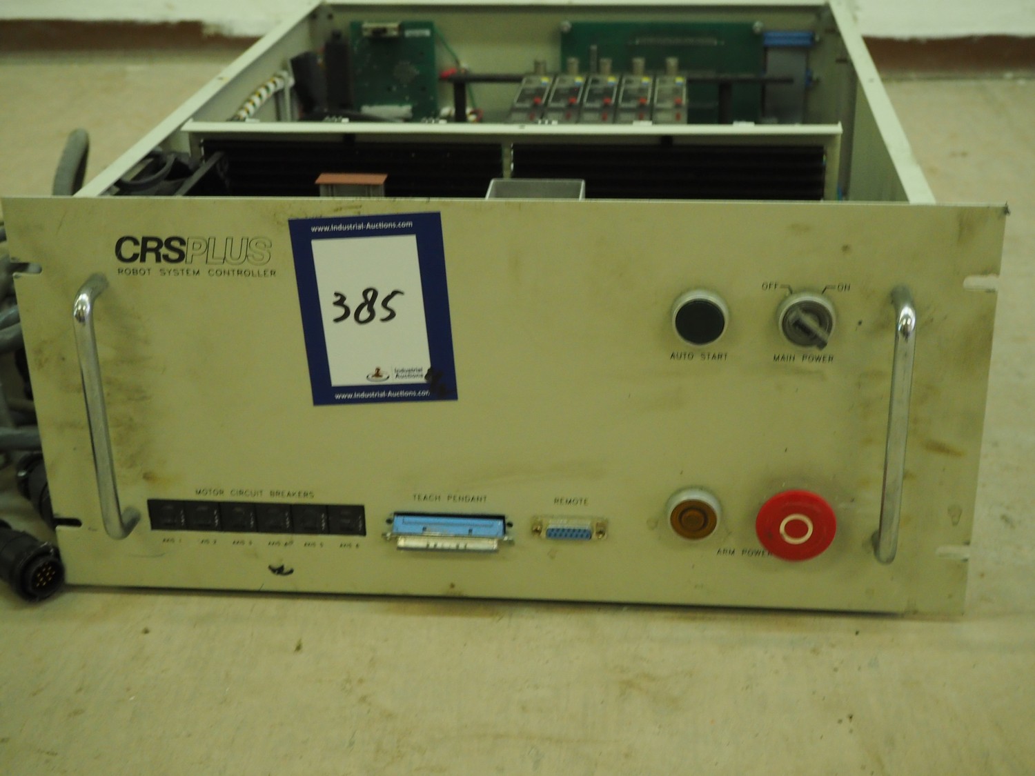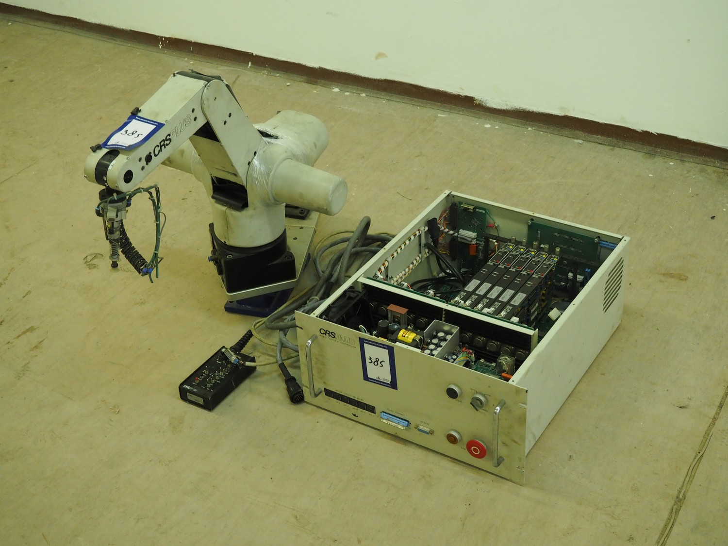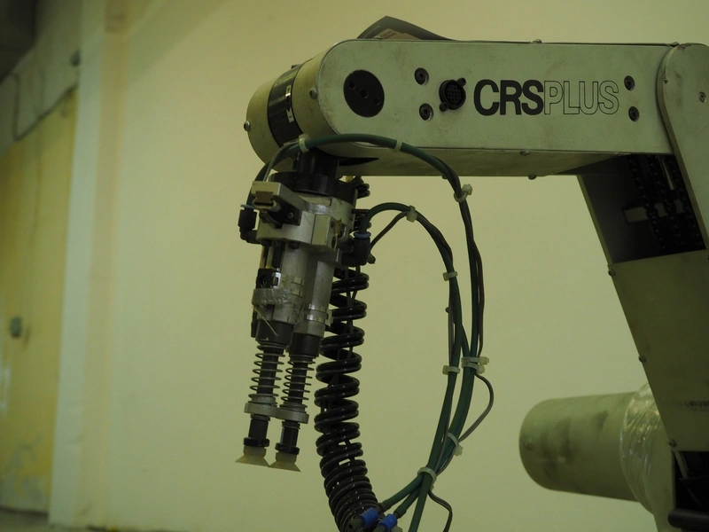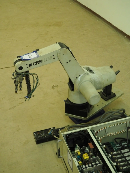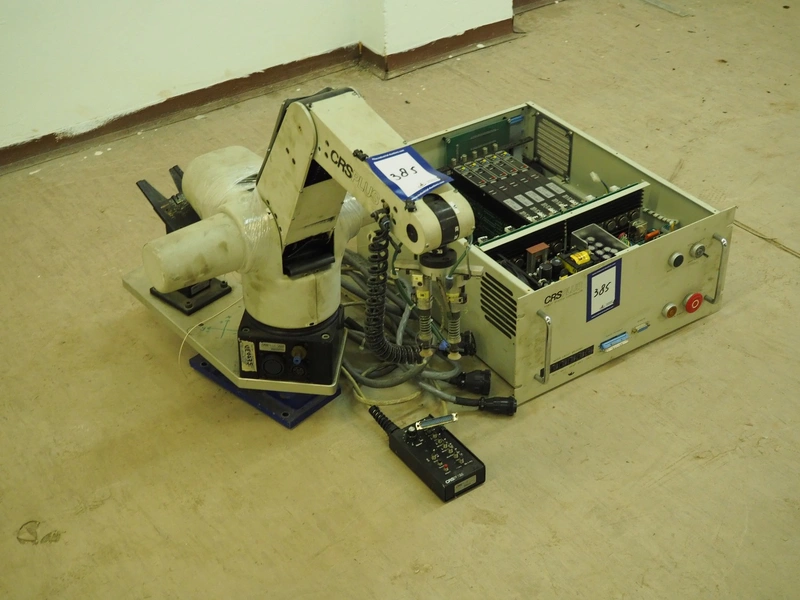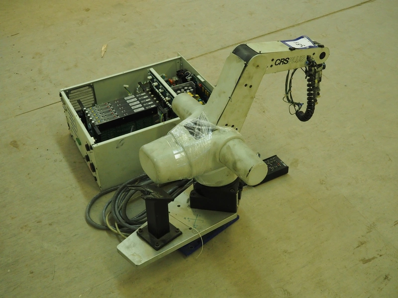 CRS Plus pick and place robot, 350 V, 60/50 Hz, dimensions arm: 850 mm x 470 mm x 660 mm, dimensions cabinet: 570 mm x 500 mm x 220 mm.