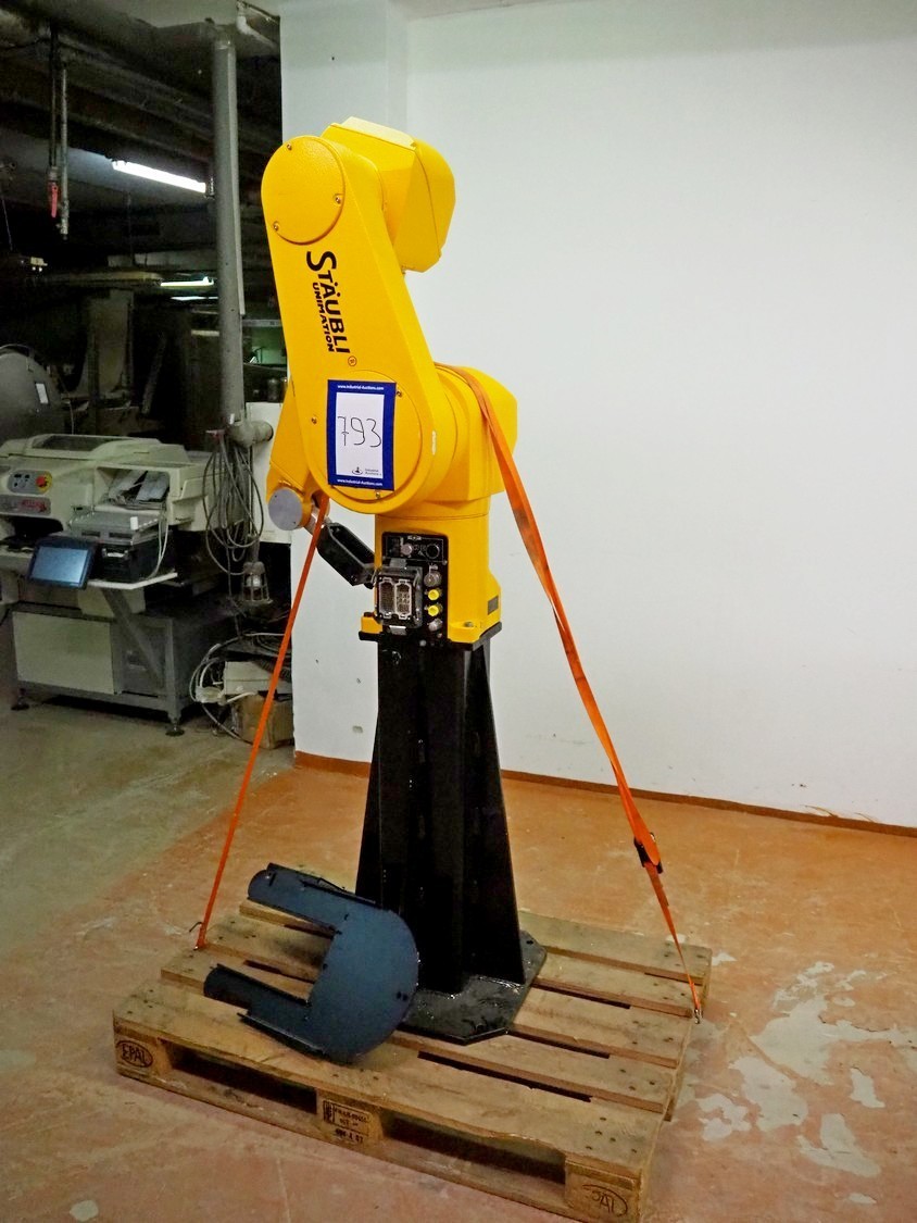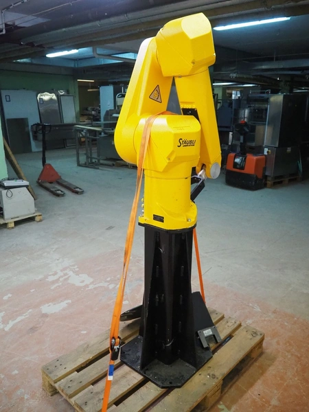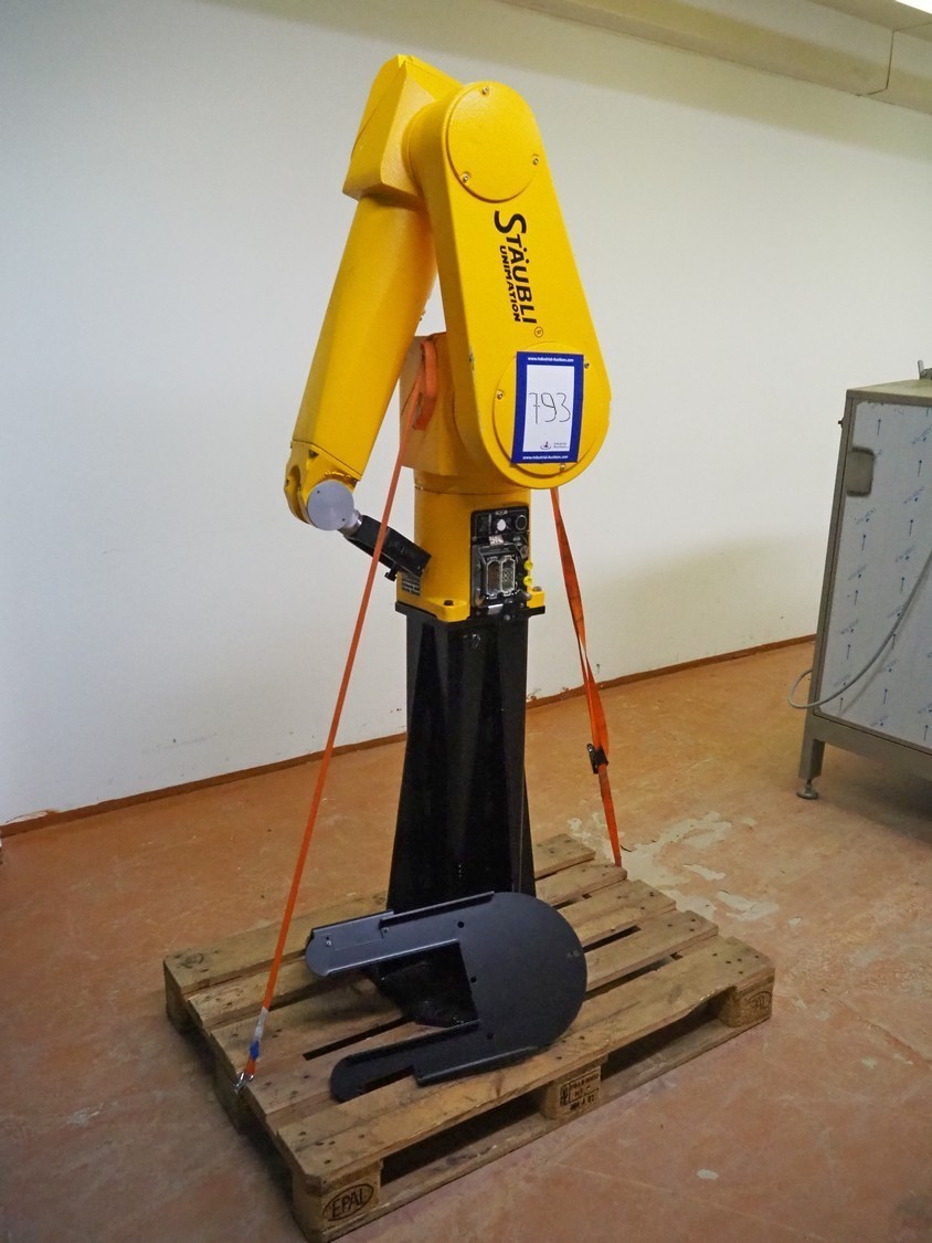 Staubli robot, type: RX90B L, machine number: F99/5A81A1/A/01, year of construction: 01-2000, capacity: 3.5 kg, weight: 109 kg, dimensions: 1200 mm x 800 mm x 2050 mm.