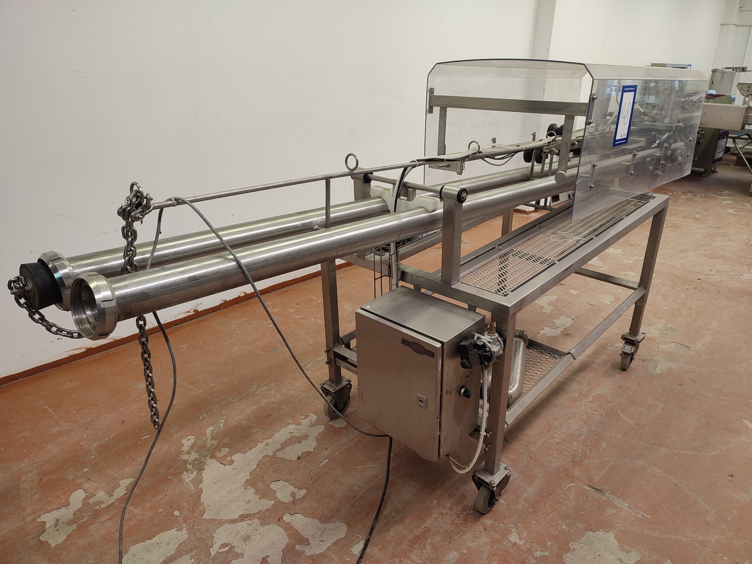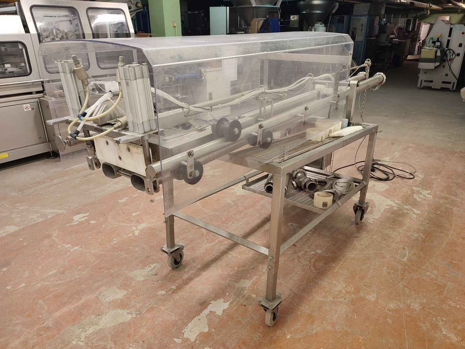 Annala Foodtech mobile portioning machine, dimensions: 2800 mm x 800 mm x 1350 mm.