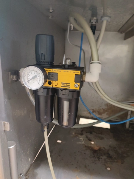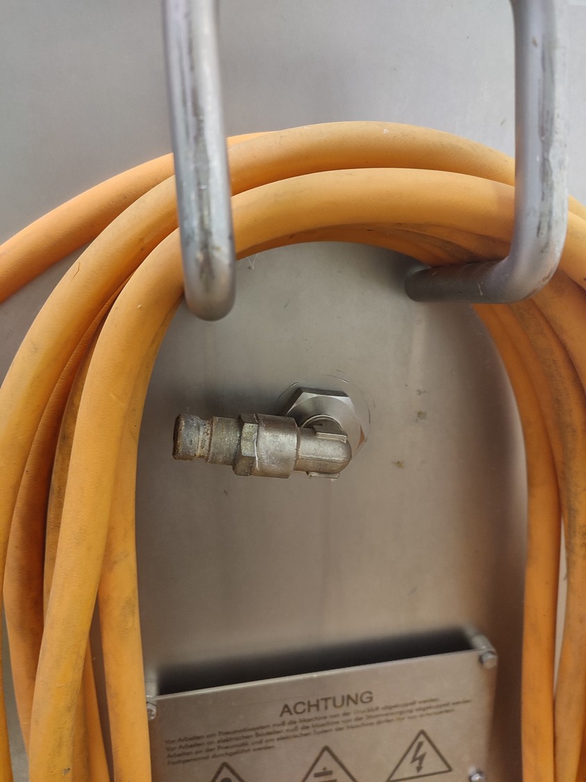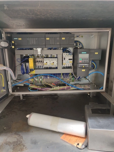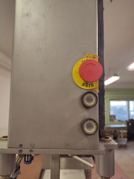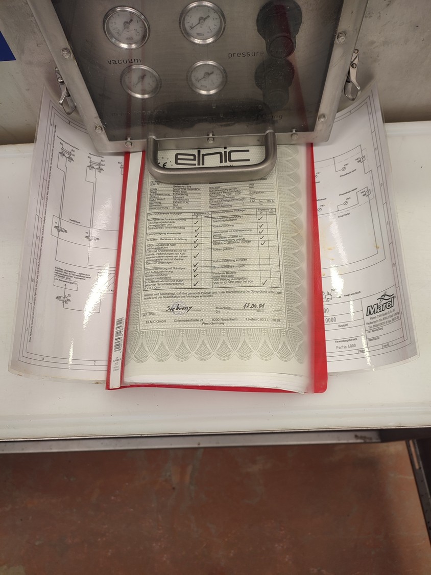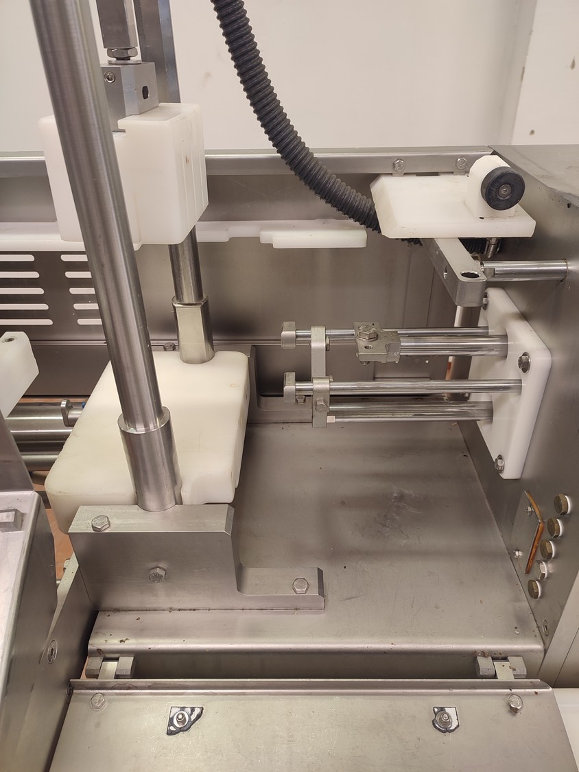 TVM mobile portioning machine, type: TVM Portio 4000, serial number: 03-01.26983 231, year of construction: 2001, 400 V, 3 Ph, 50 Hz, 2.5 A, 4-8 bar, 380 kg, dimensions: 1660 mm x 1070 mm x 2510 mm. Incomplete, missing mould and outfeed belt.