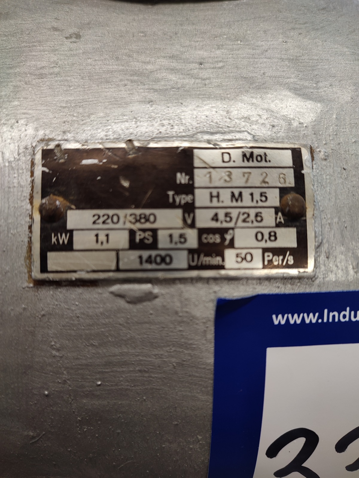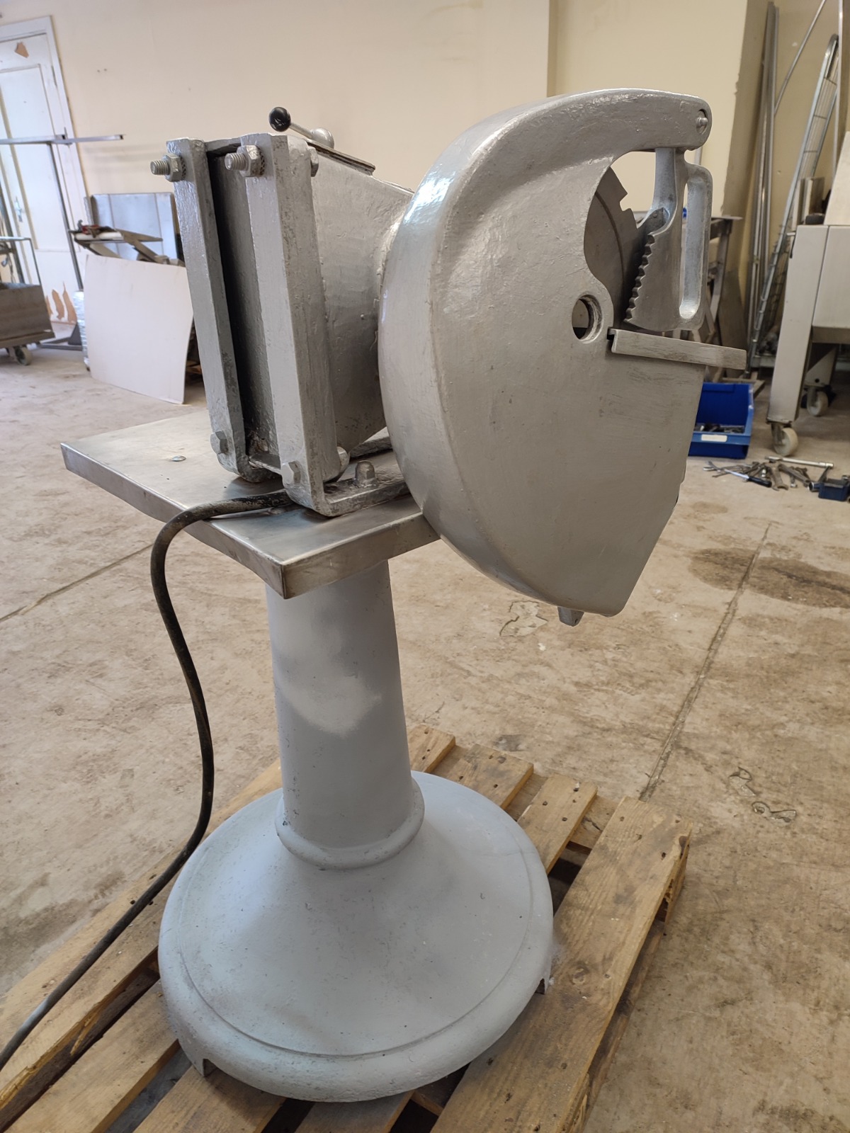 Kramer Grebe bone saw, type: H.M 1,5, machine number: 13726, 220/380 V, 4.5/2.6 A, 1.1 kW, diameter saw blade: 300 mm, total dimensions: 660 mm x 700 mm x 1300 mm.