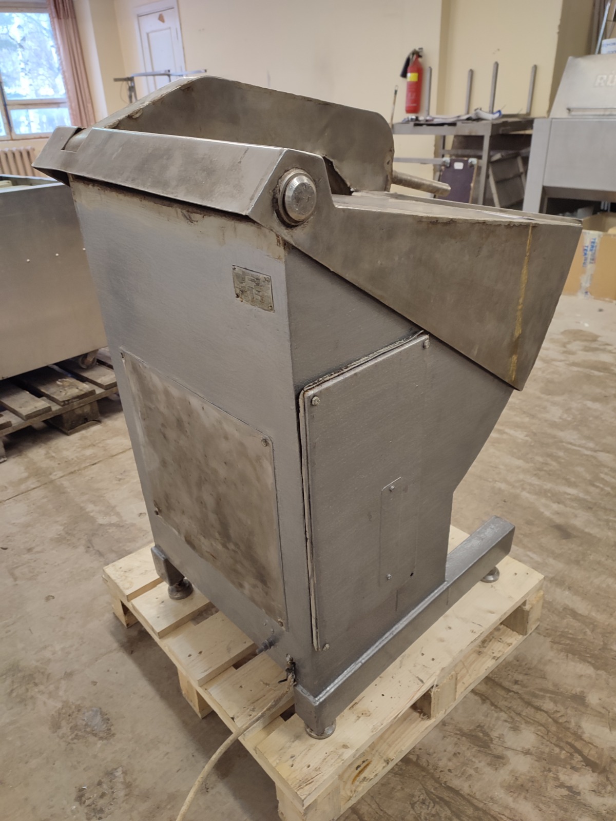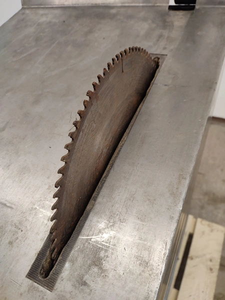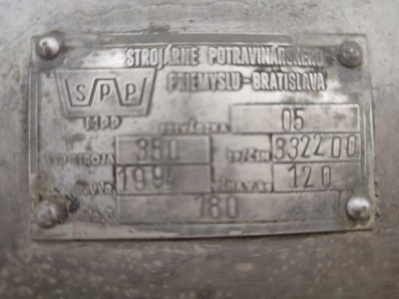 SPP bone saw, type: 350, machine number: 332200, year of construction: 1994, 380 V, 1.5 kW, weight: 120 kg, diameter saw blade: 350 mm, total dimensions: 940 mm x 520 mm x 1050 mm.