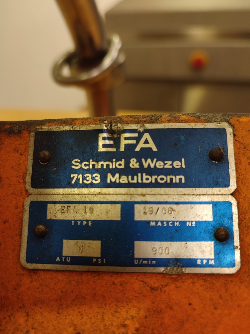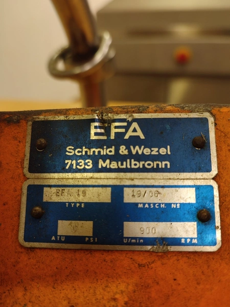 EFA circular saw, type: EFA 19, machine number: 19/06, ø saw blade: 265 mm, 6 psi, 900 rpm, dimensions: 550 mm x 270 mm x 340 mm.