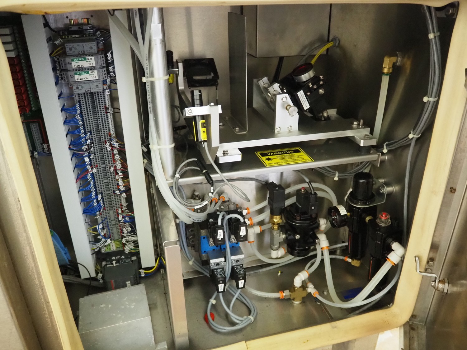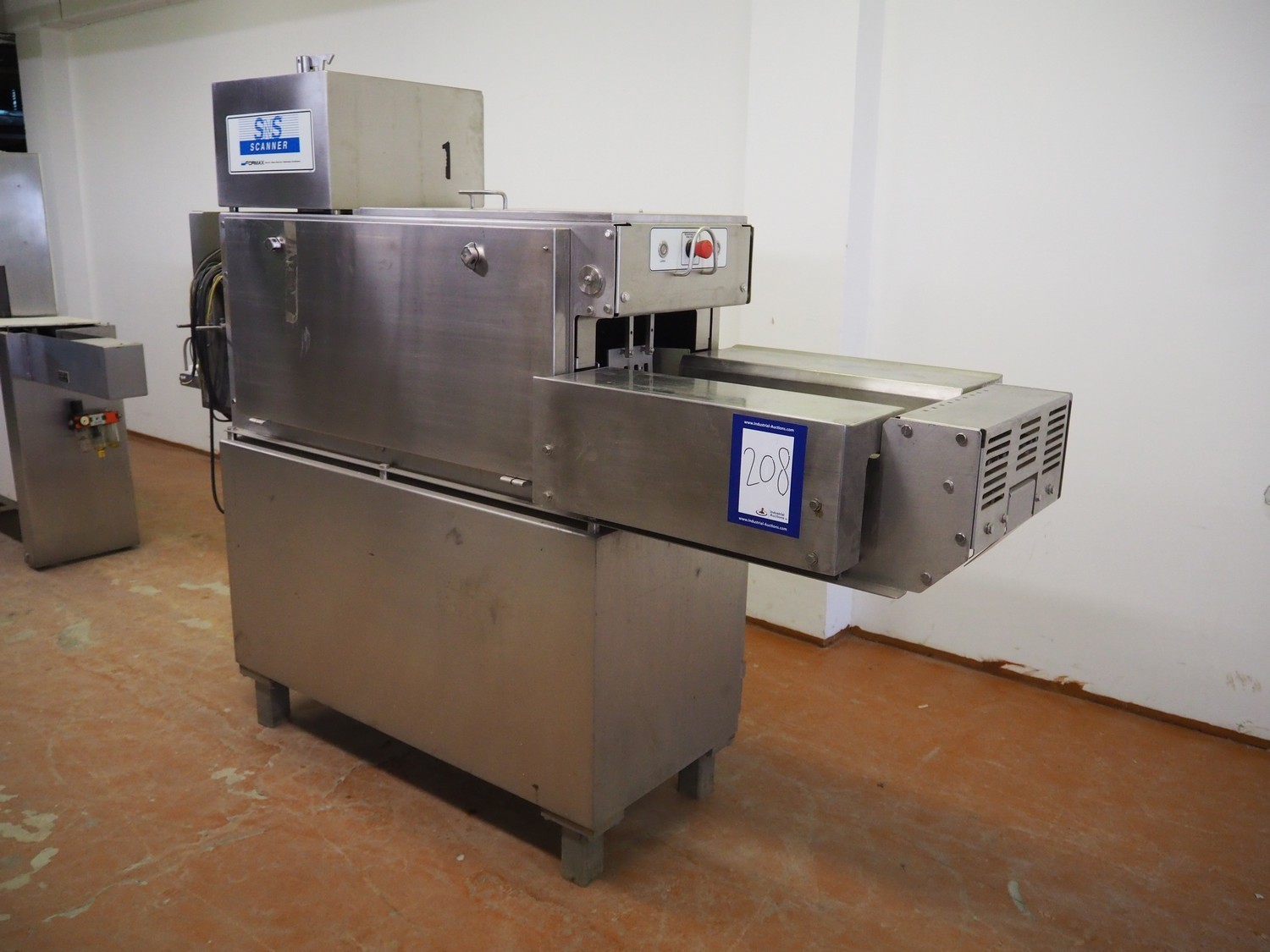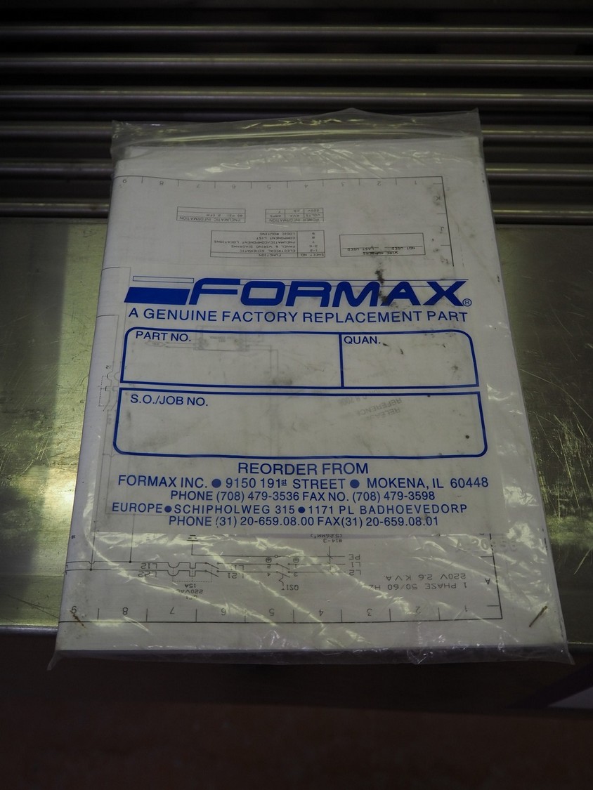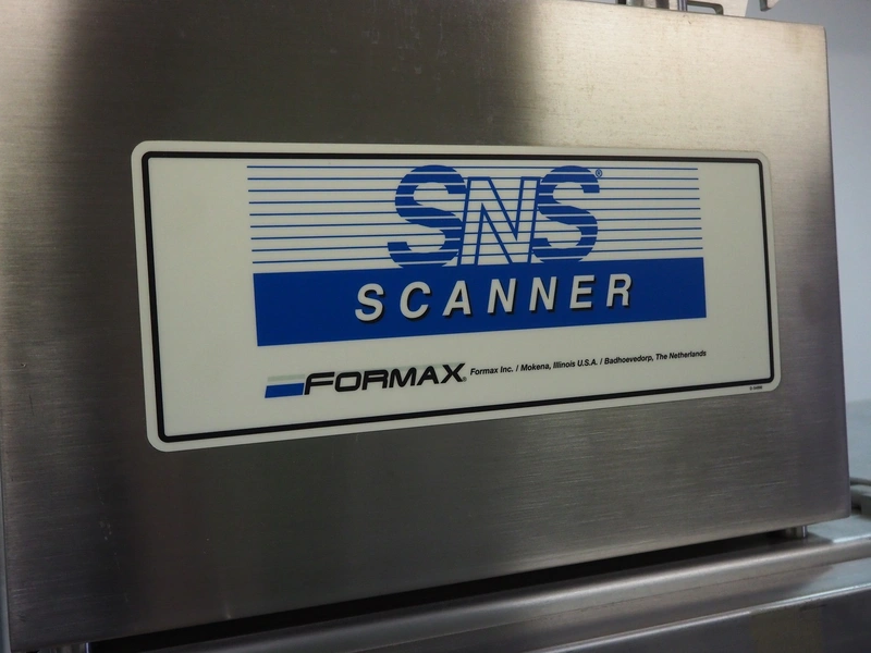 Formax SNS scanner, model: SNS Scanner, serial number: KIKT60, 230 V, 1 Ph, 50/60 Hz, 7 A, clearance: 240 mm x 190 mm, dimensions: 2600 mm x 850 mm x 1900 mm.
