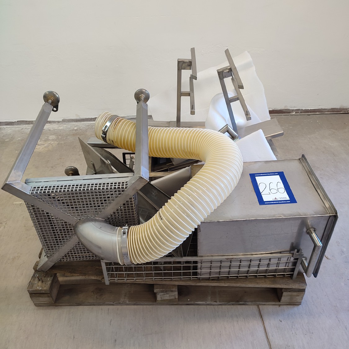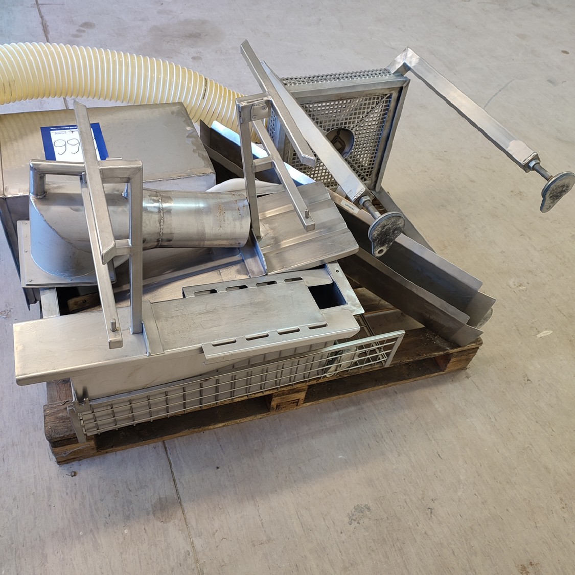 Pallet with parts from Cryovac hot water dip tank, dimensions: 1200 mm x 800 mm x 860 mm.