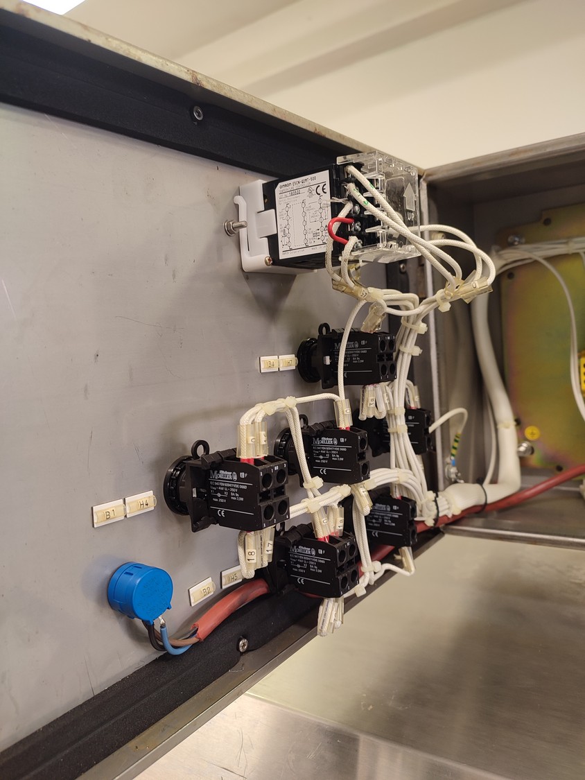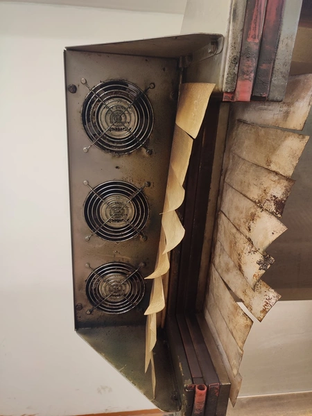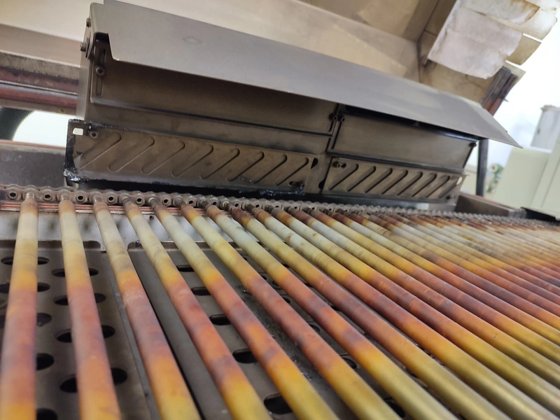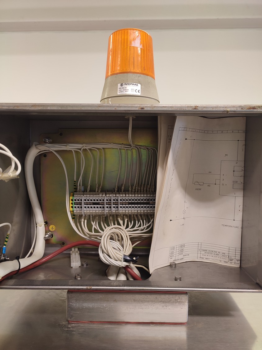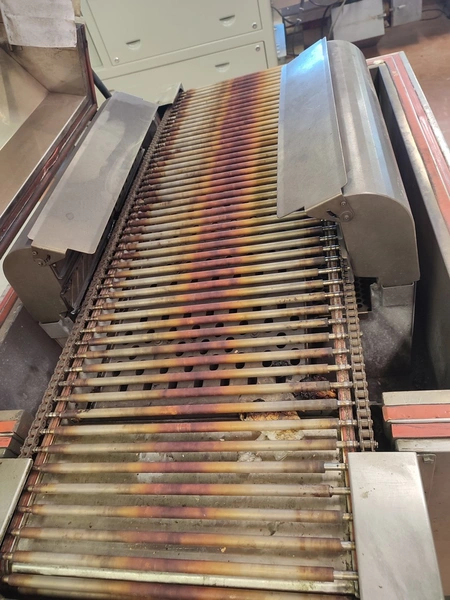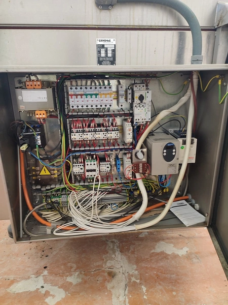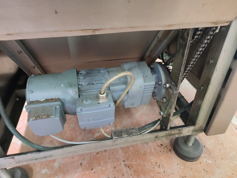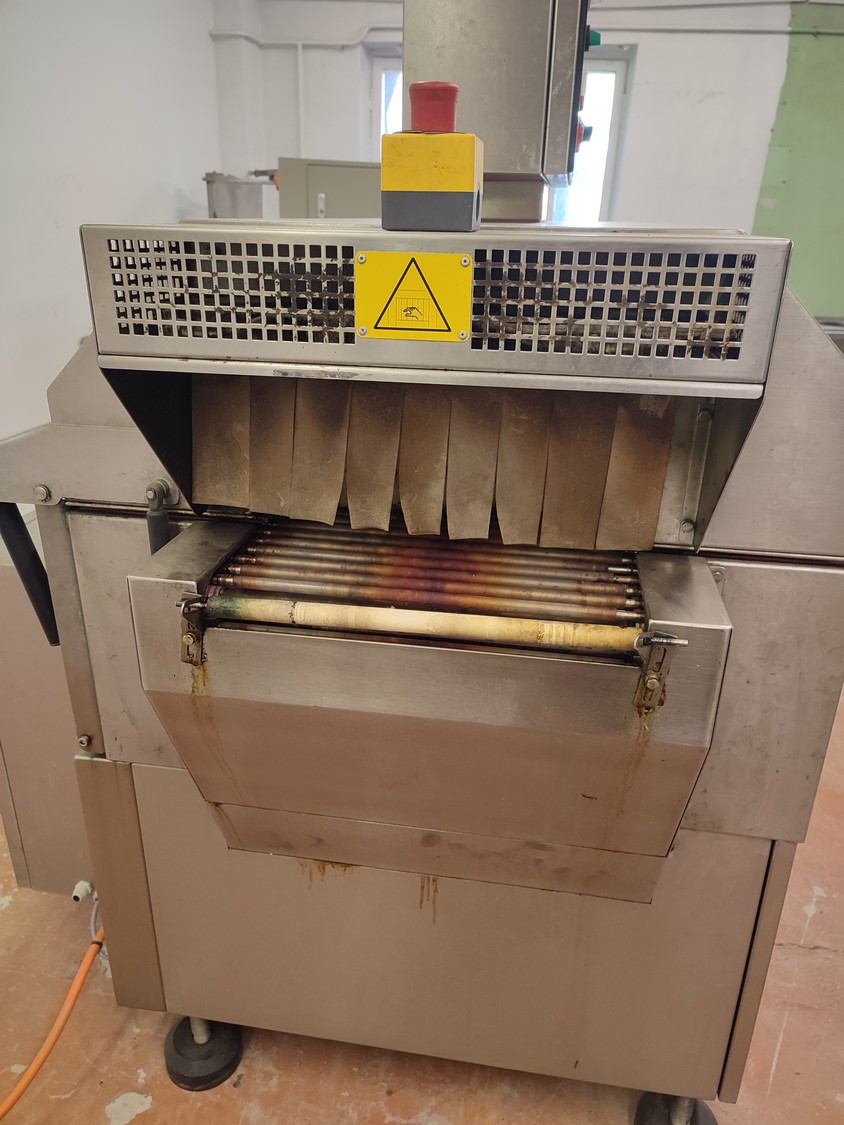 Cryovac shrink tunnel, model number: ST 50 LH, serial number: A52400417, year of construction: 1997, 380 V, 50 Hz, 16 A, 10 kW, clearance: 400 mm x 180 mm, plastic rollers, rollers width: 400 mm, total dimensions: 1400 mm x 1300 mm x 1850 mm.