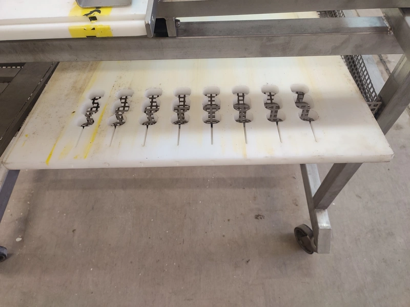 CFS Bakel B.V. automatic skewer machine, type: STI600, machine number: 278, year of construction: 2010, weight: 85 kg, dimensions: 1200 mm x 620 mm x 1100 mm.