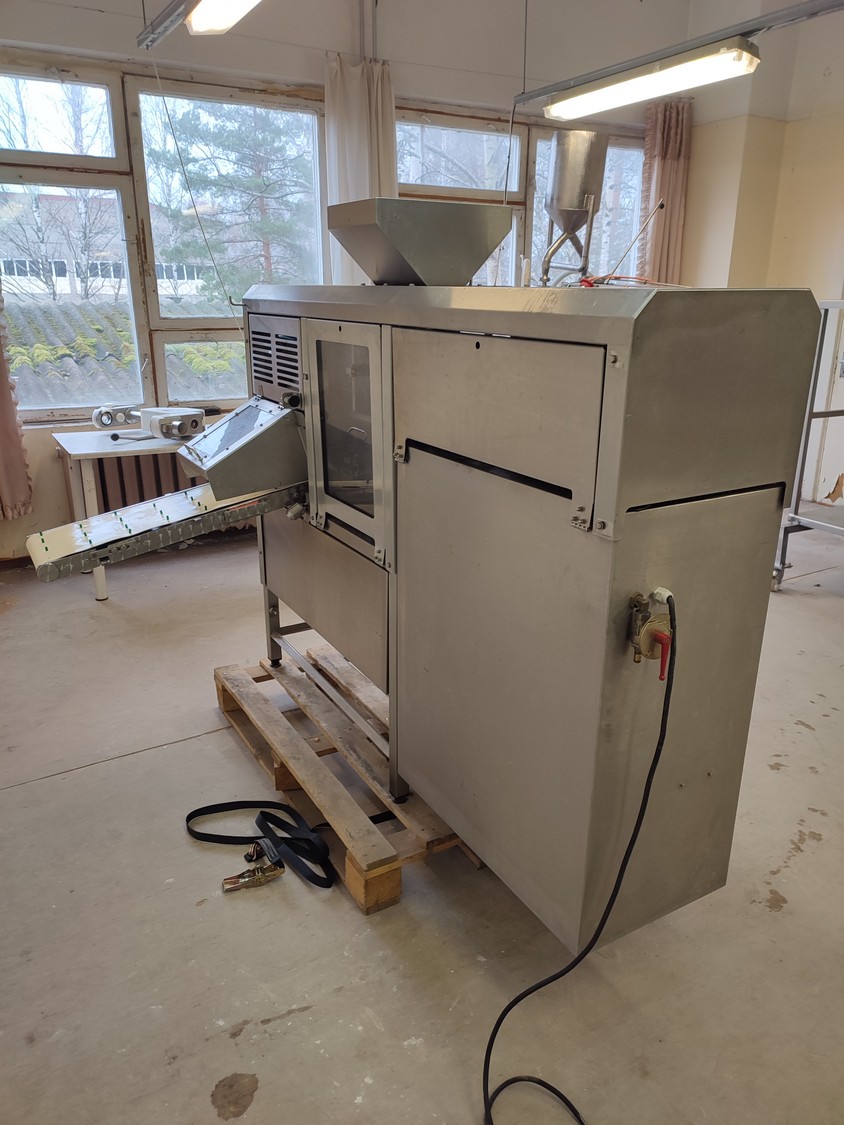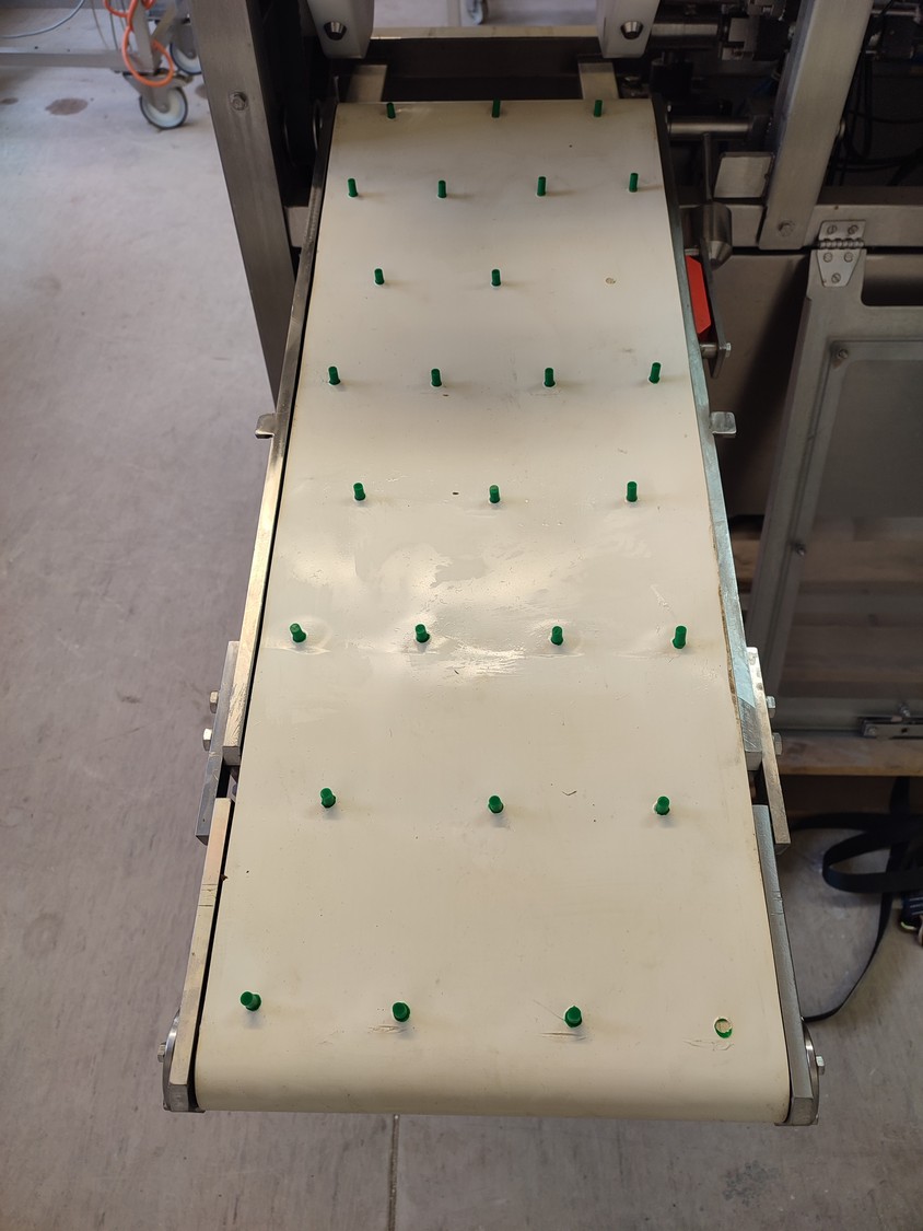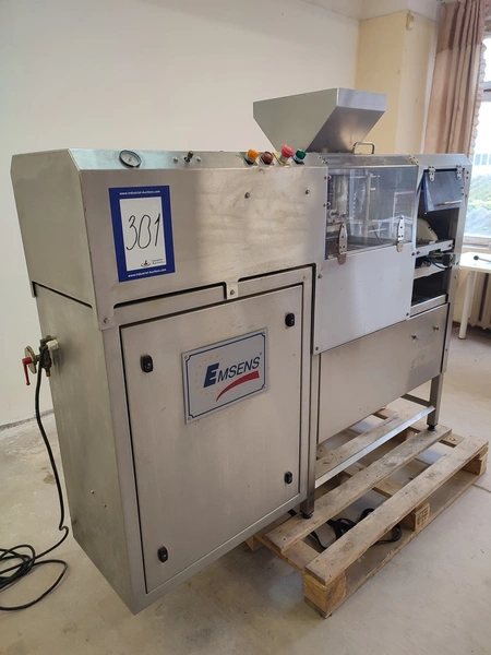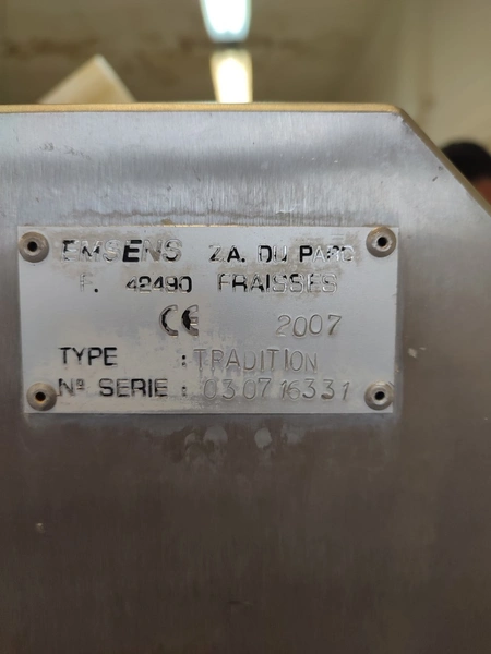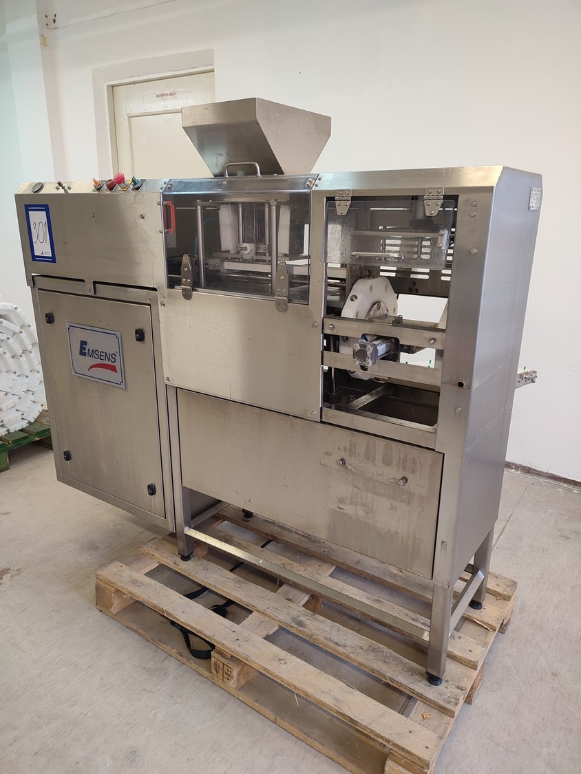 Emsens automatic skewer machine, type: TRADITION, serial number: 030716331, year of construction: 2007, skewer machine dimensions: 1777 mm x 1200 mm x 1460 mm, conveyors dimensions: 1000 mm x 1200 mm x 900 mm.
