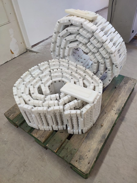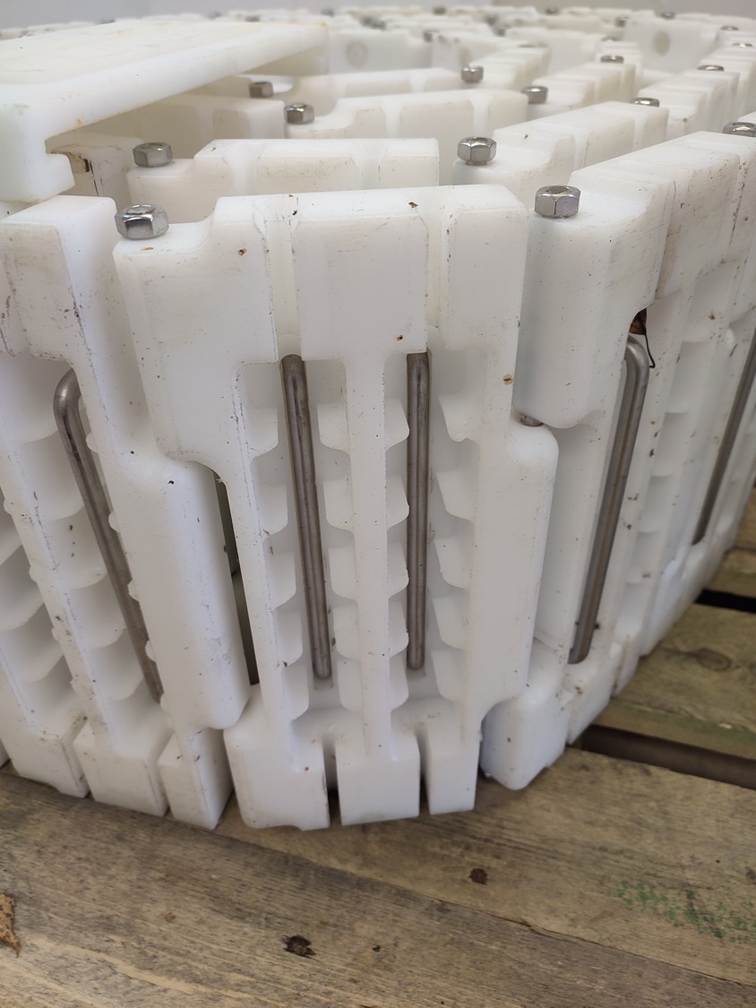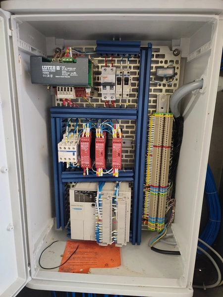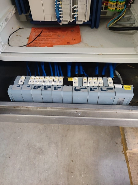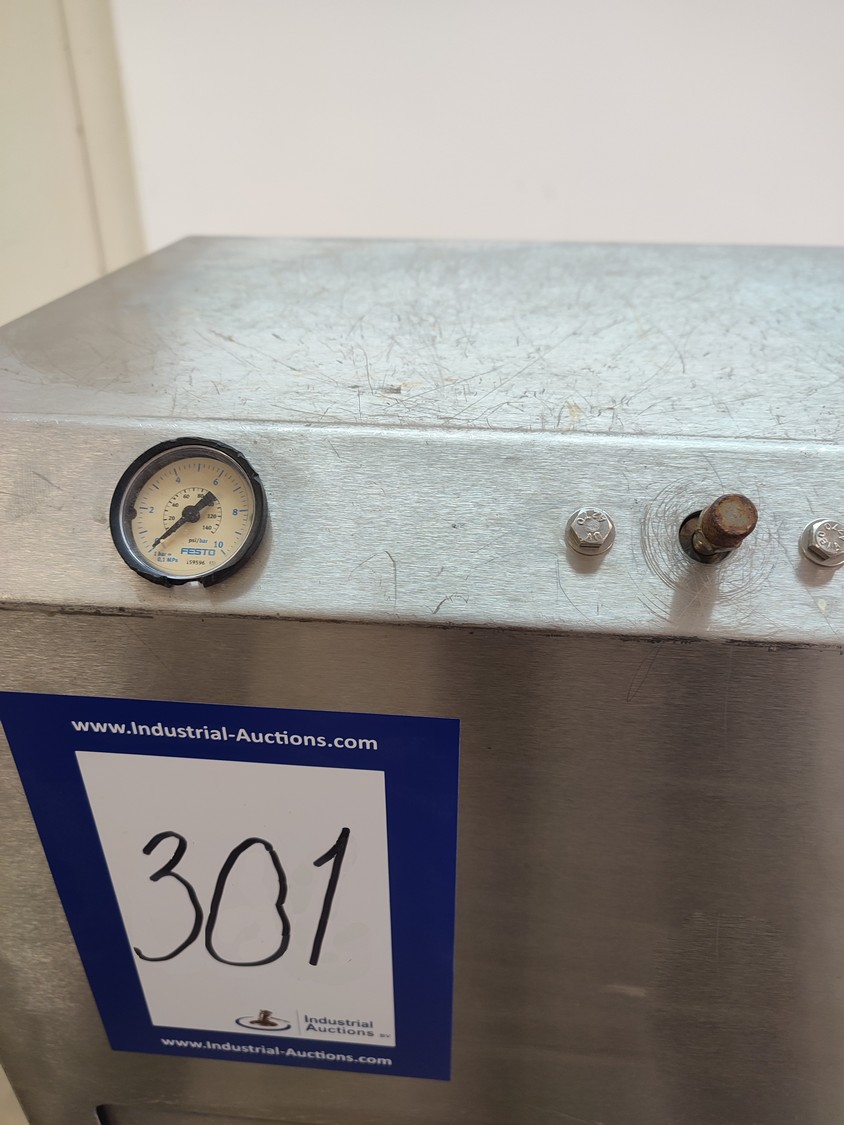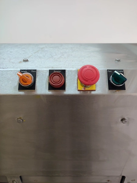 Emsens automatic skewer machine, type: TRADITION, serial number: 030716331, year of construction: 2007, skewer machine dimensions: 1777 mm x 1200 mm x 1460 mm, conveyors dimensions: 1000 mm x 1200 mm x 900 mm.
