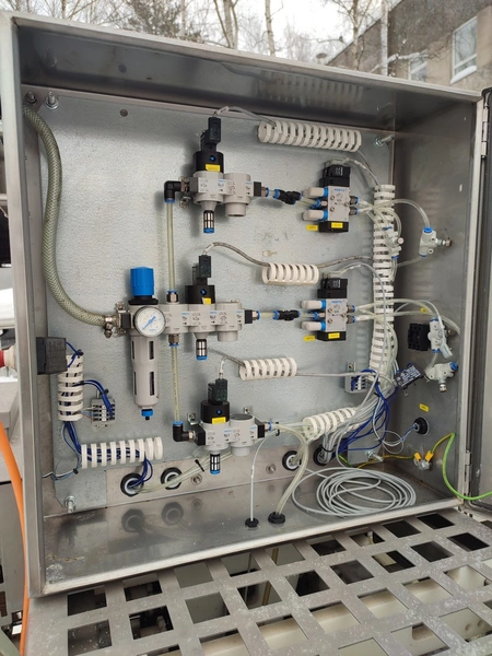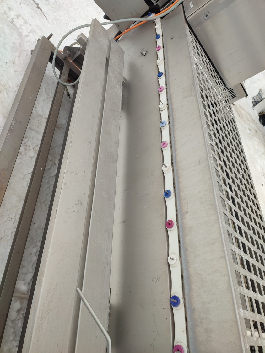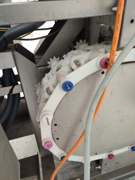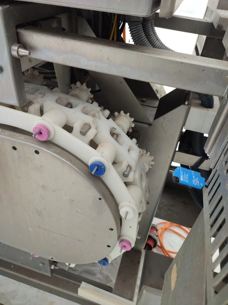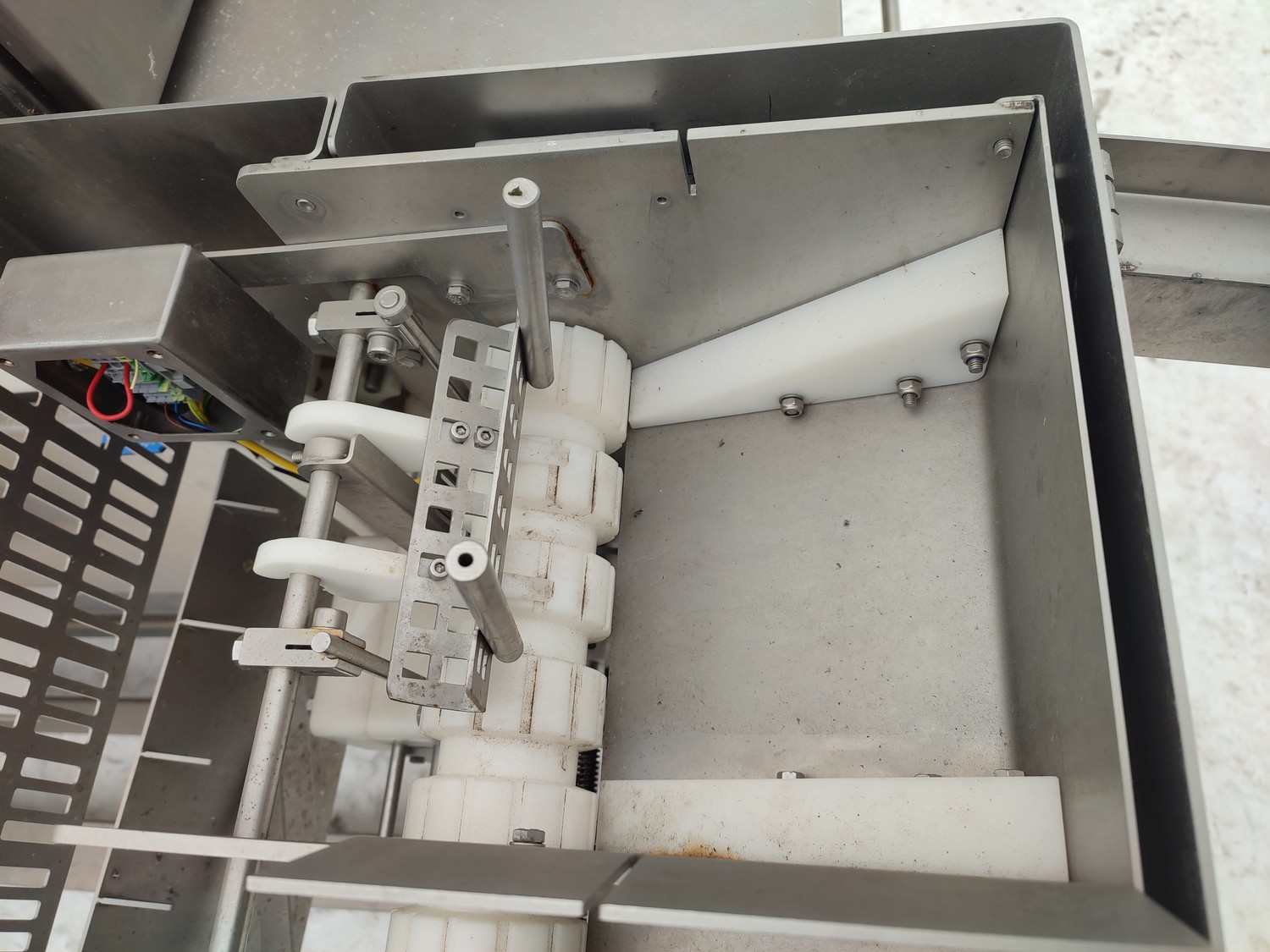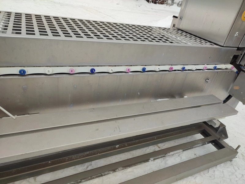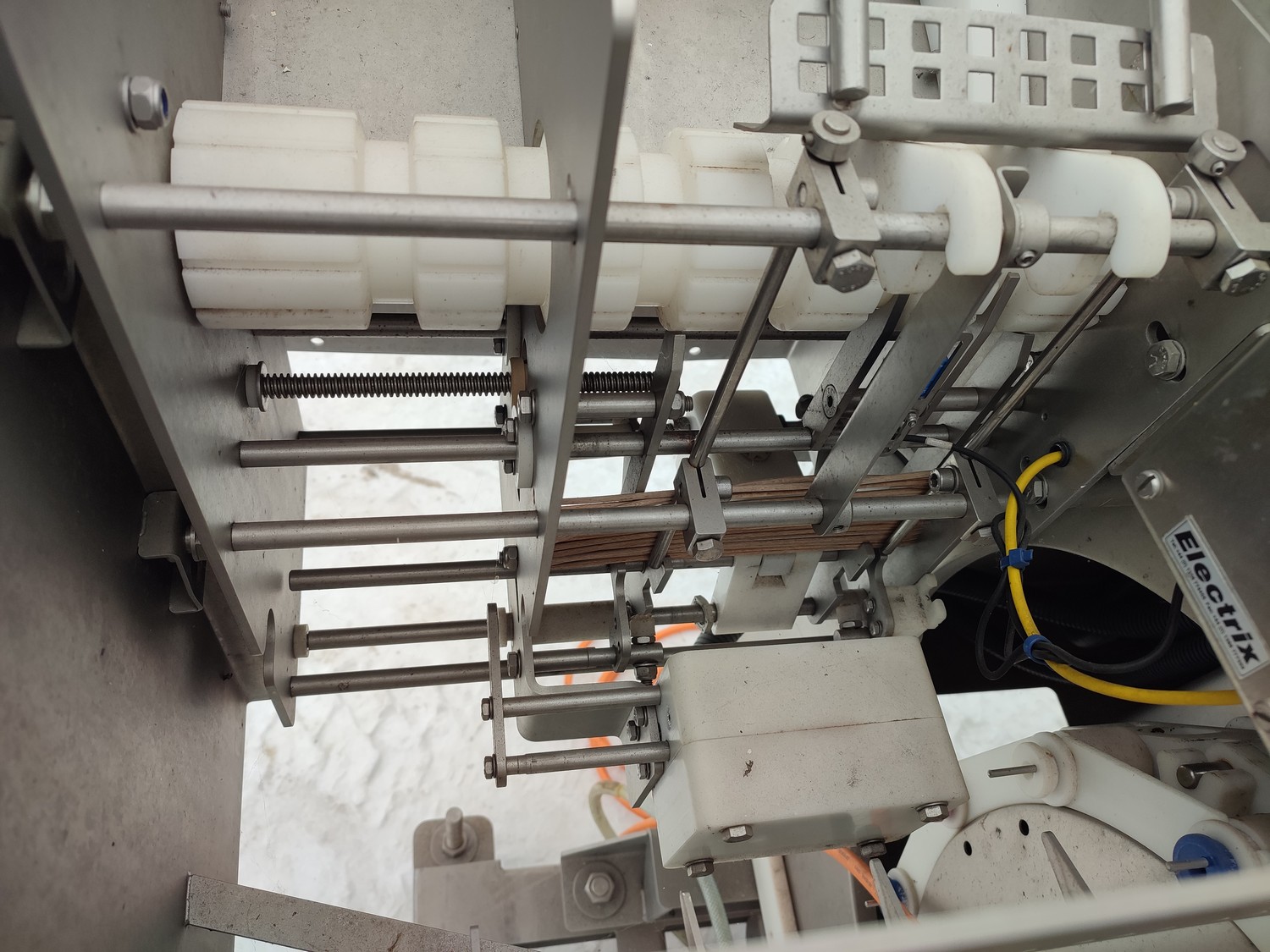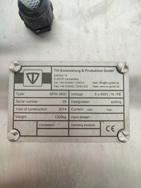 TVI Entwicklung & Produktion GmbH barbecue skewer machine, type: GFW 3600, serial number: 26, year of construction: 2014, 400 V, 3 Ph, weight: 1200 kg, dimensions: 4210 mm x 1930 mm x 1780 mm.