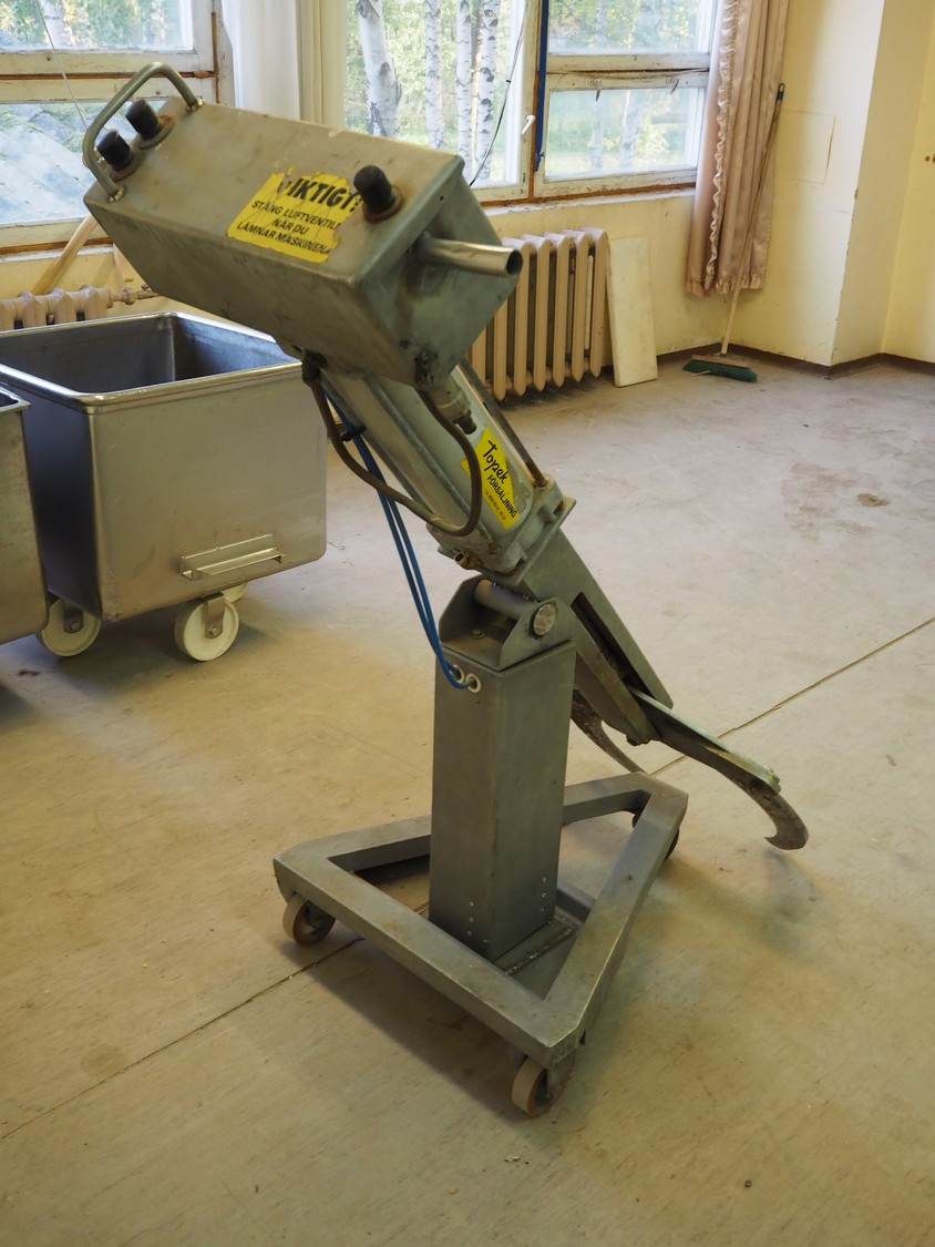 Mobile leg cutter, dimensions: 1200 mm x 600 mm x 1370 mm.