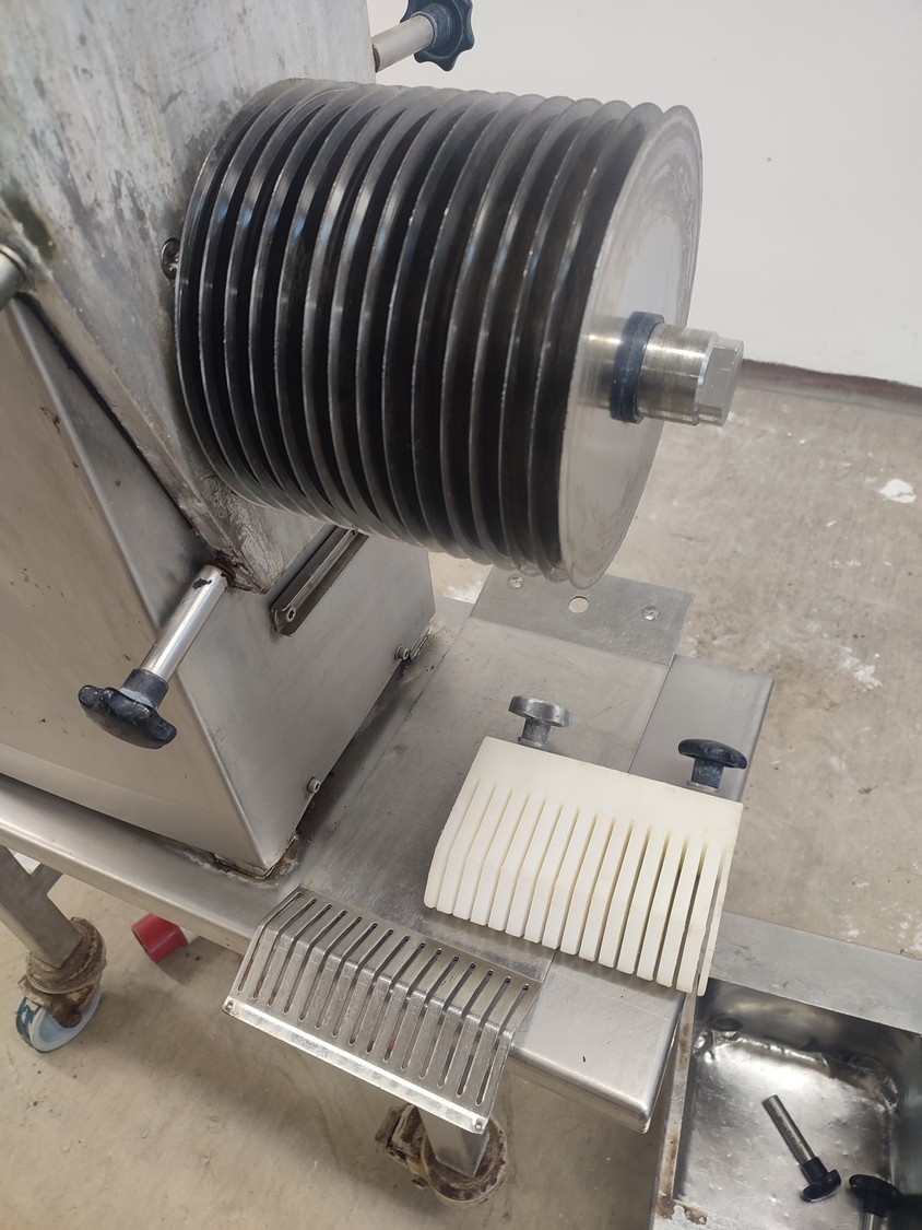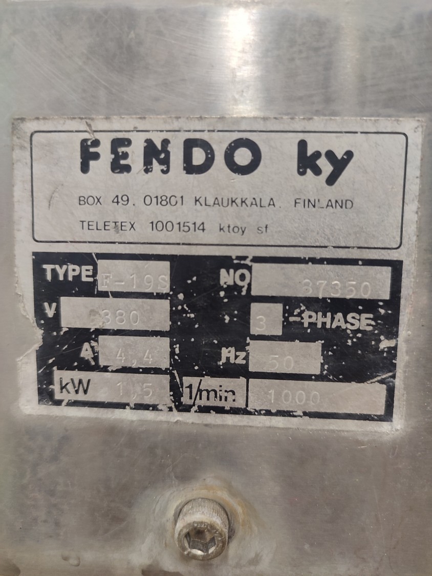 Fendo ky mobile strip cutter, type: F-19 S, number: 37350, 380 V, 3 Ph, 50 Hz, 4.4 A, 1.5 kW, working width: 190 mm, distance between knives: 12 mm, total dimensions: 800 mm x 480 mm x 1200 mm.