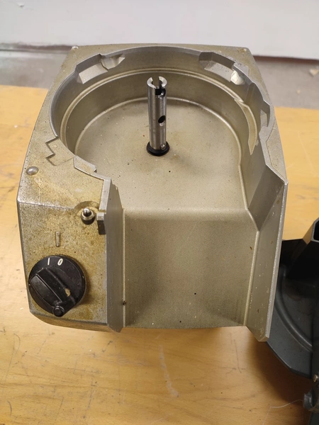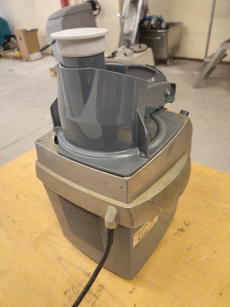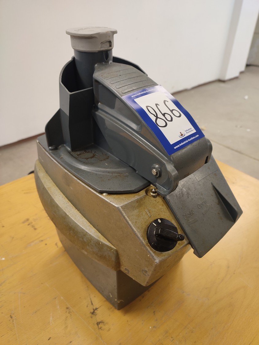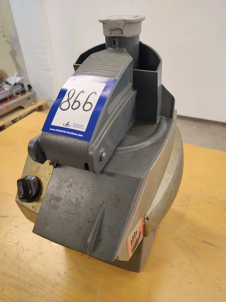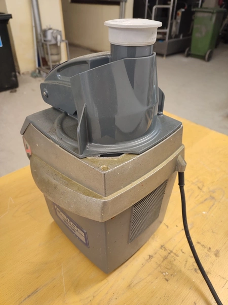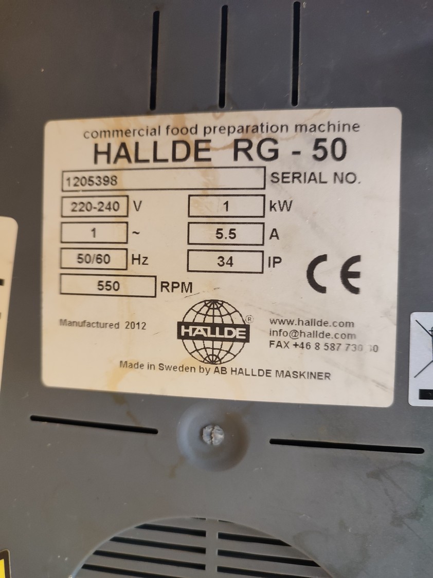 Hallde vegetable slicer, type: RG-50, serial number: 1205398, 220-240 V, 1 Ph, 50/60 Hz, 5.5 A, 1 kW, 550 rpm, dimensions: 260 mm x 340 mm x 465 mm.