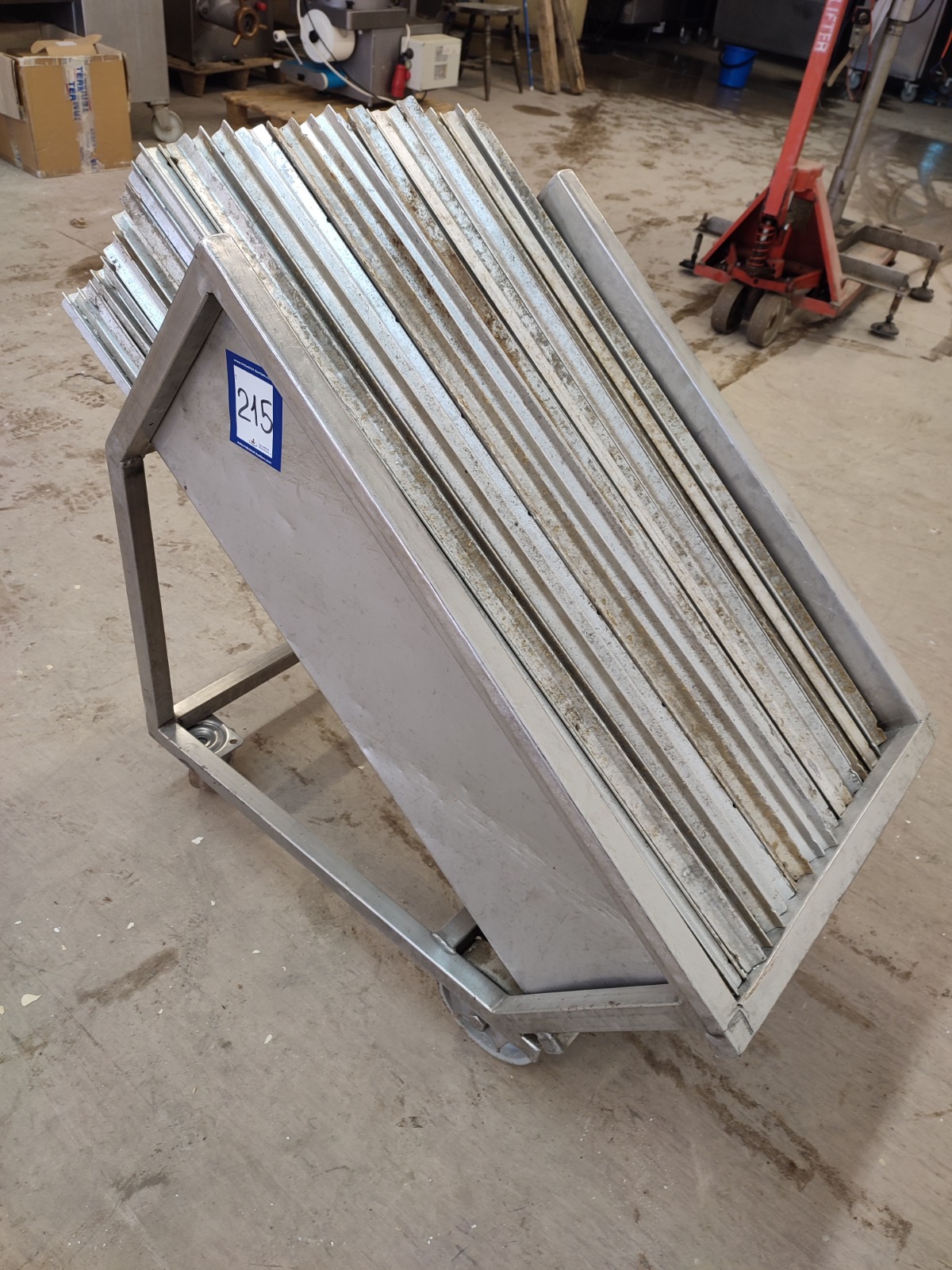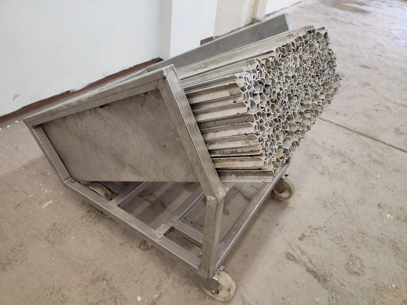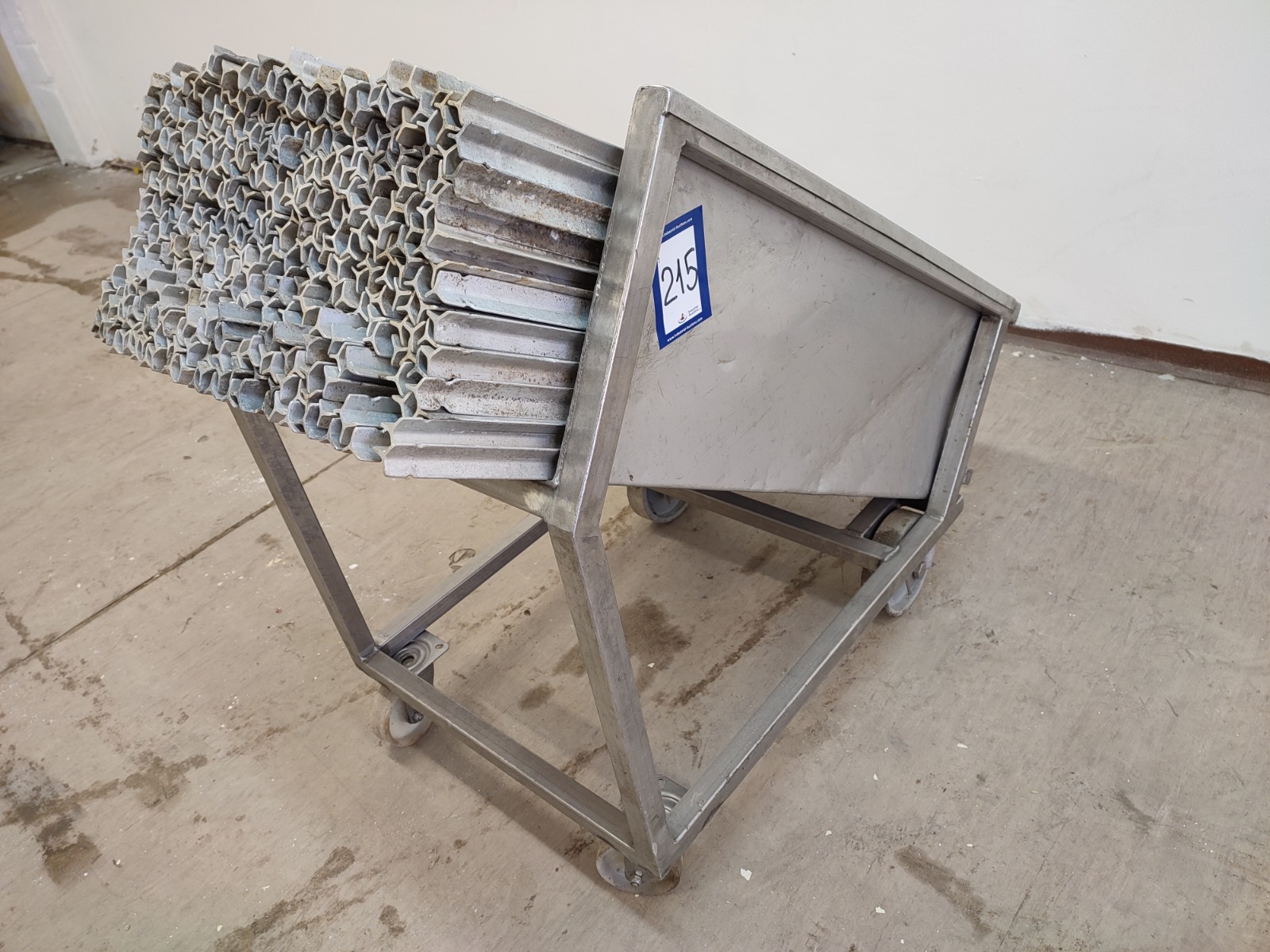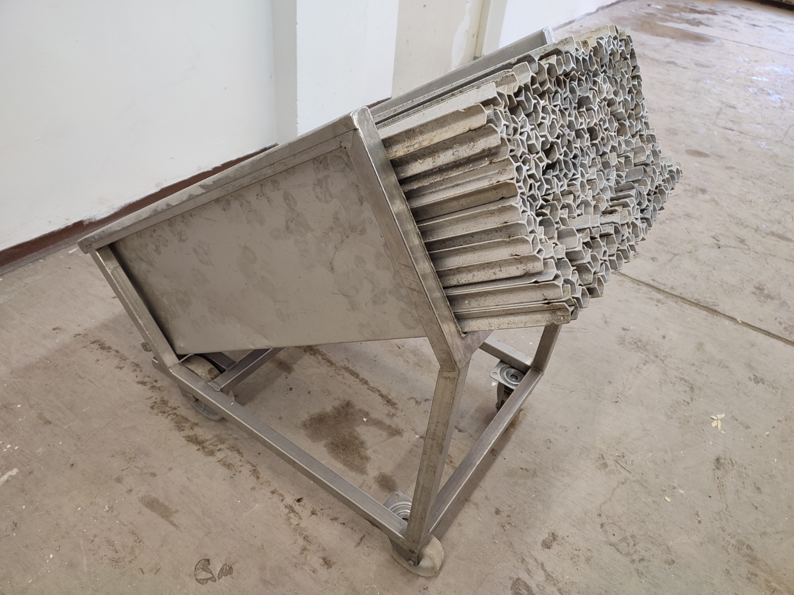 S/s trolley with large amount of Y-shaped smoke sticks, length smoke sticks 940 mm, total dimensions: 1000 mm x 560 mm x 870 mm.