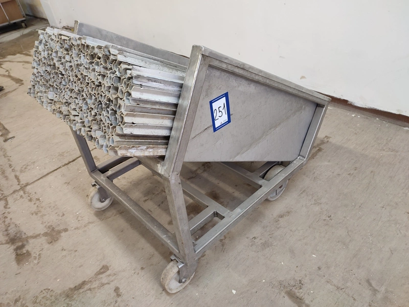 S/s trolley with large amount of Y-shaped smoke sticks, length smoke sticks 940 mm, dimensions trolley: 1000 mm x 710 mm x 820 mm.