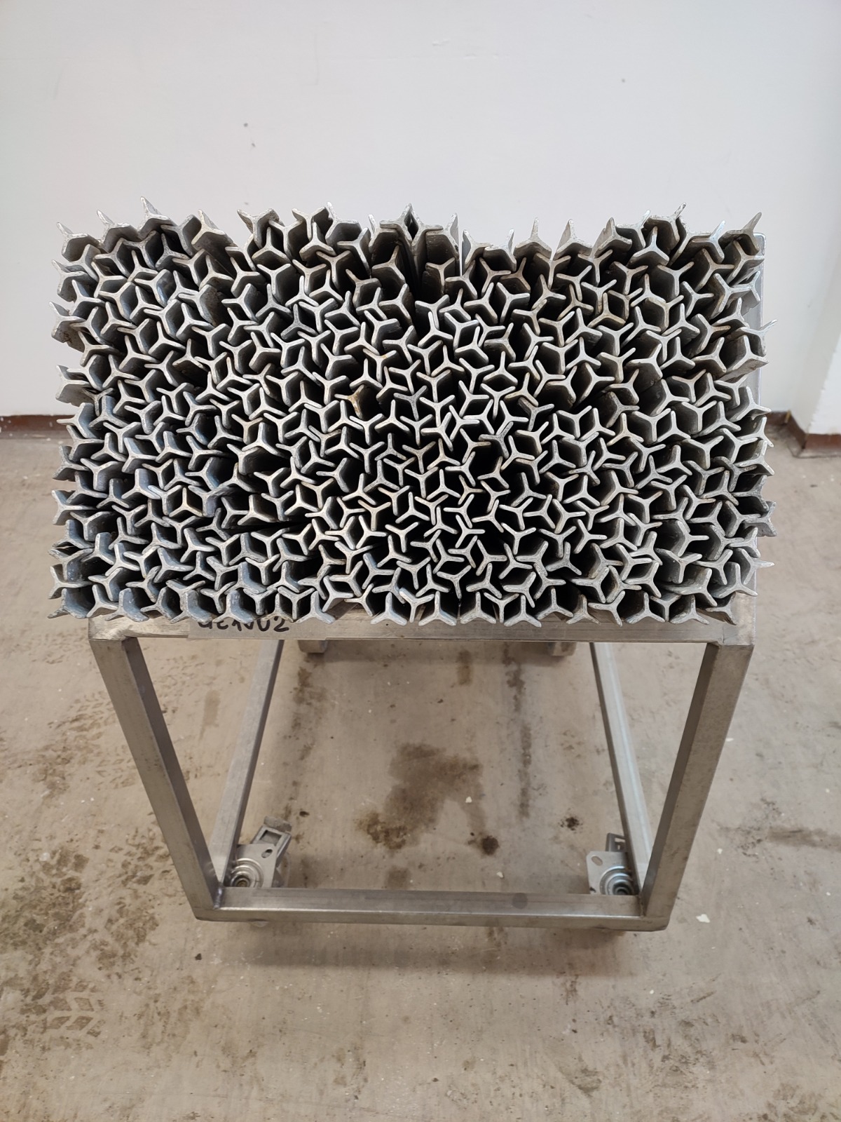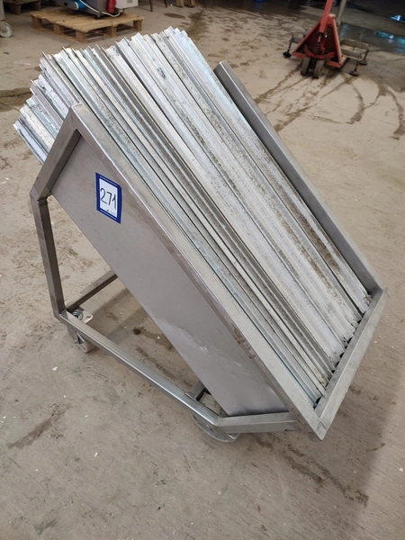 S/s trolley with large amount of Y-shaped smoke sticks, length smoke sticks 940 mm, total dimensions: 1000 mm x 560 mm x 940 mm.
